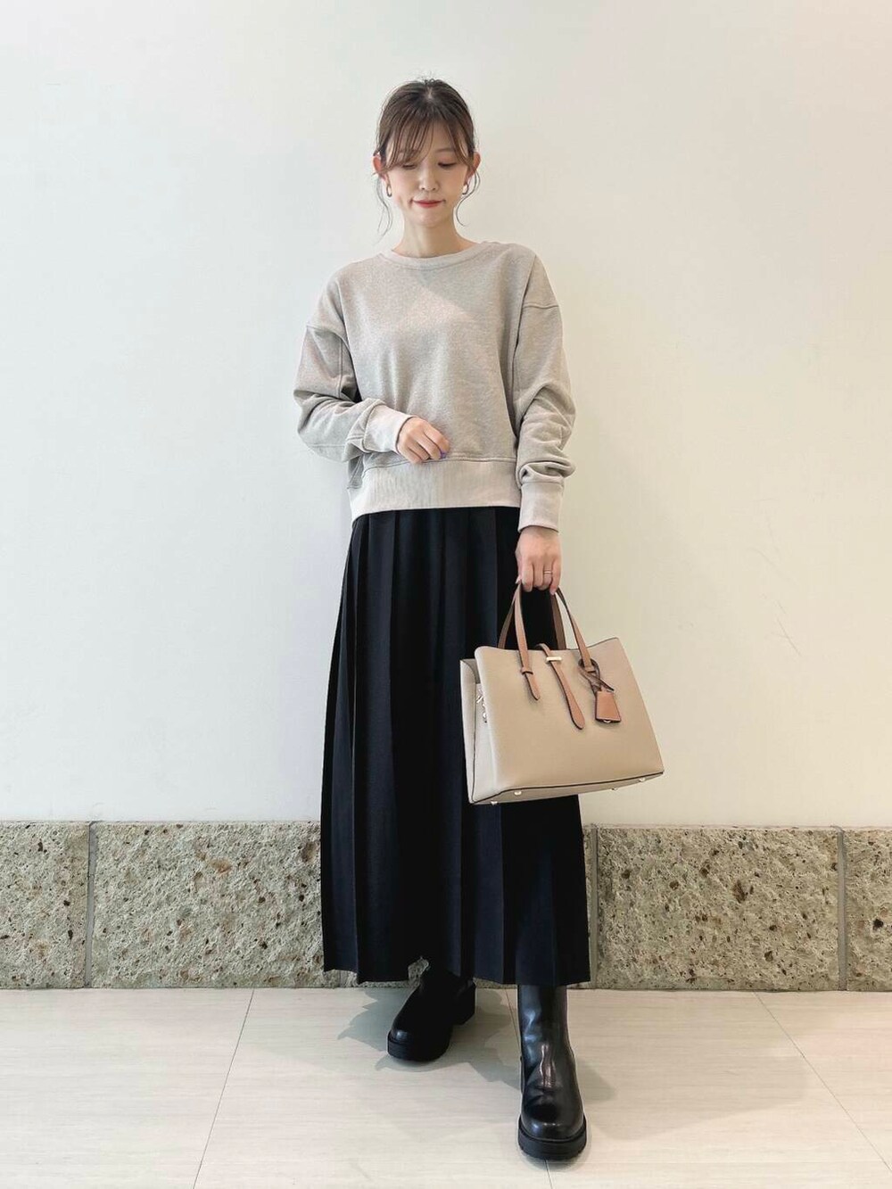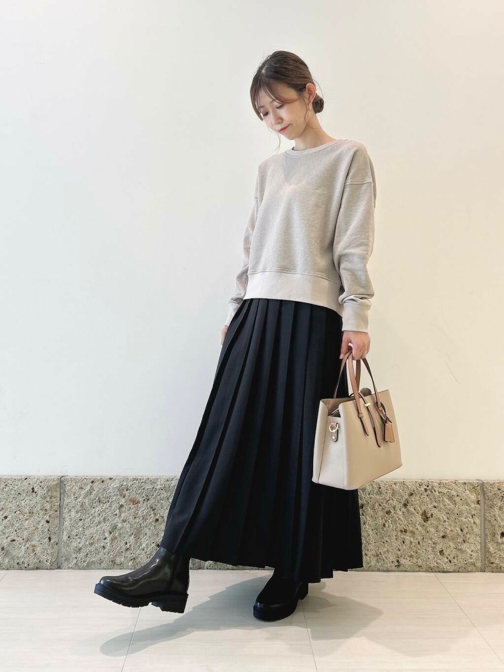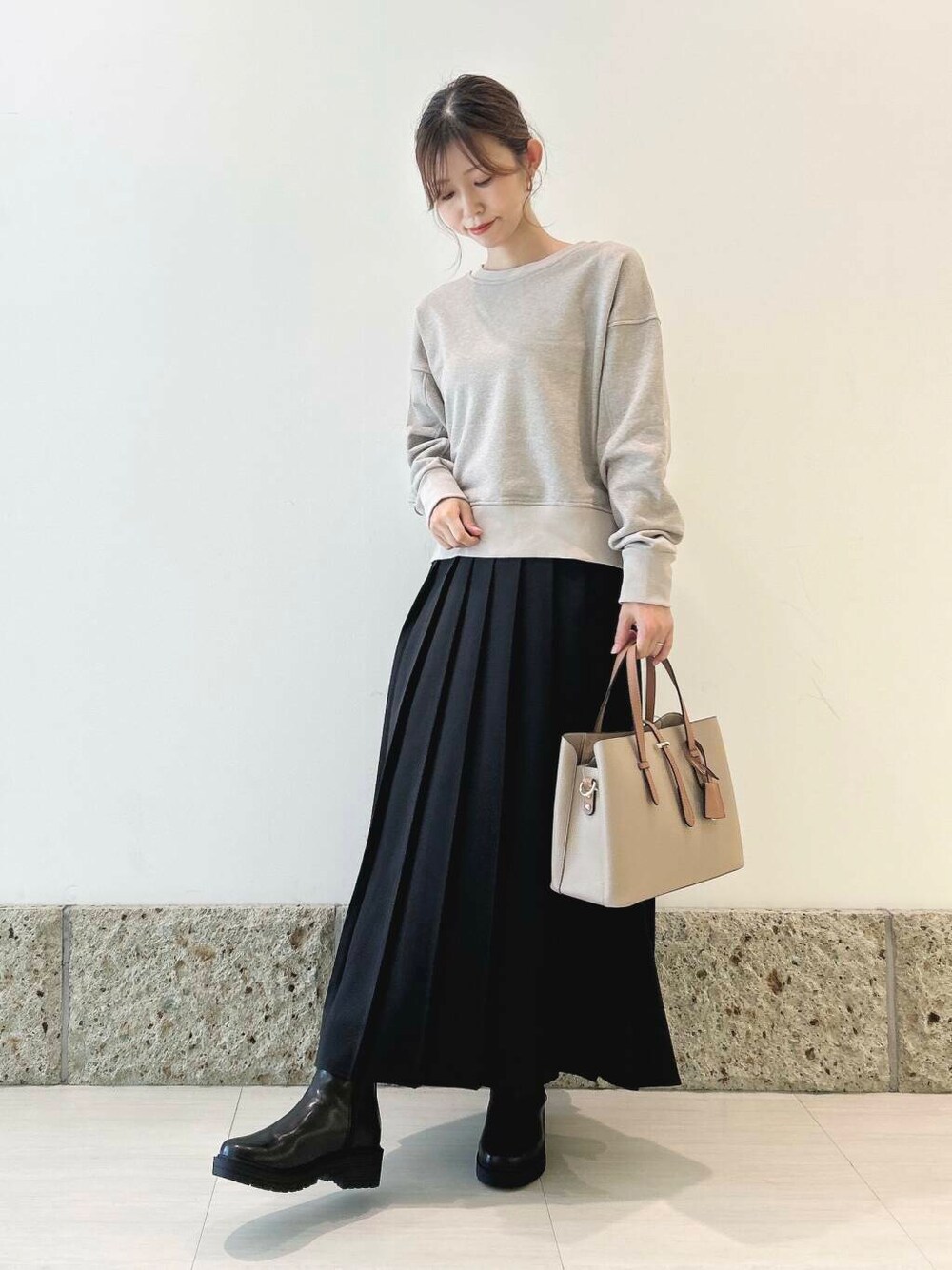 スカートはプリーツの落ち感がキレイなので広がりが出ず