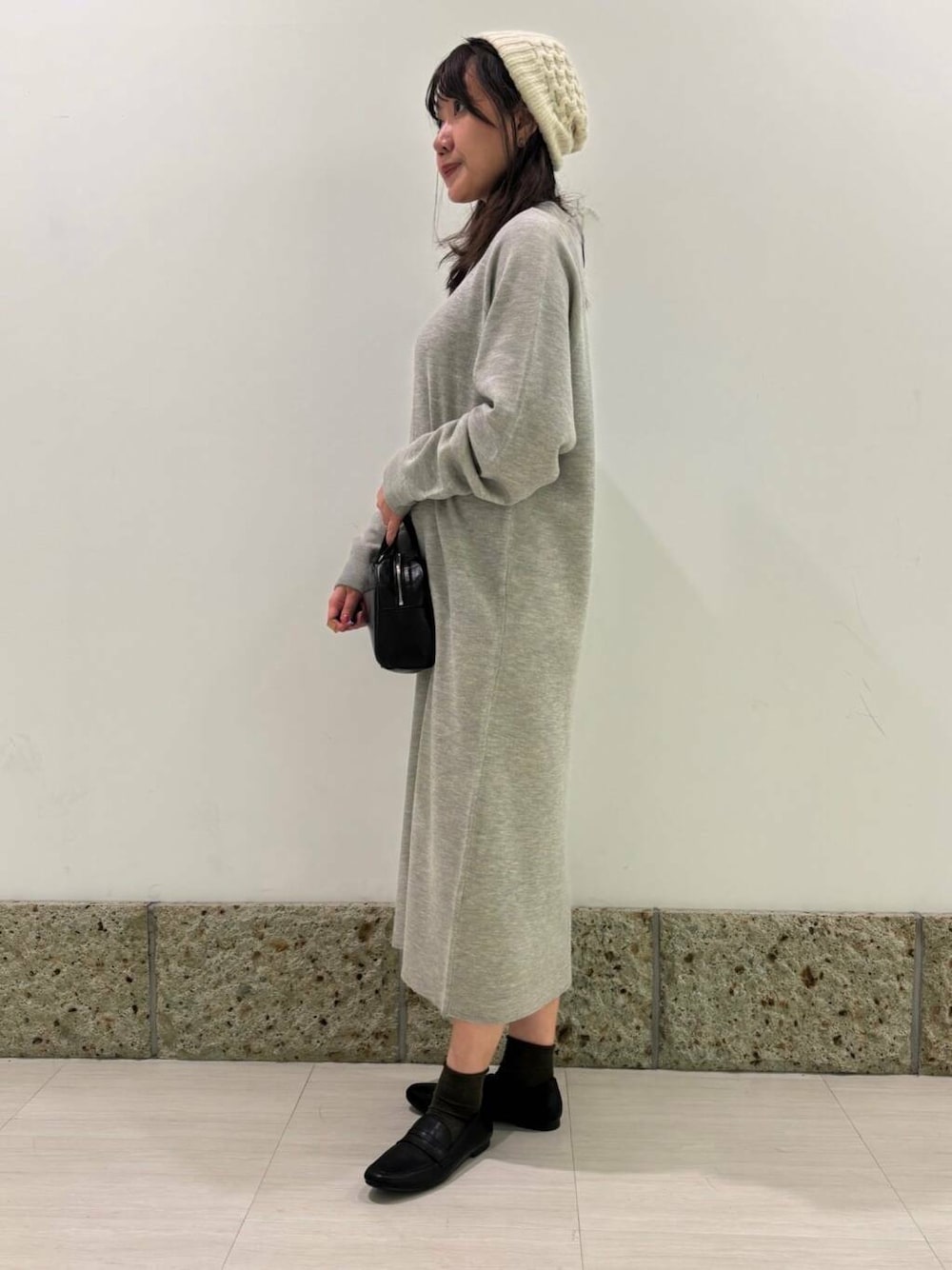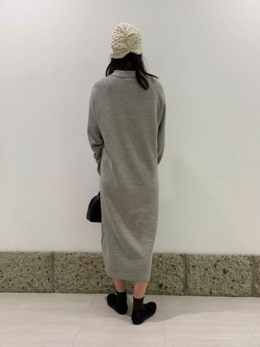 ニットワンピースはポロシャツ風のデザインで