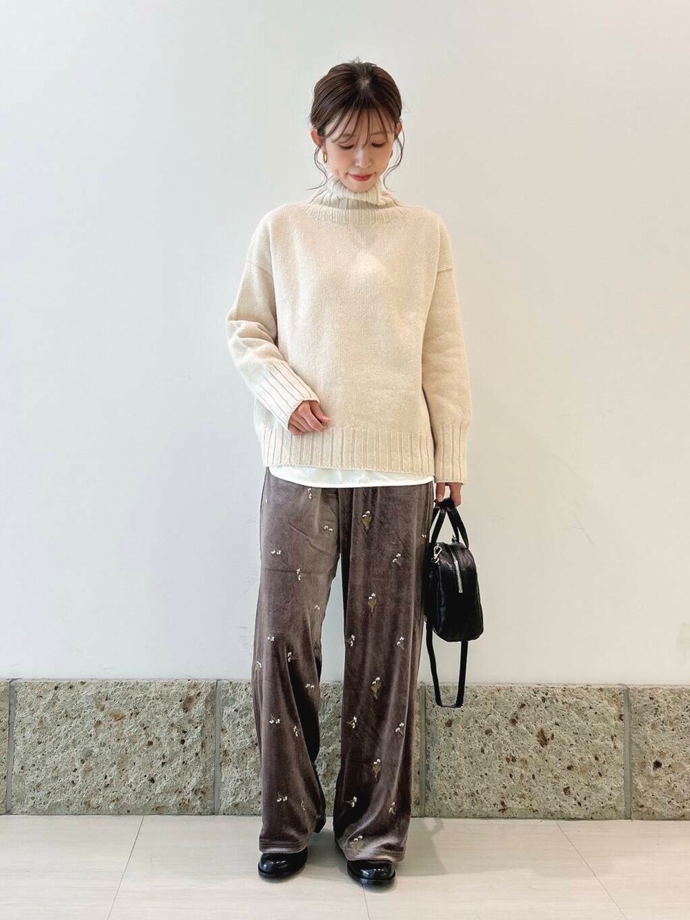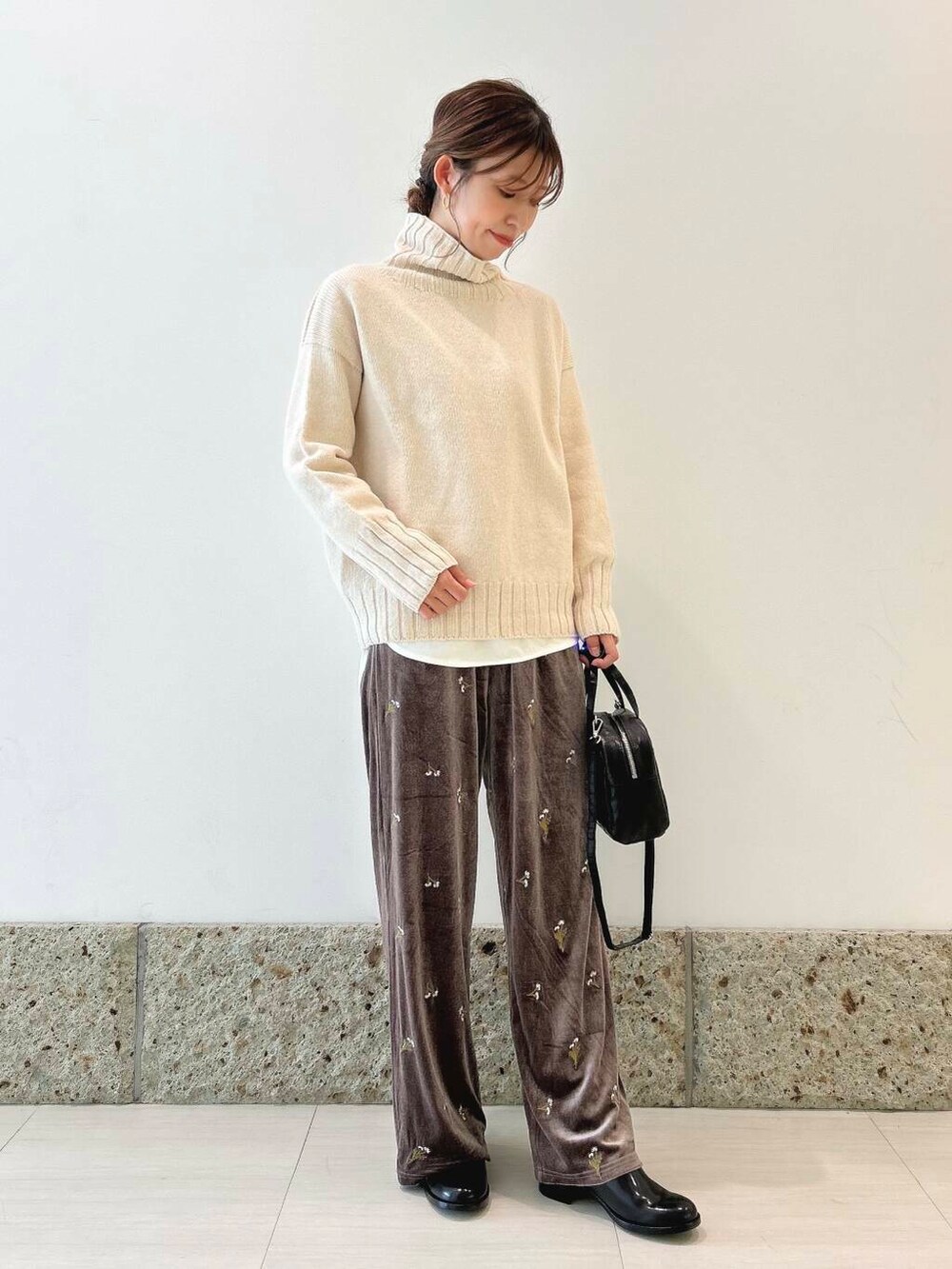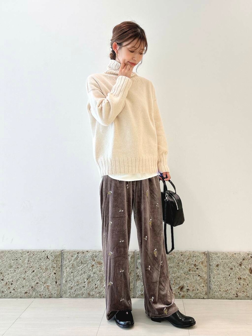 パンツはベロア生地にお花の刺繍🪡が施されていて