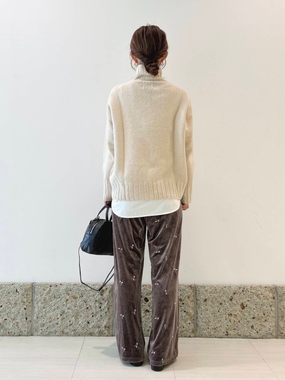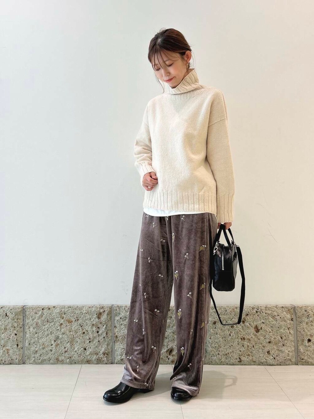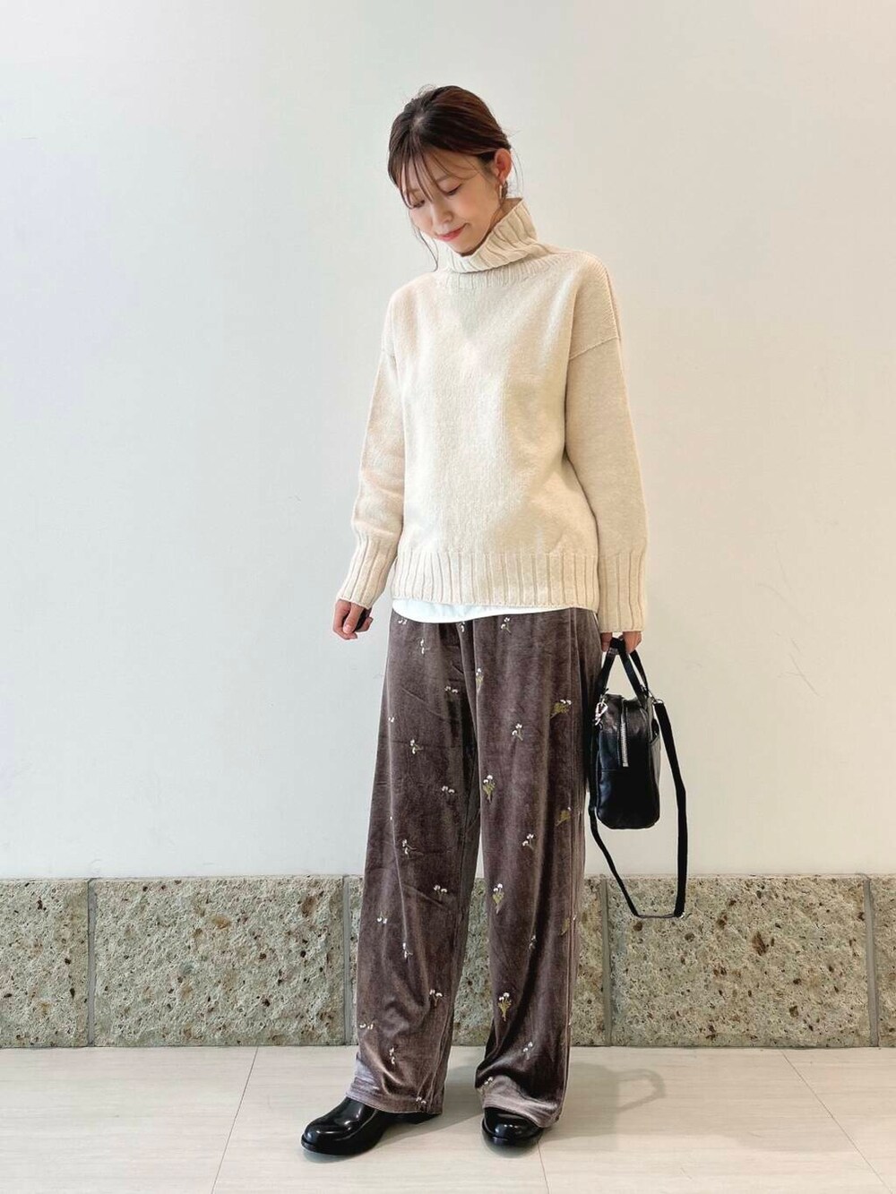 パンツはベロア生地にお花の刺繍🪡が施されていて