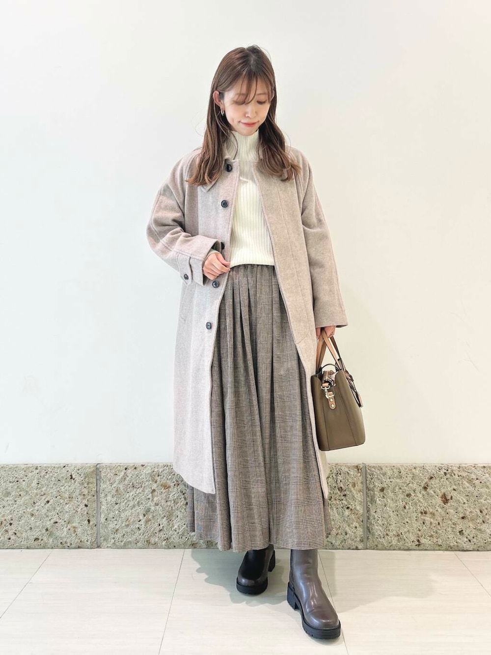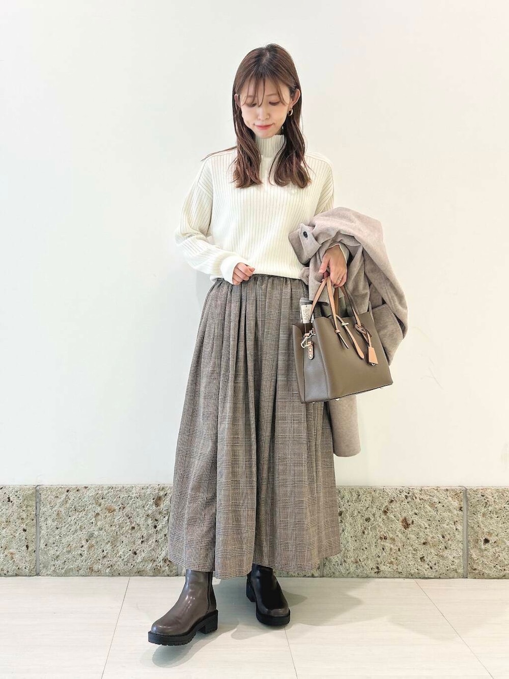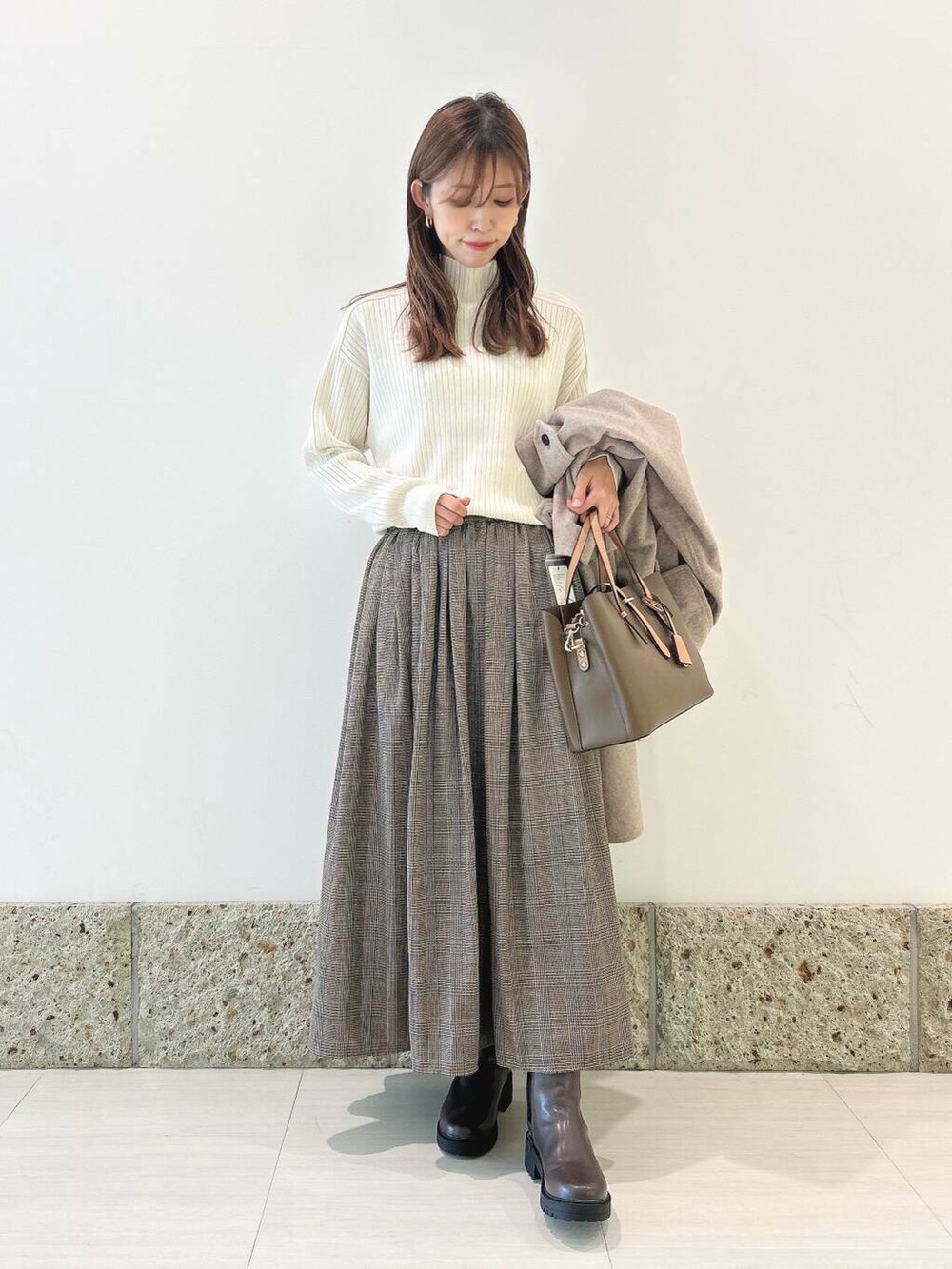 ブラウンベースのチェックが可愛いスカートを合わせ