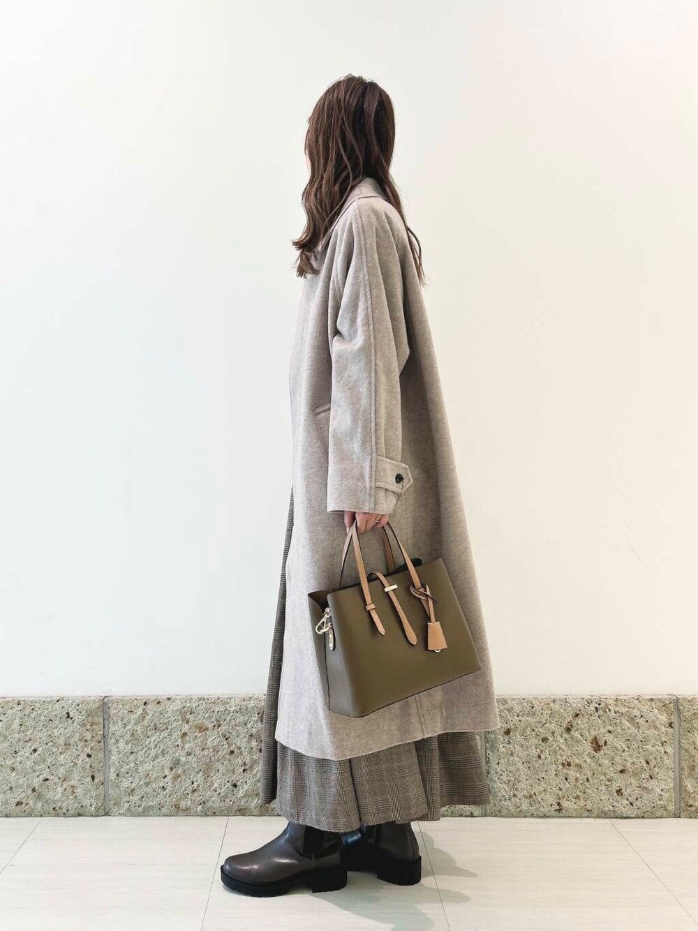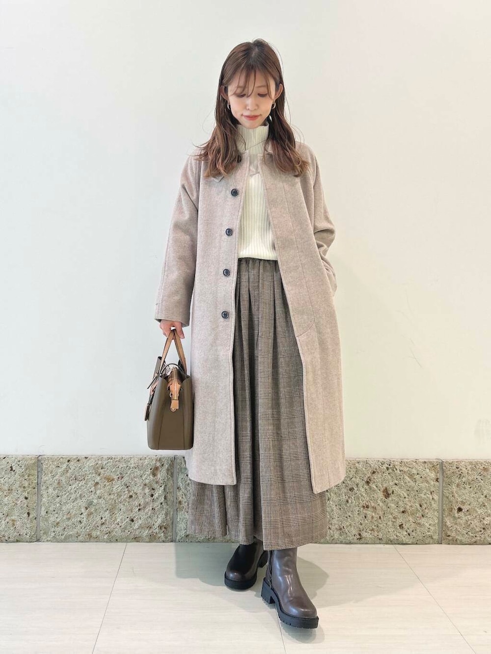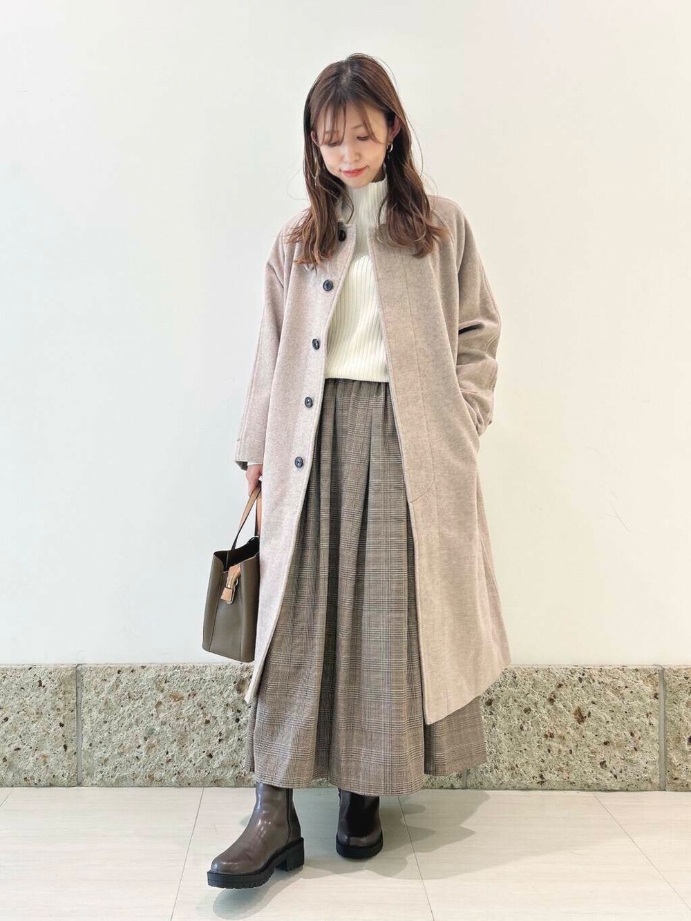 ブラウンベースのチェックが可愛いスカートを合わせ
