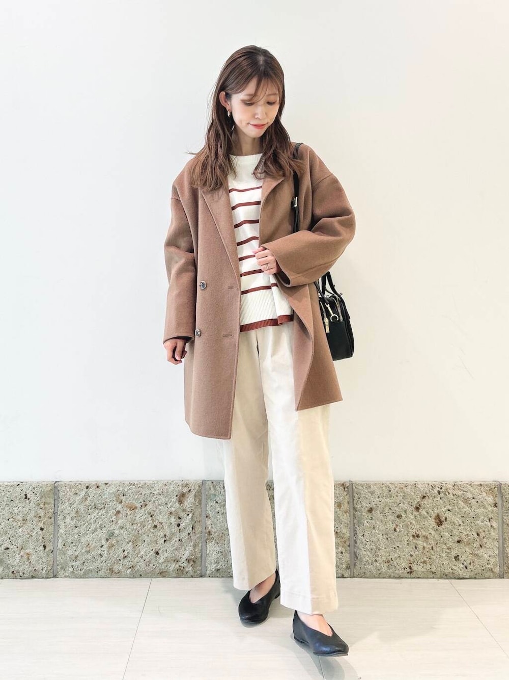 カバンと靴は黒にまとめてコーディネートが締まるよう