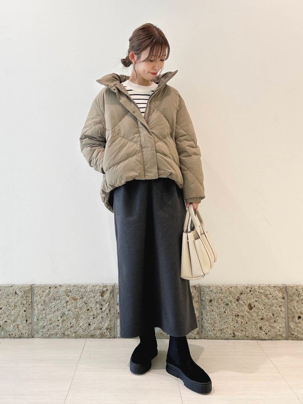 メルトン生地のスカートは、しっかり肉厚の生地で温かく着られます。