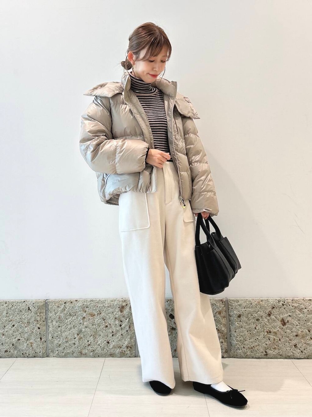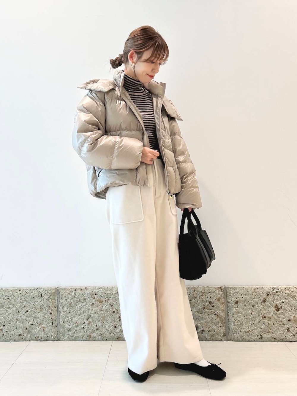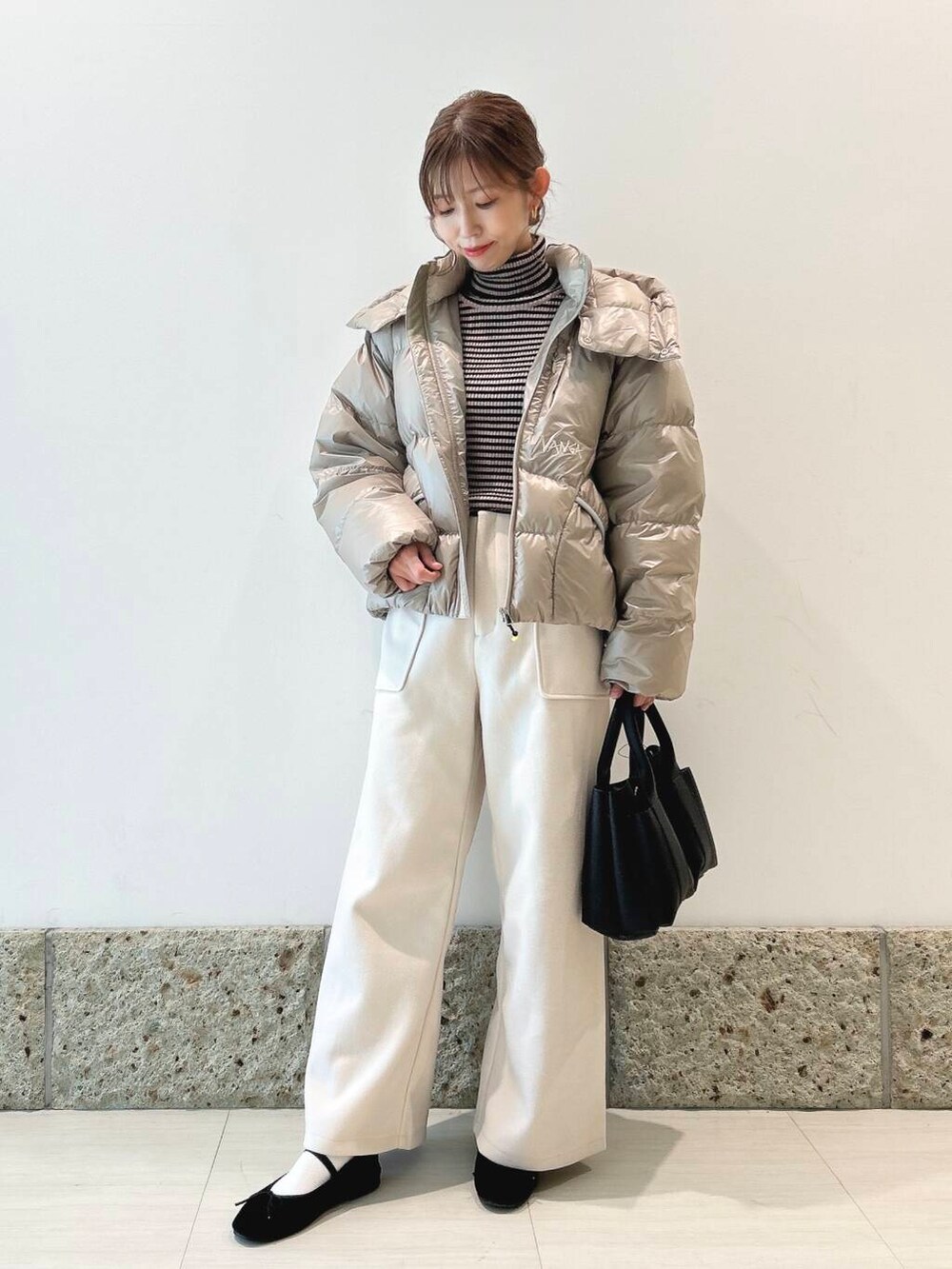 丈はコンパクトめなので、ワイドパンツやスカートと相性抜群ですよ◎