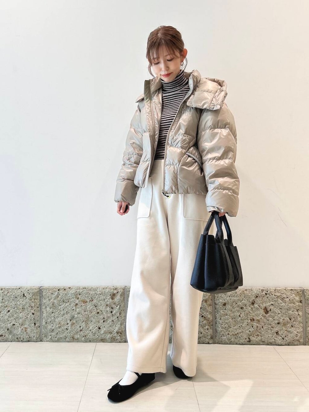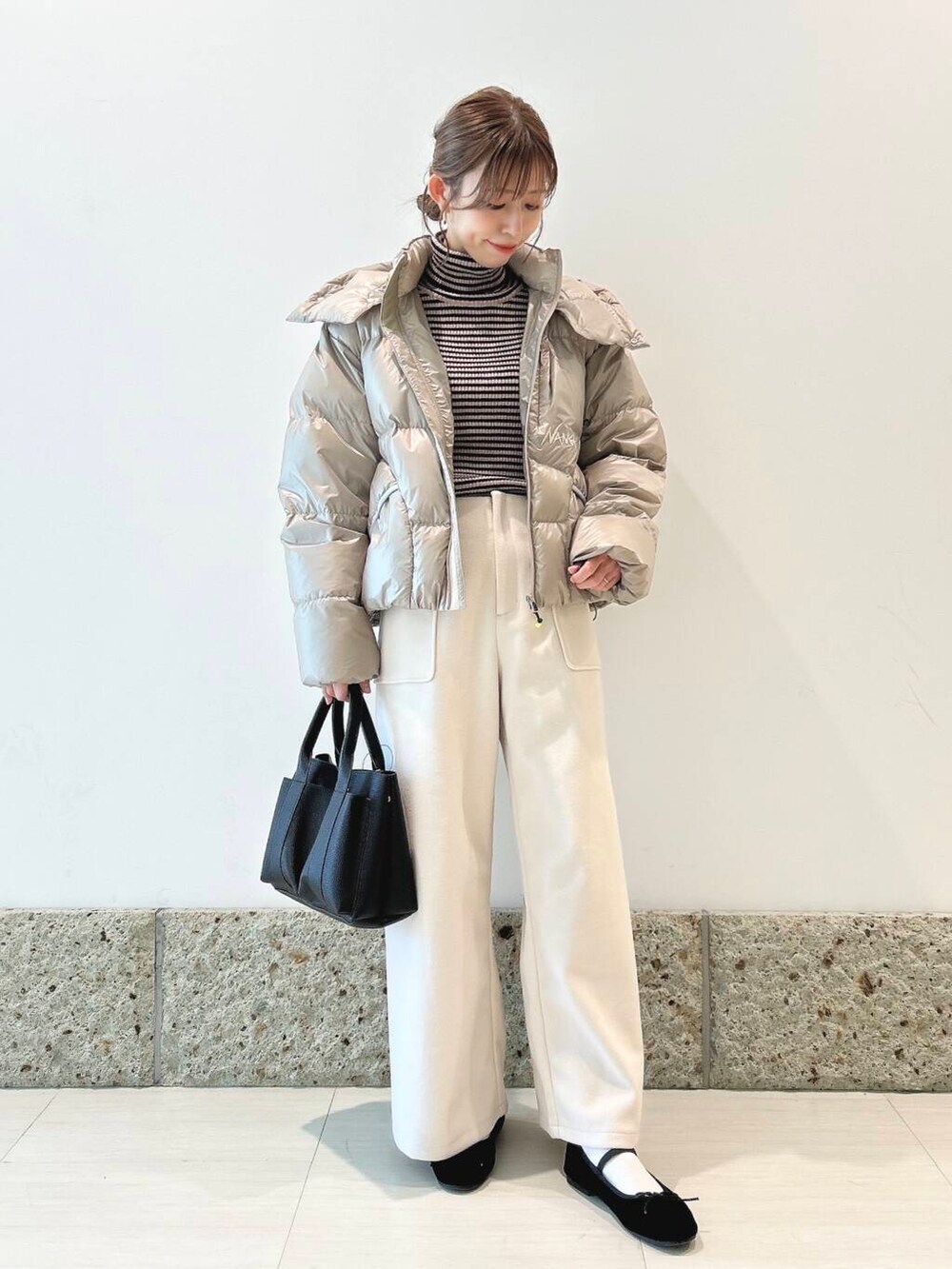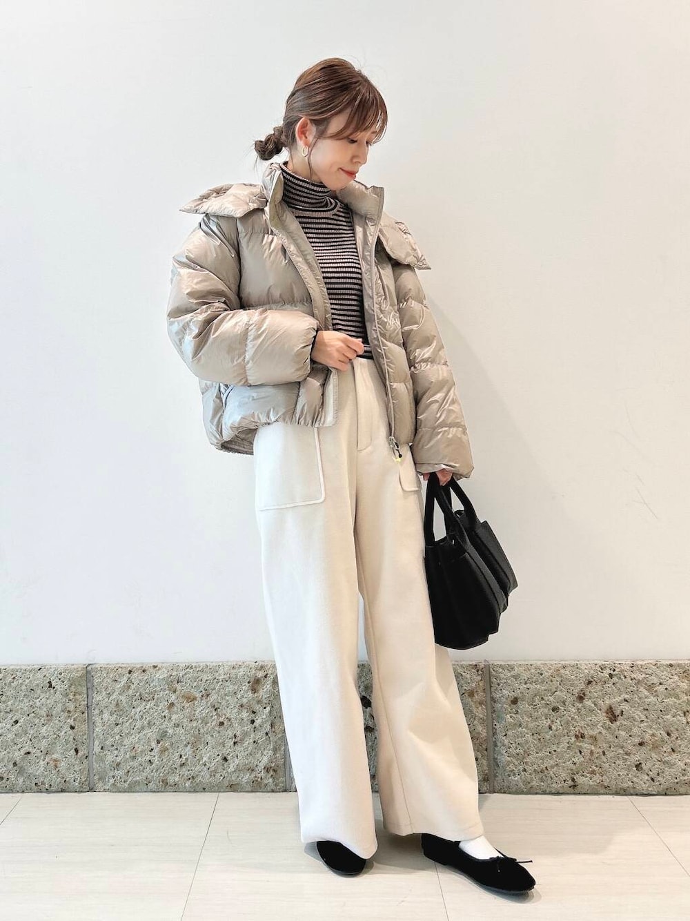 丈はコンパクトめなので、ワイドパンツやスカートと相性抜群ですよ◎
