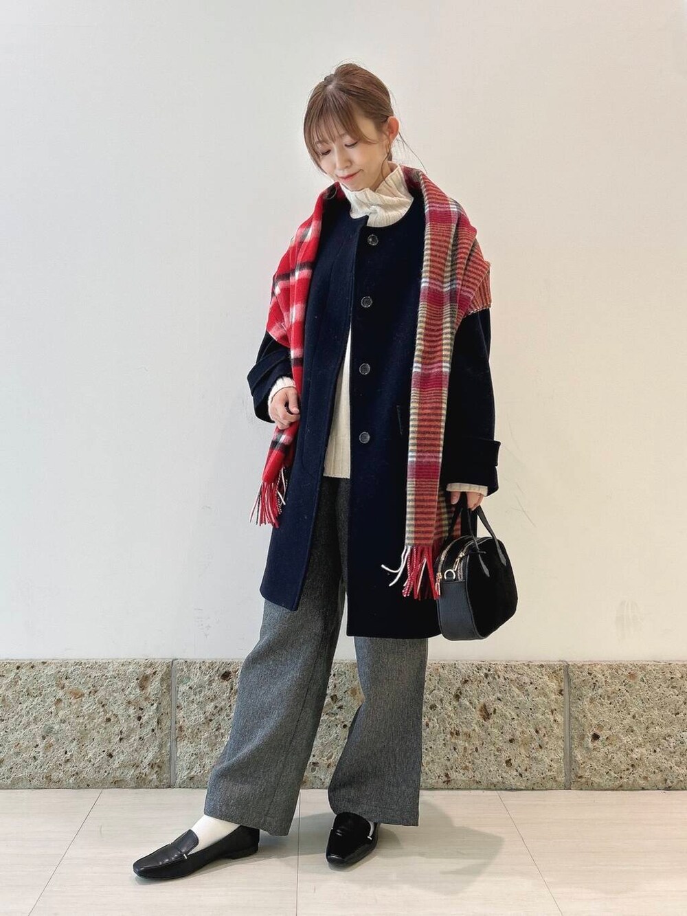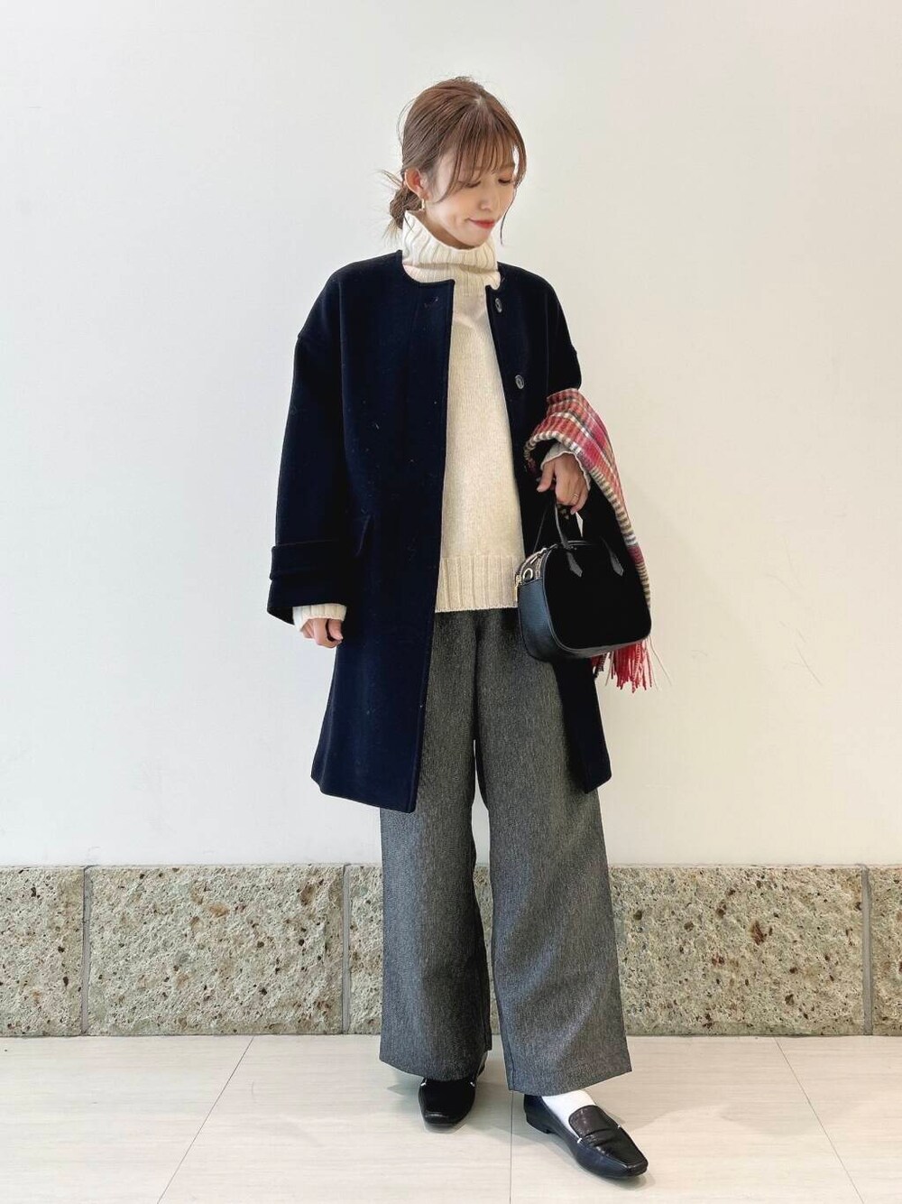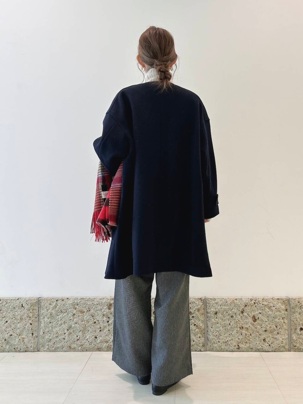 ノーカラーはマフラーなども巻きやすいですよ♪