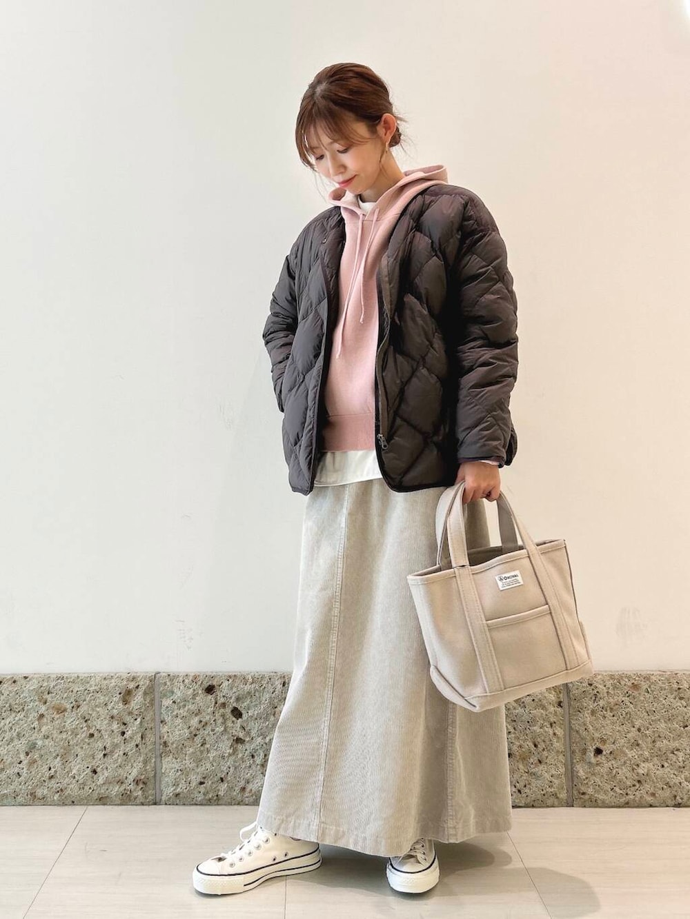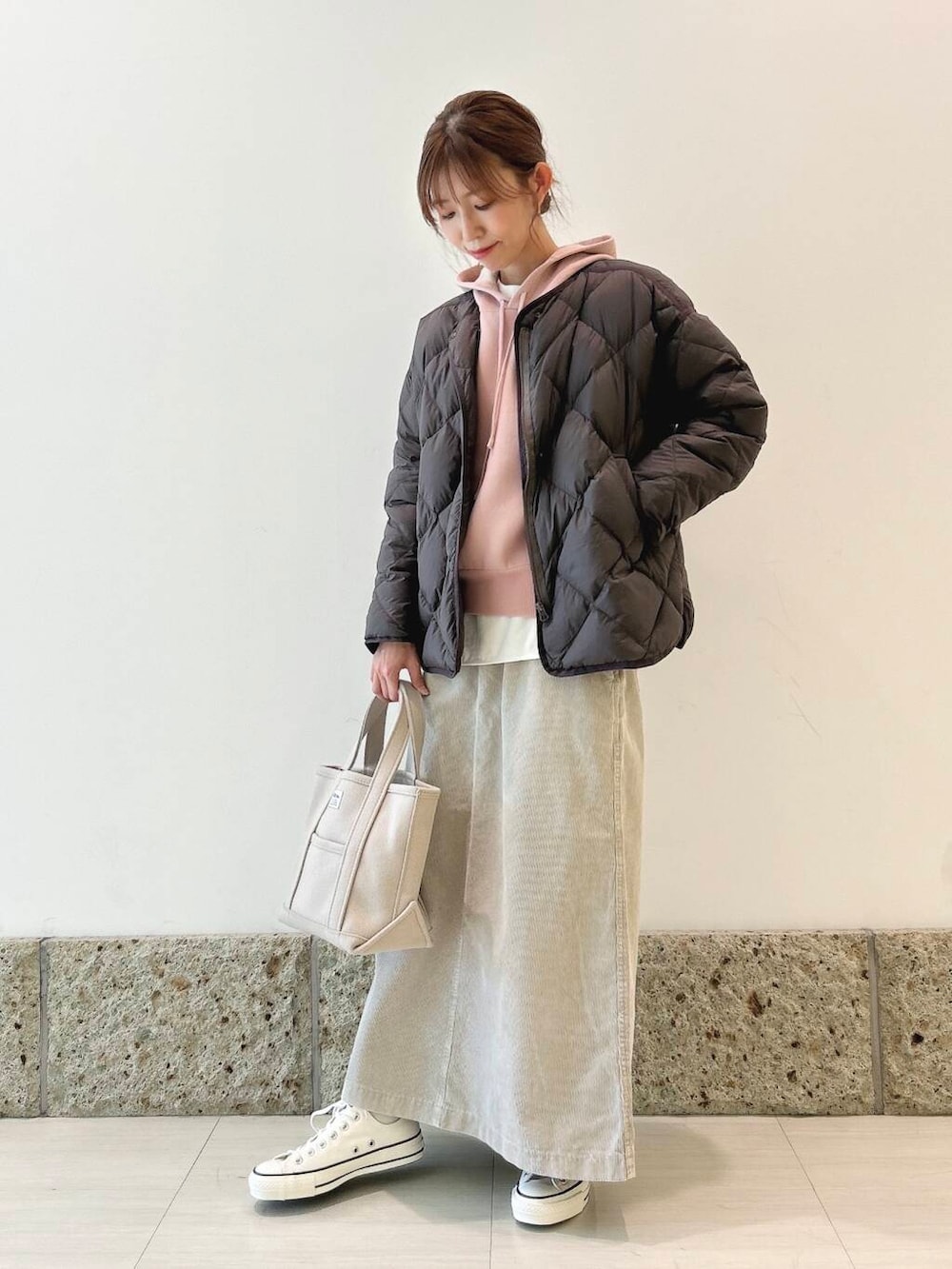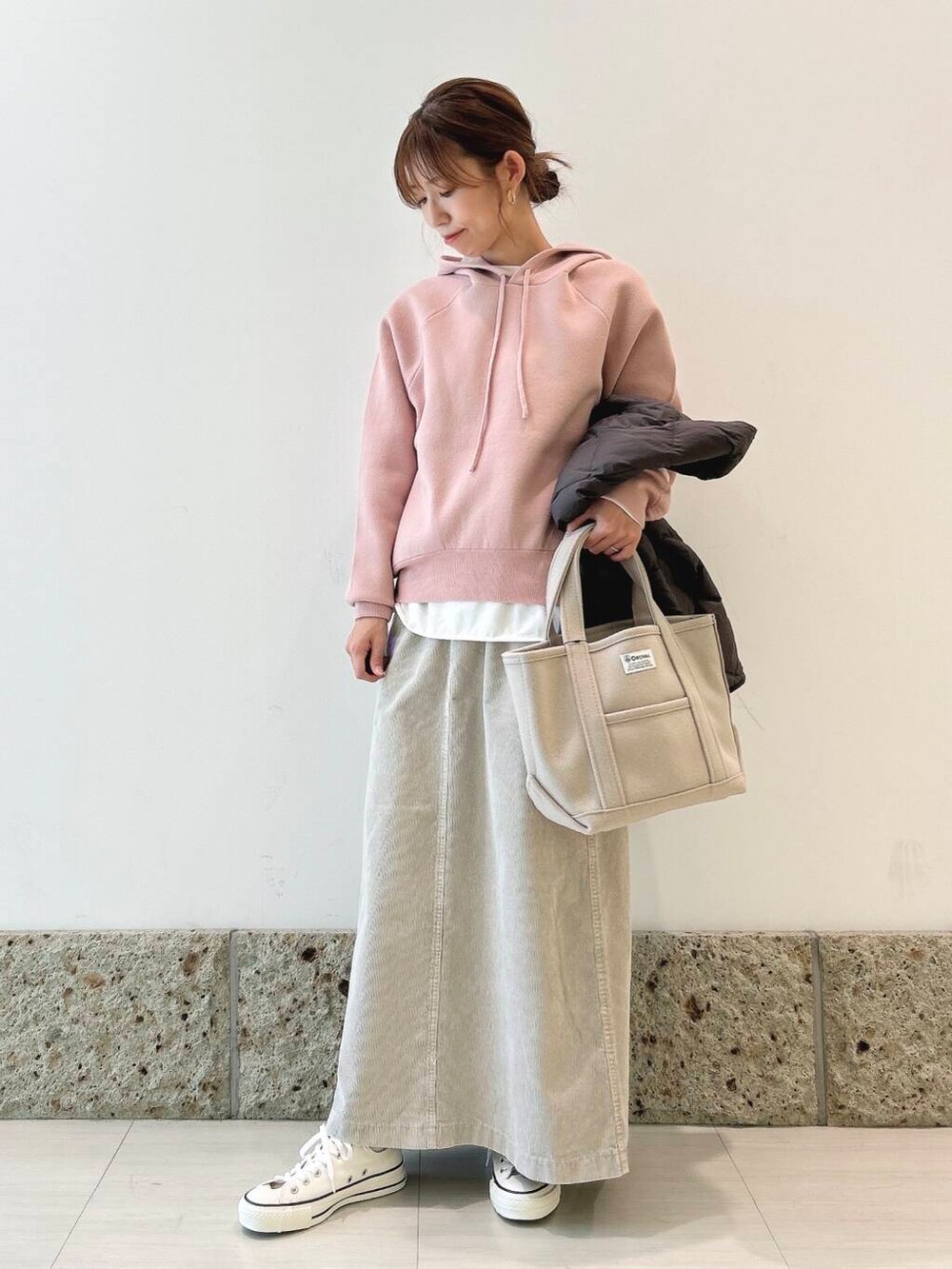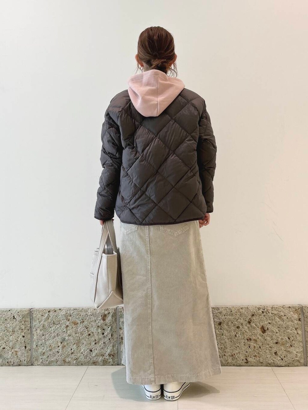 スカートは製品染め独特の風合い、コーデュロイの立体感、