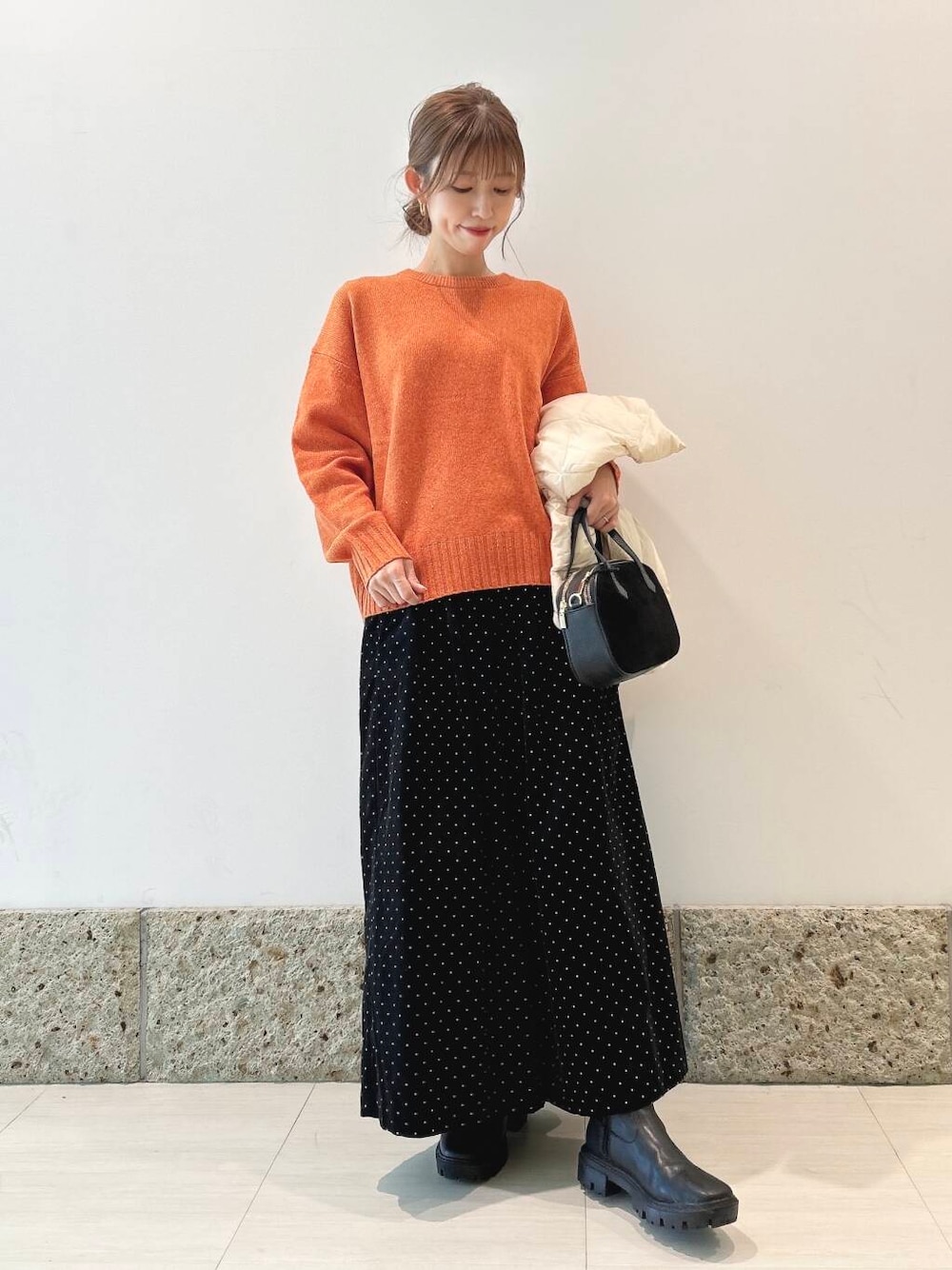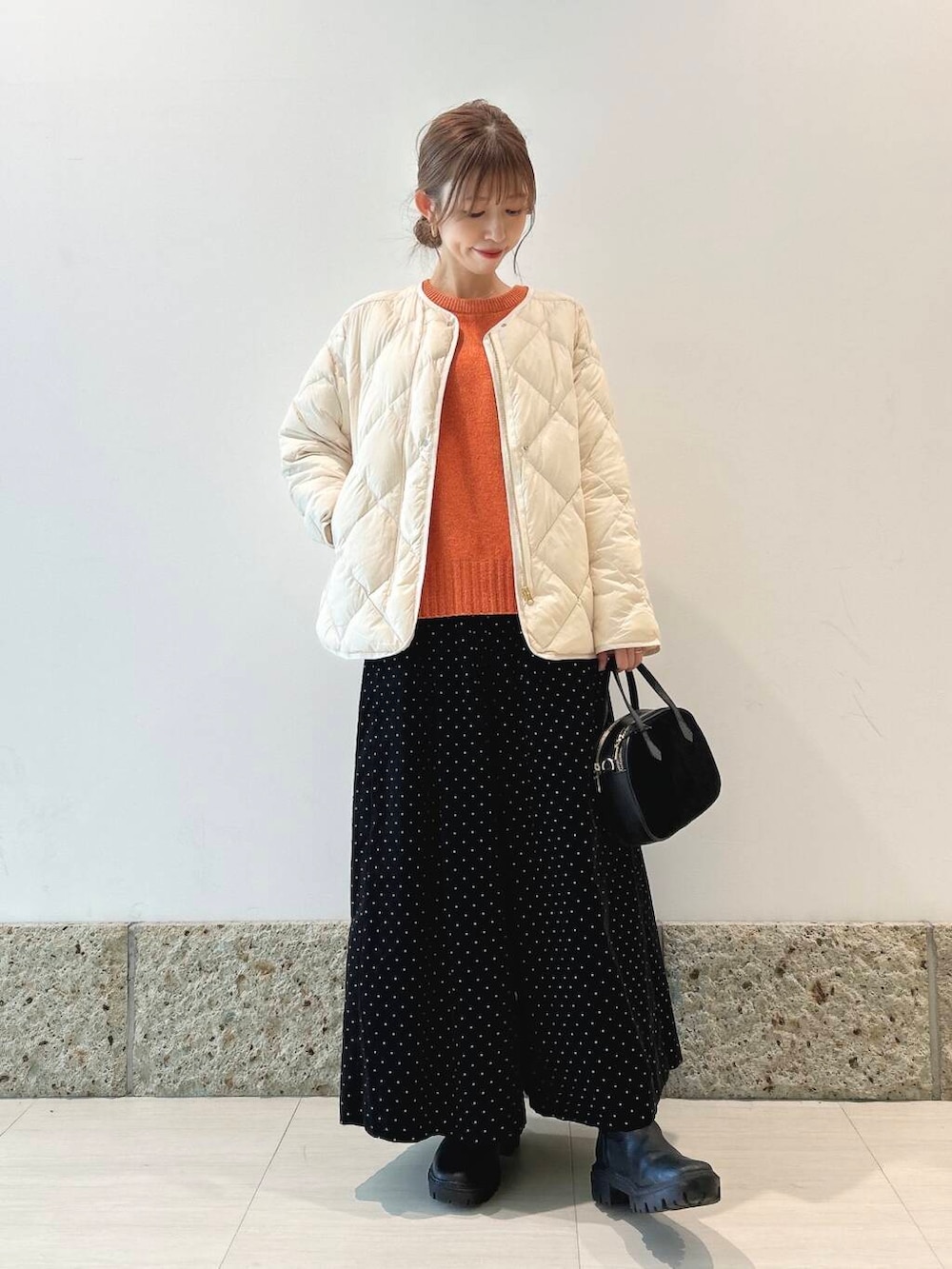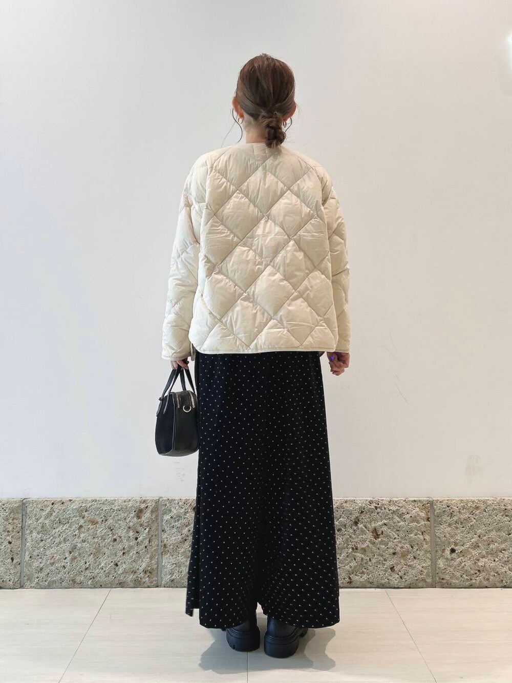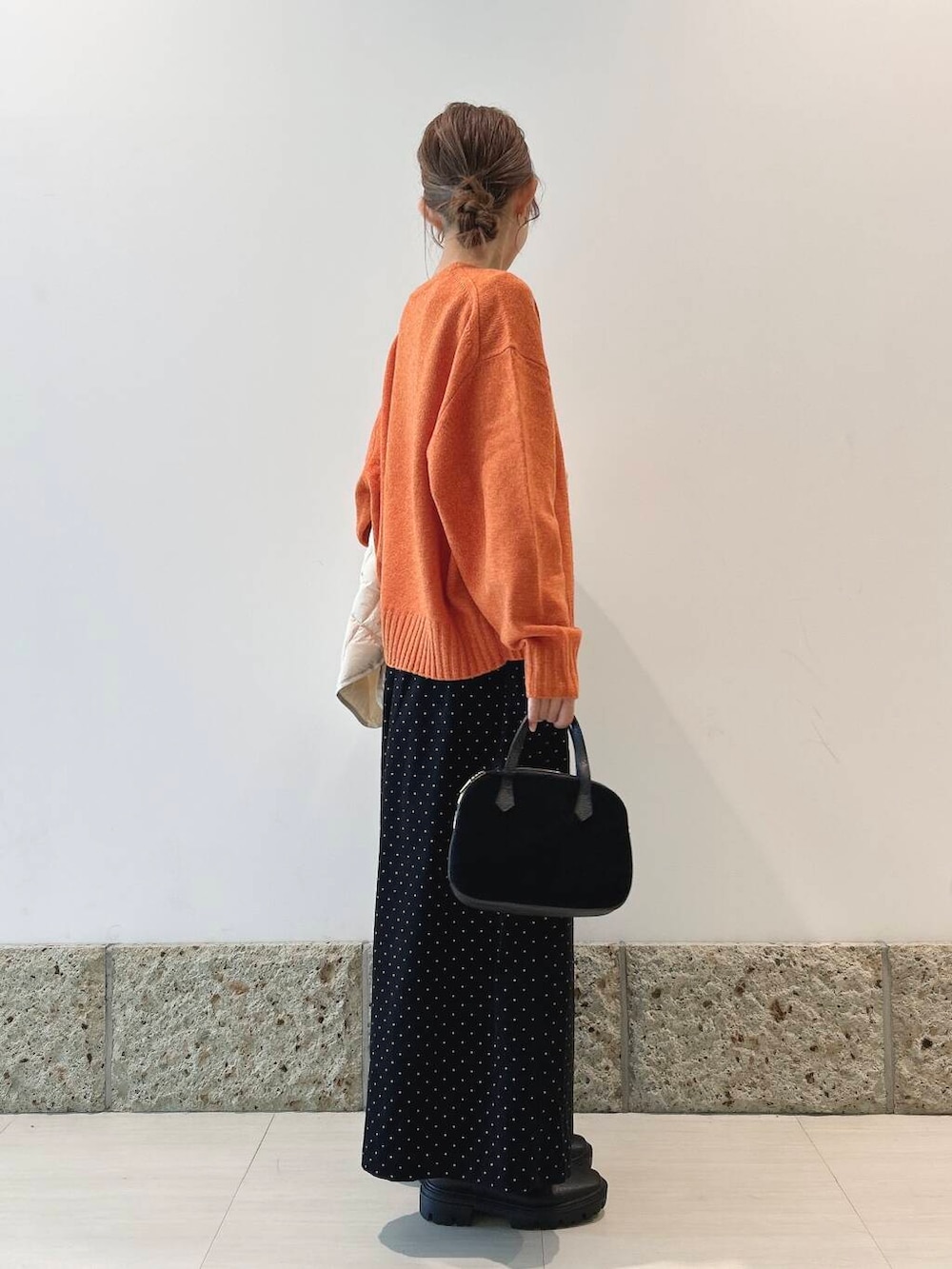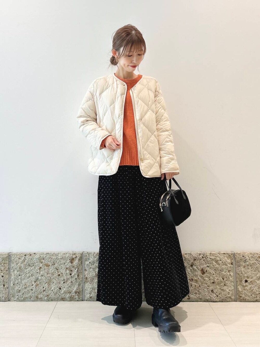 ボトムには小ぶりのドットが大人可愛ワイドパンツを。