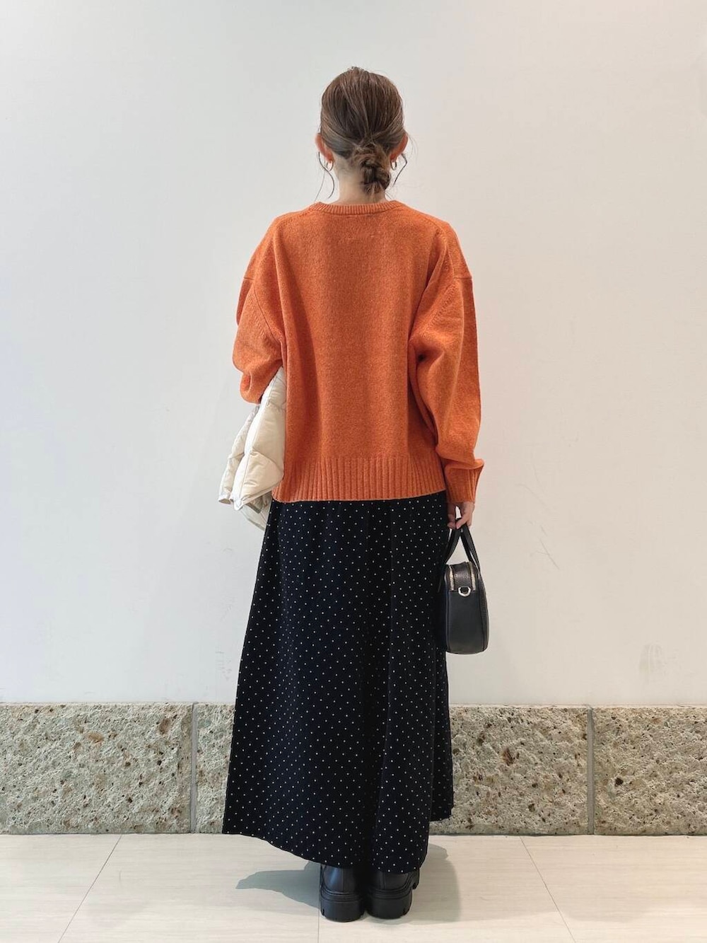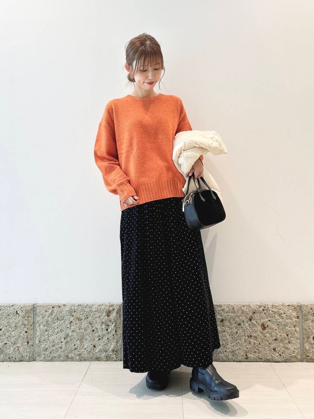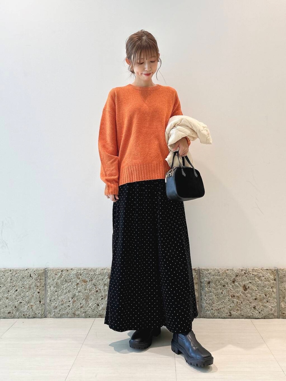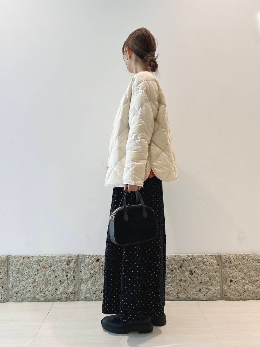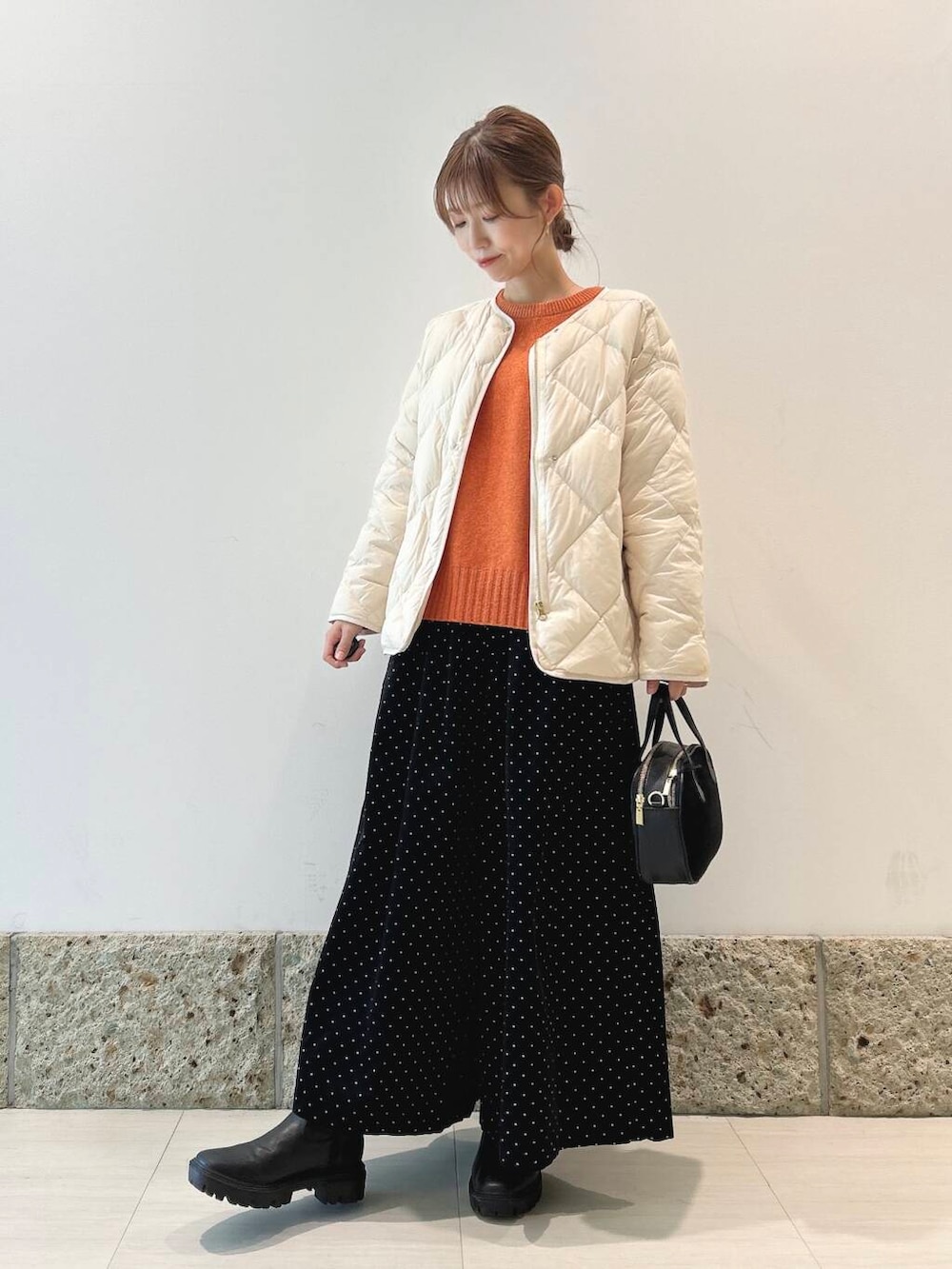 ボトムには小ぶりのドットが大人可愛ワイドパンツを。