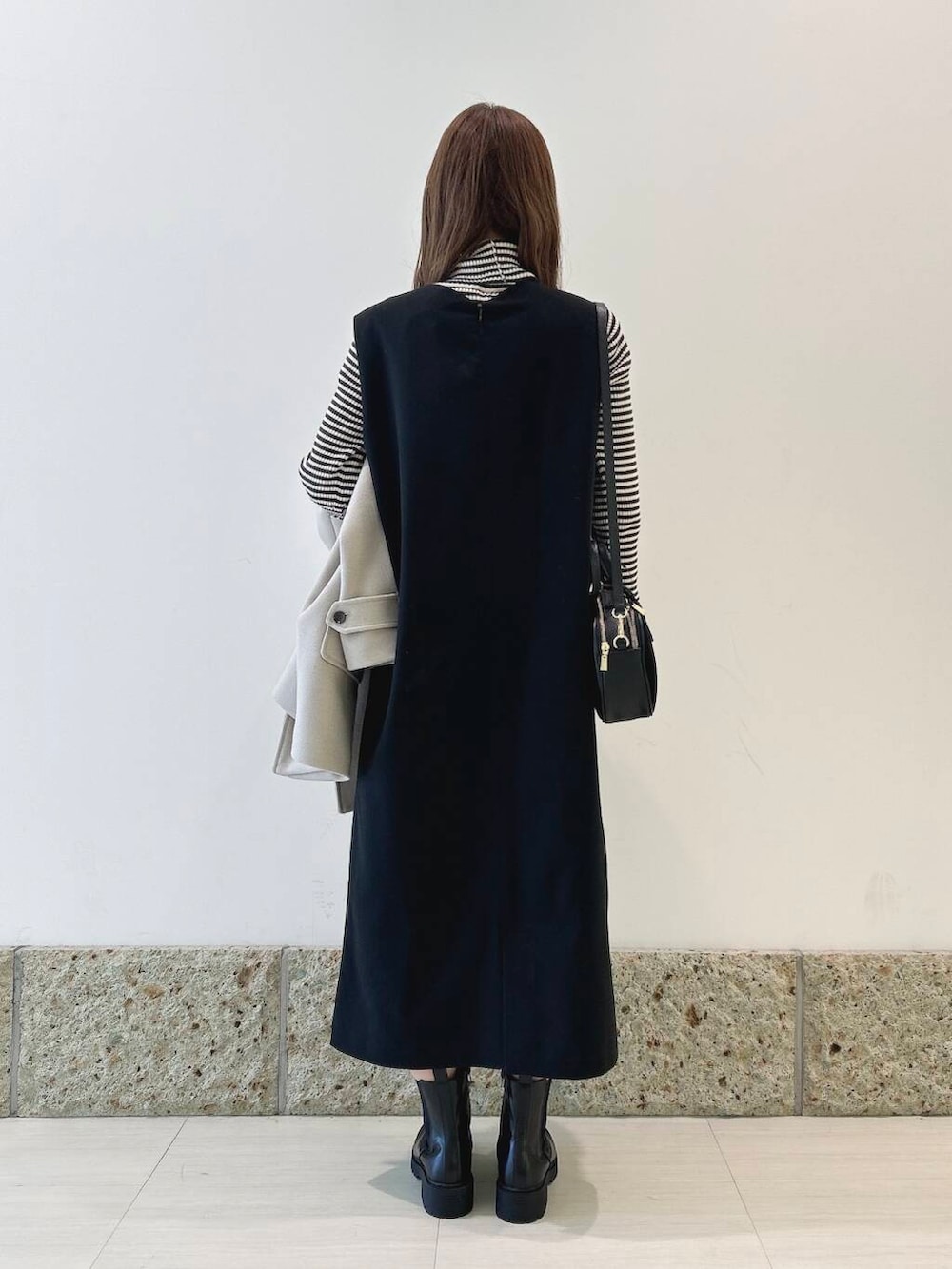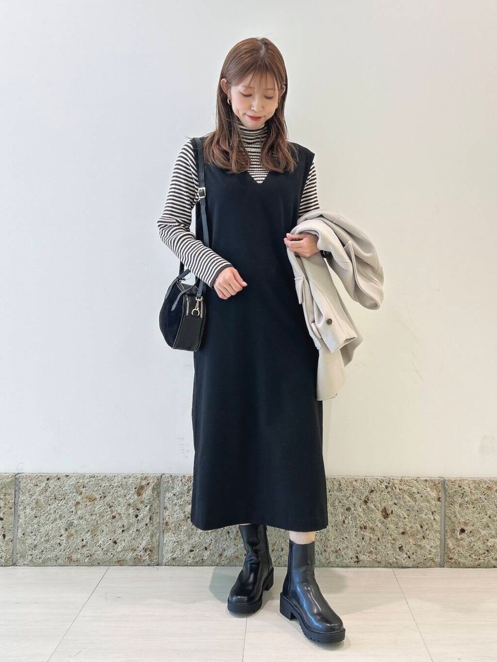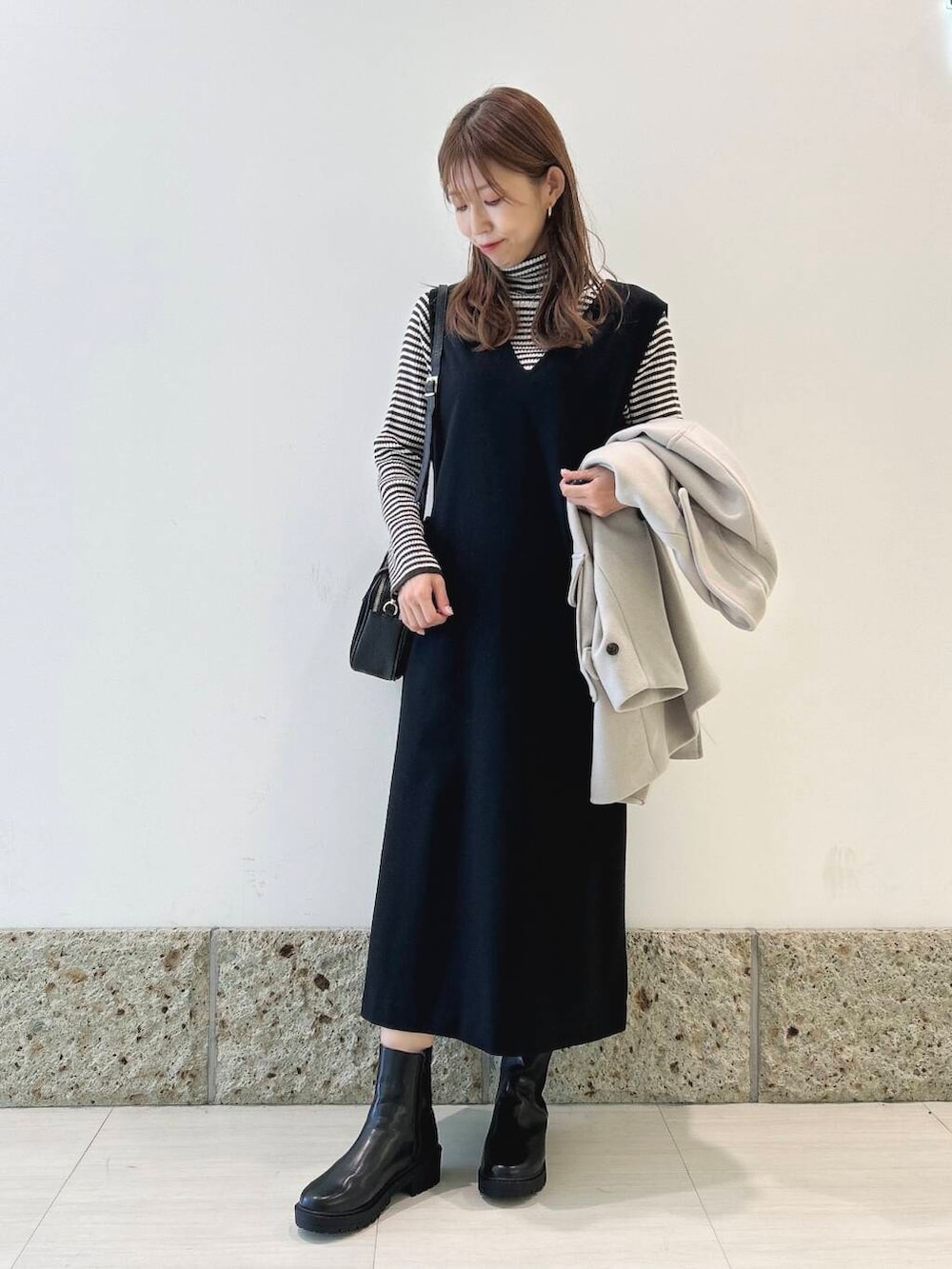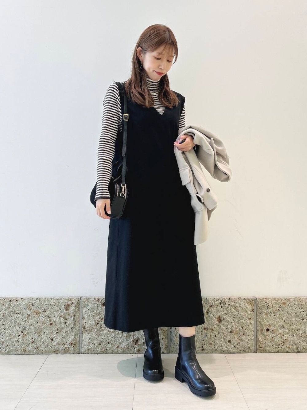 ジャンパースカートは程良くゆとりあるストレートラインで