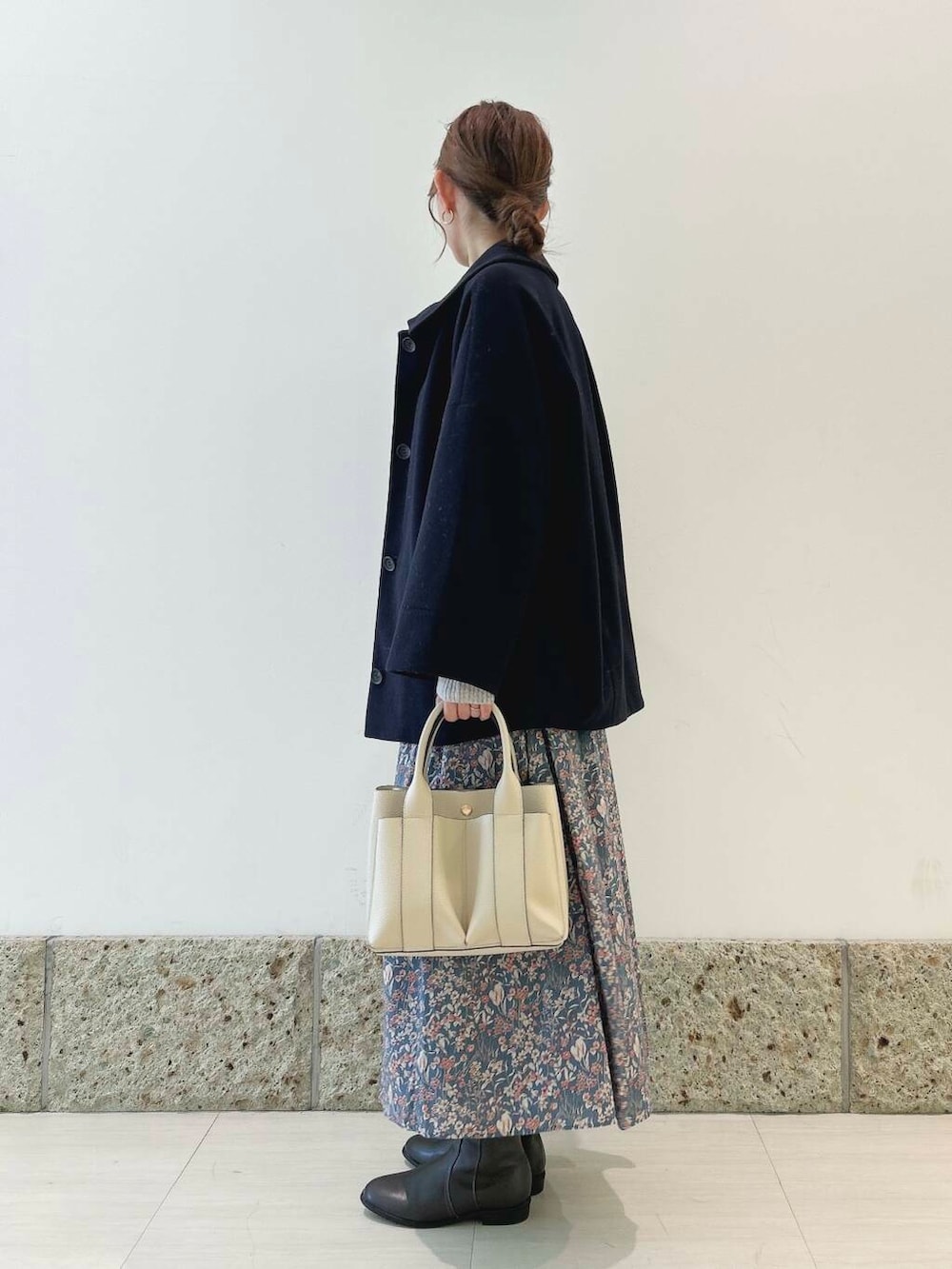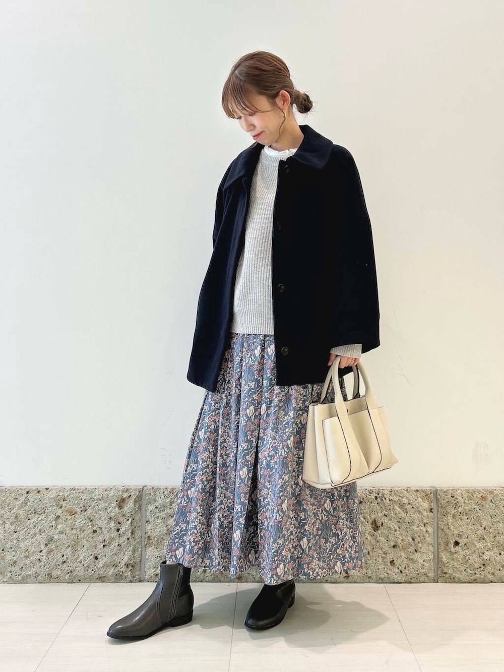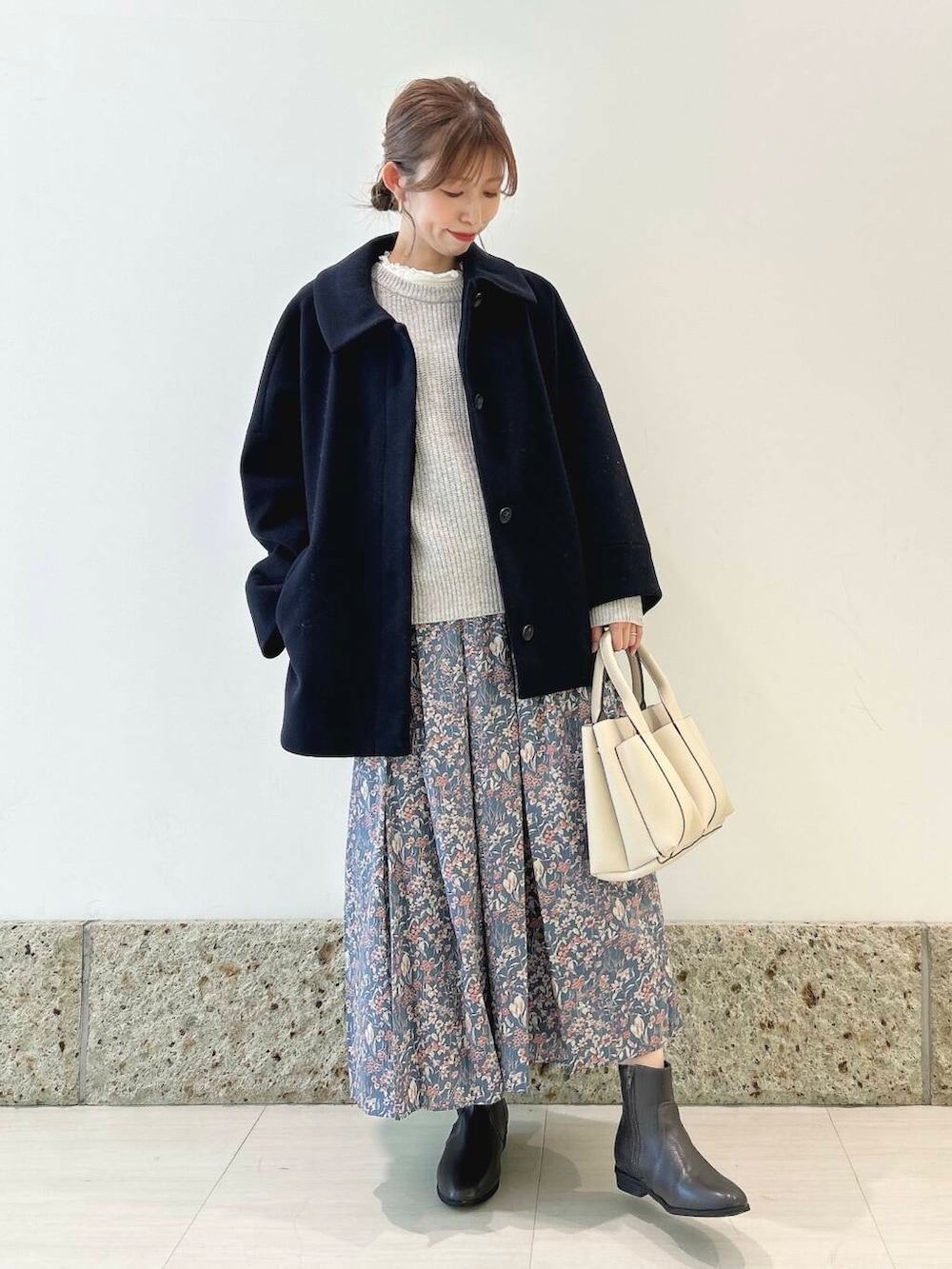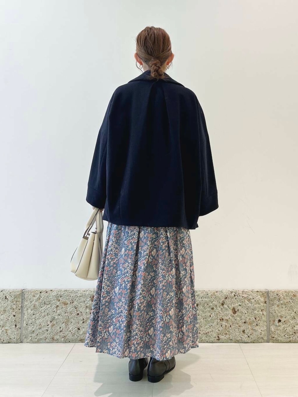 アウターは丸みのあるコクーンシルエットが