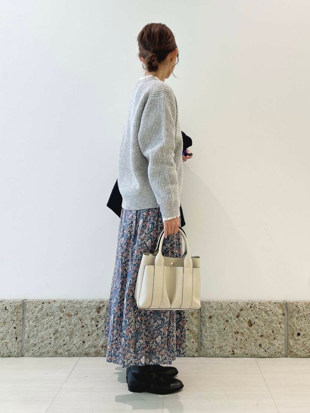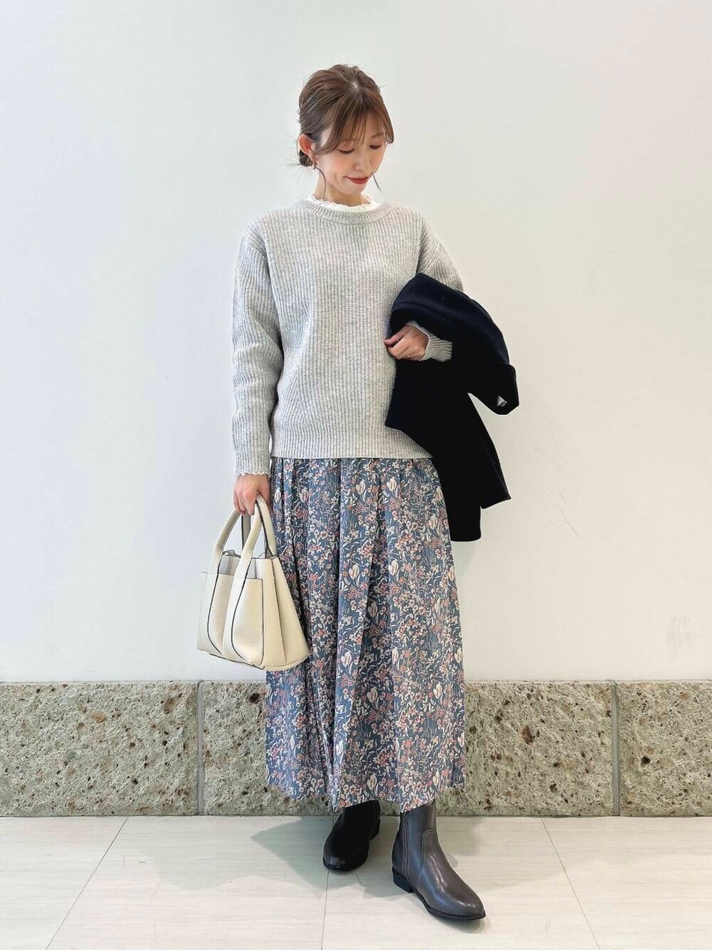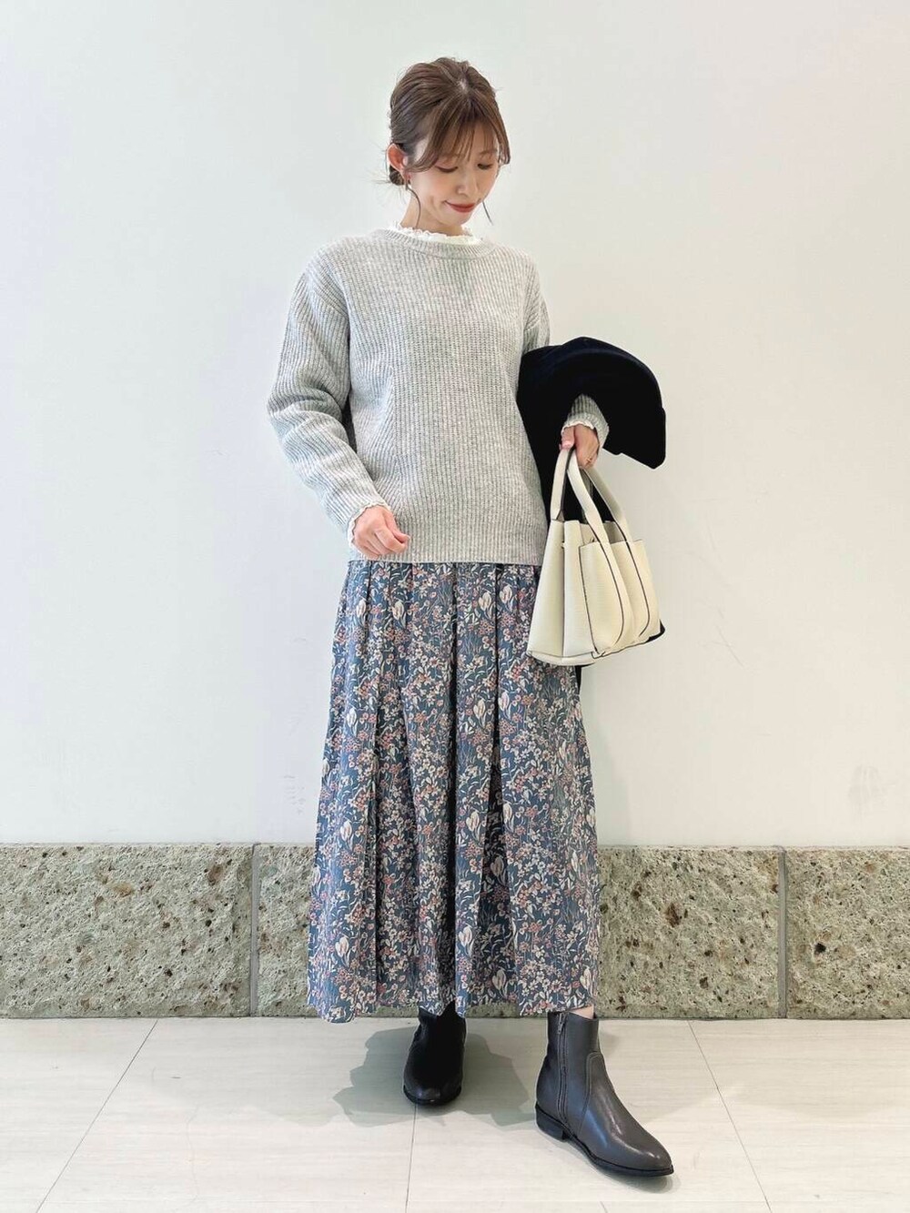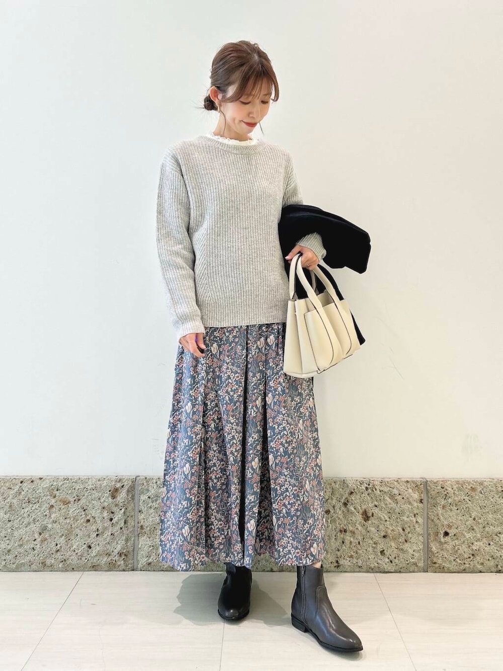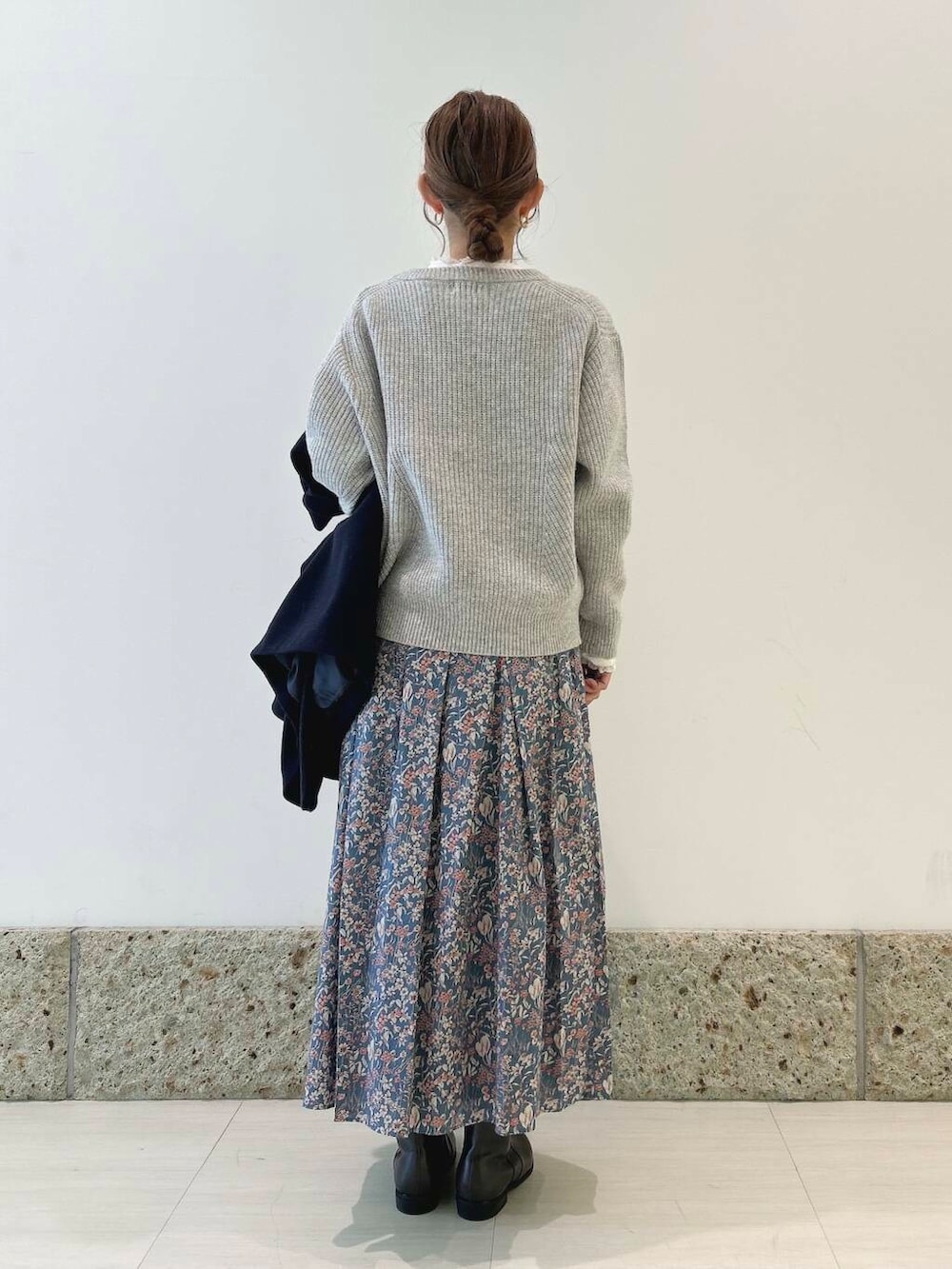 アウターは丸みのあるコクーンシルエットが