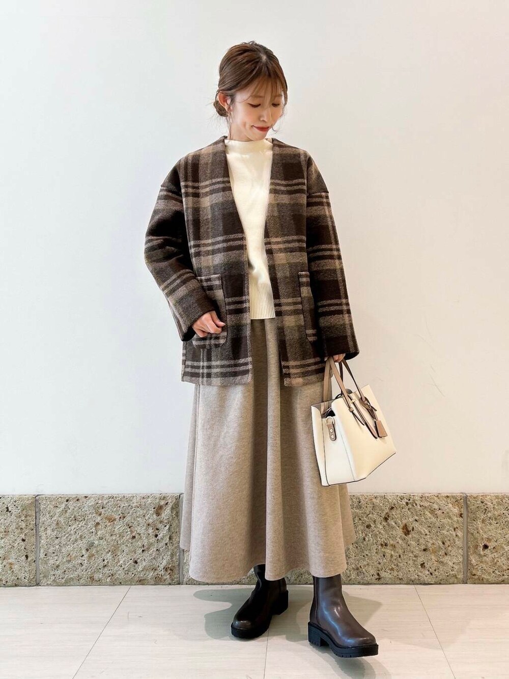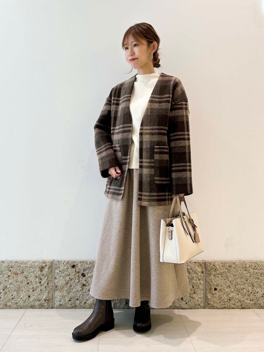 スカートはウール見えする見た目から暖かみのあるアイテムです✨