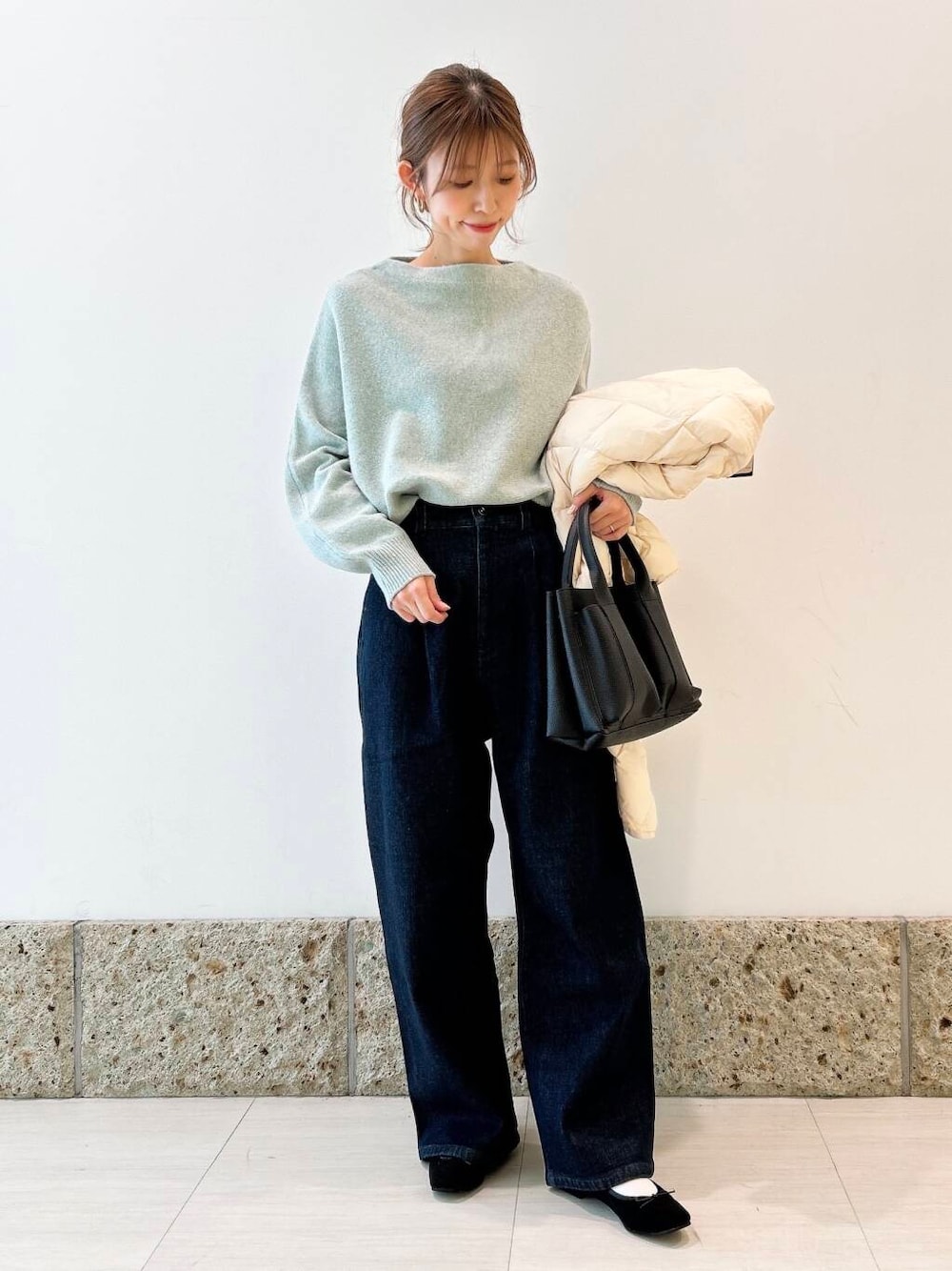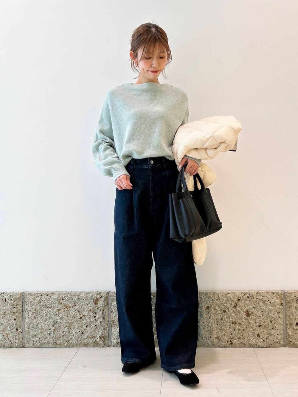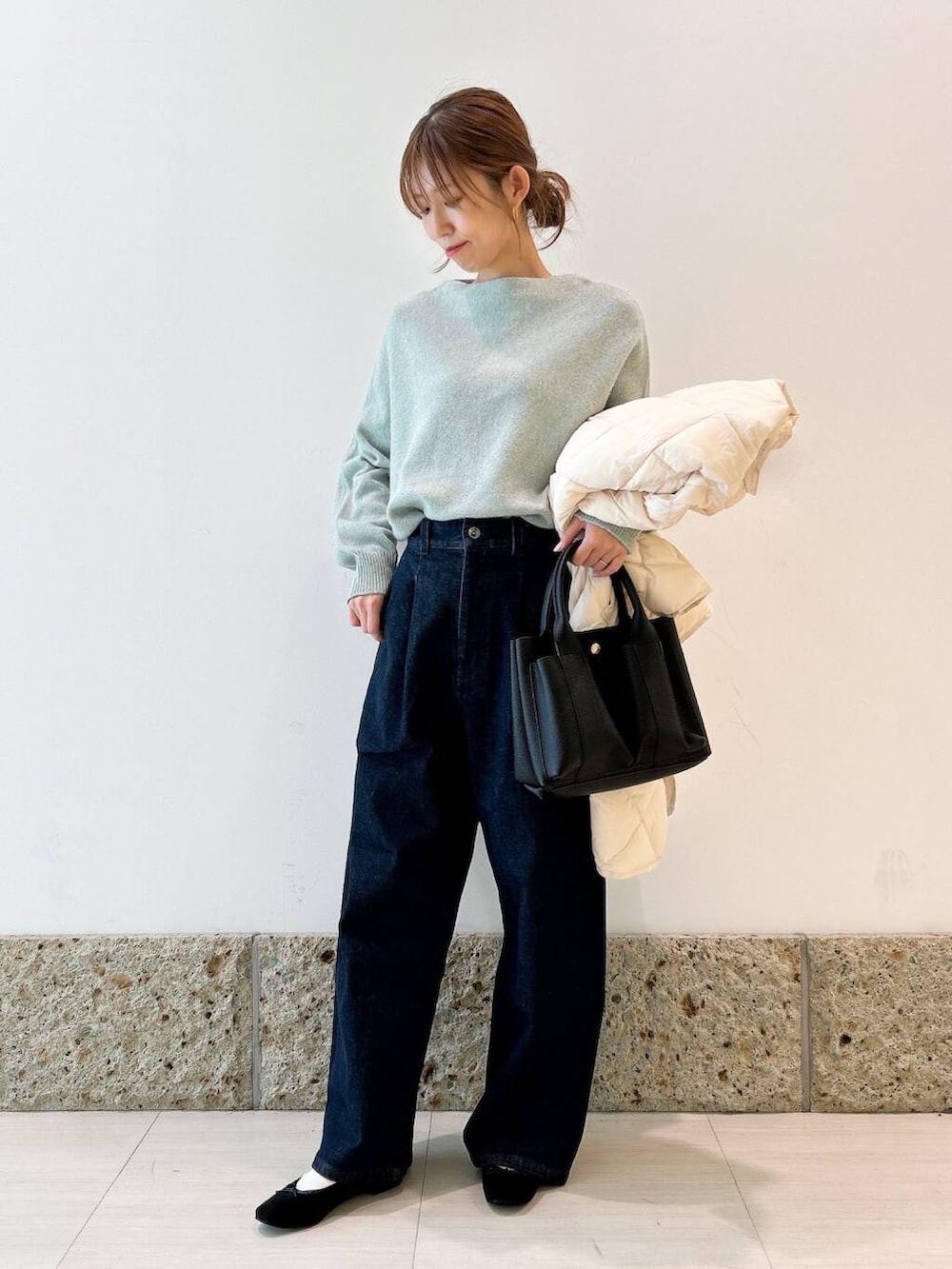 合わせたデニムは裏起毛で暖かいんです🔥
