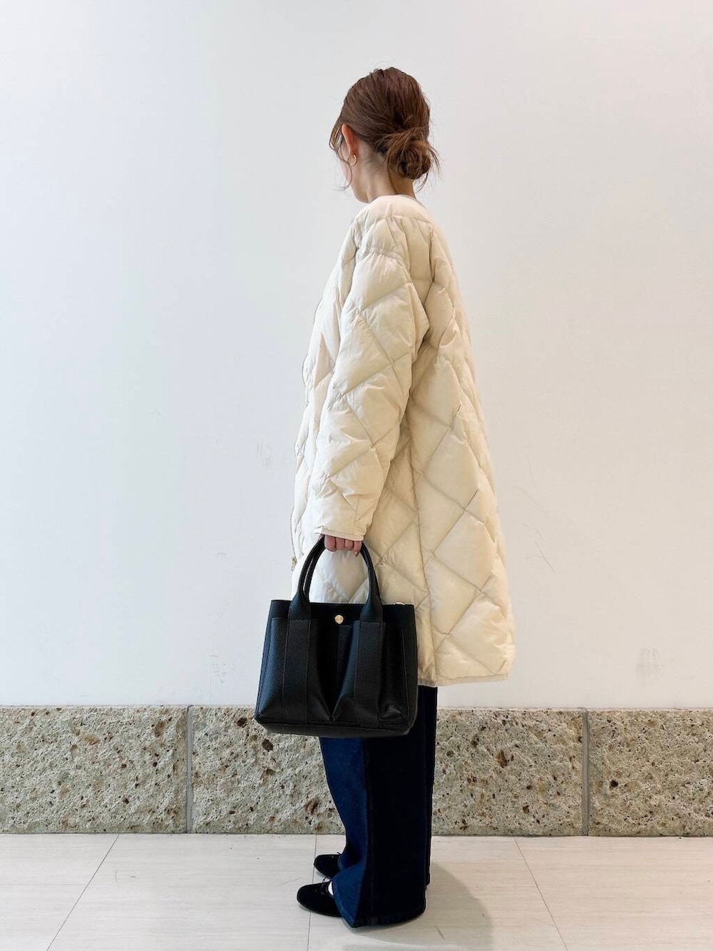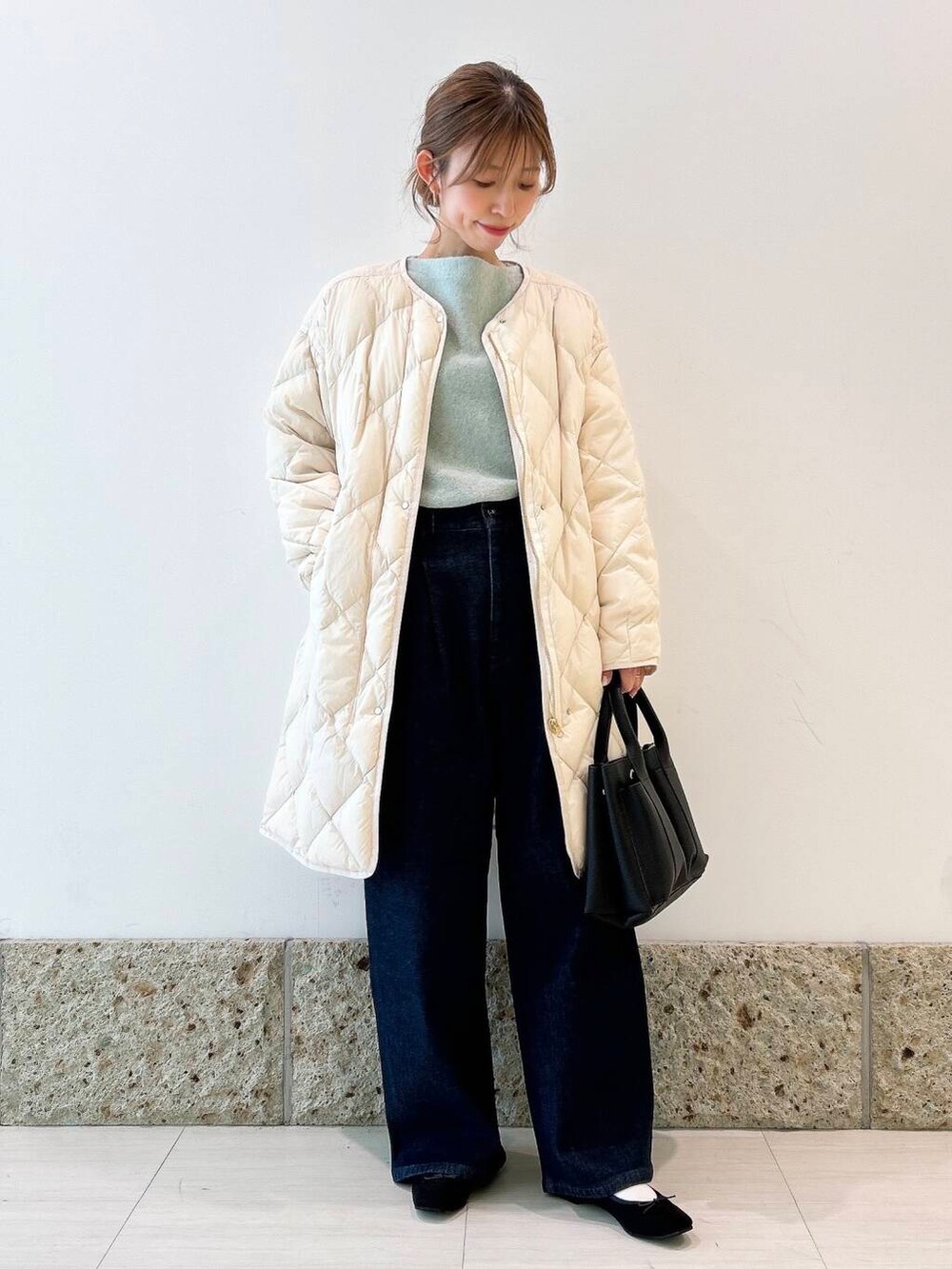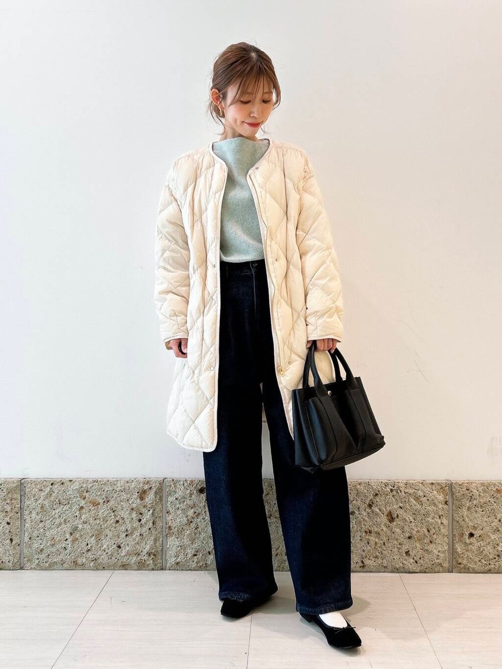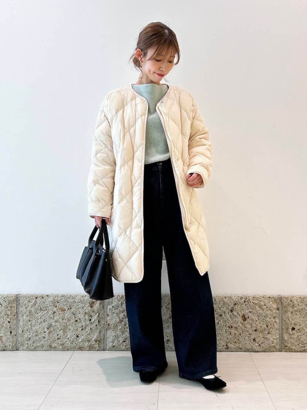 アウターはとっっても軽いロングダウンを。