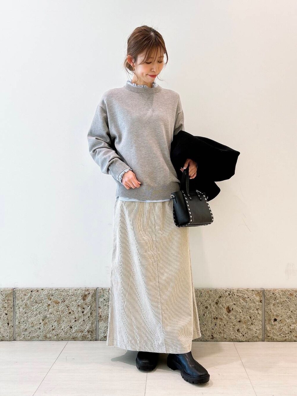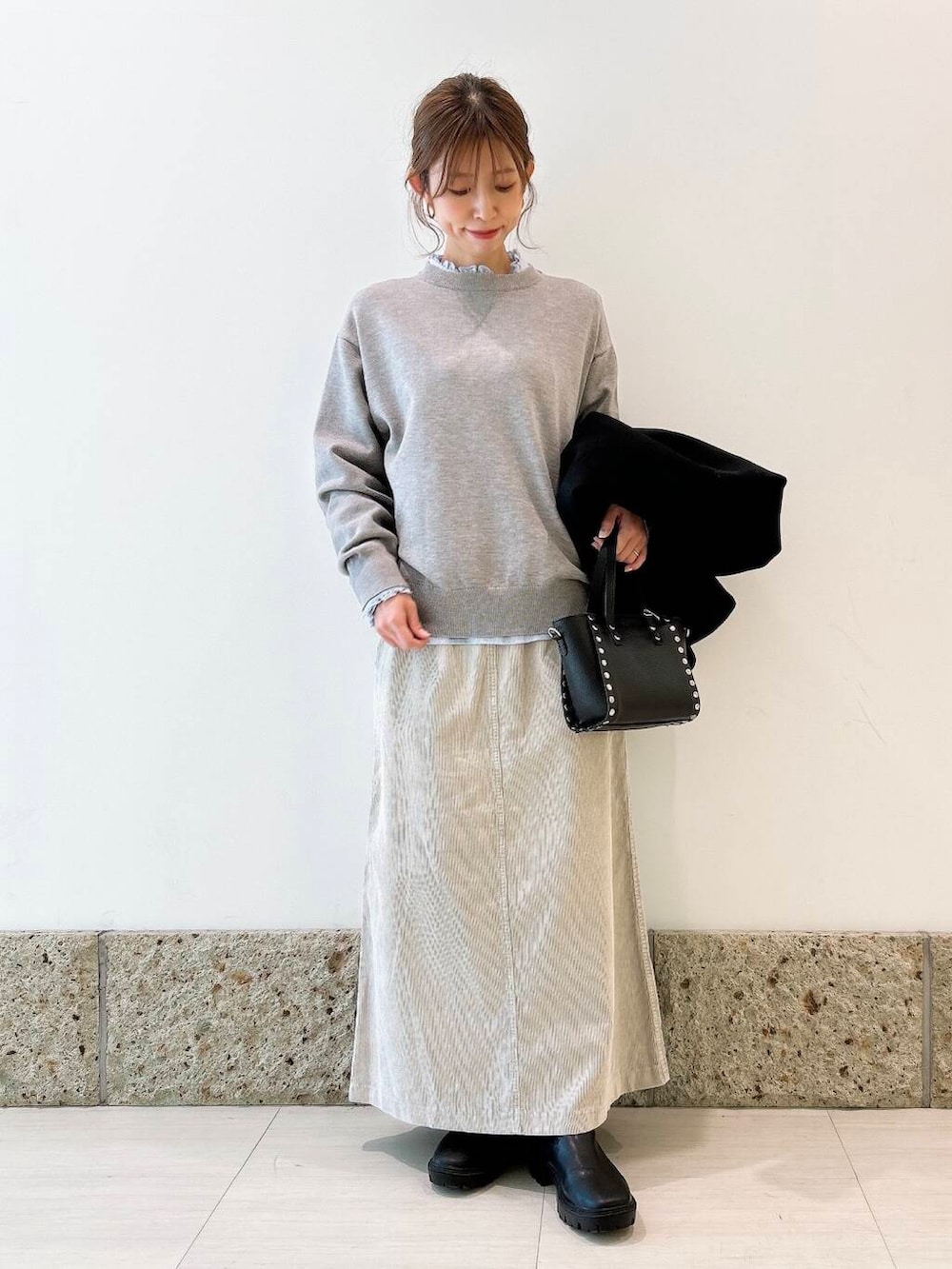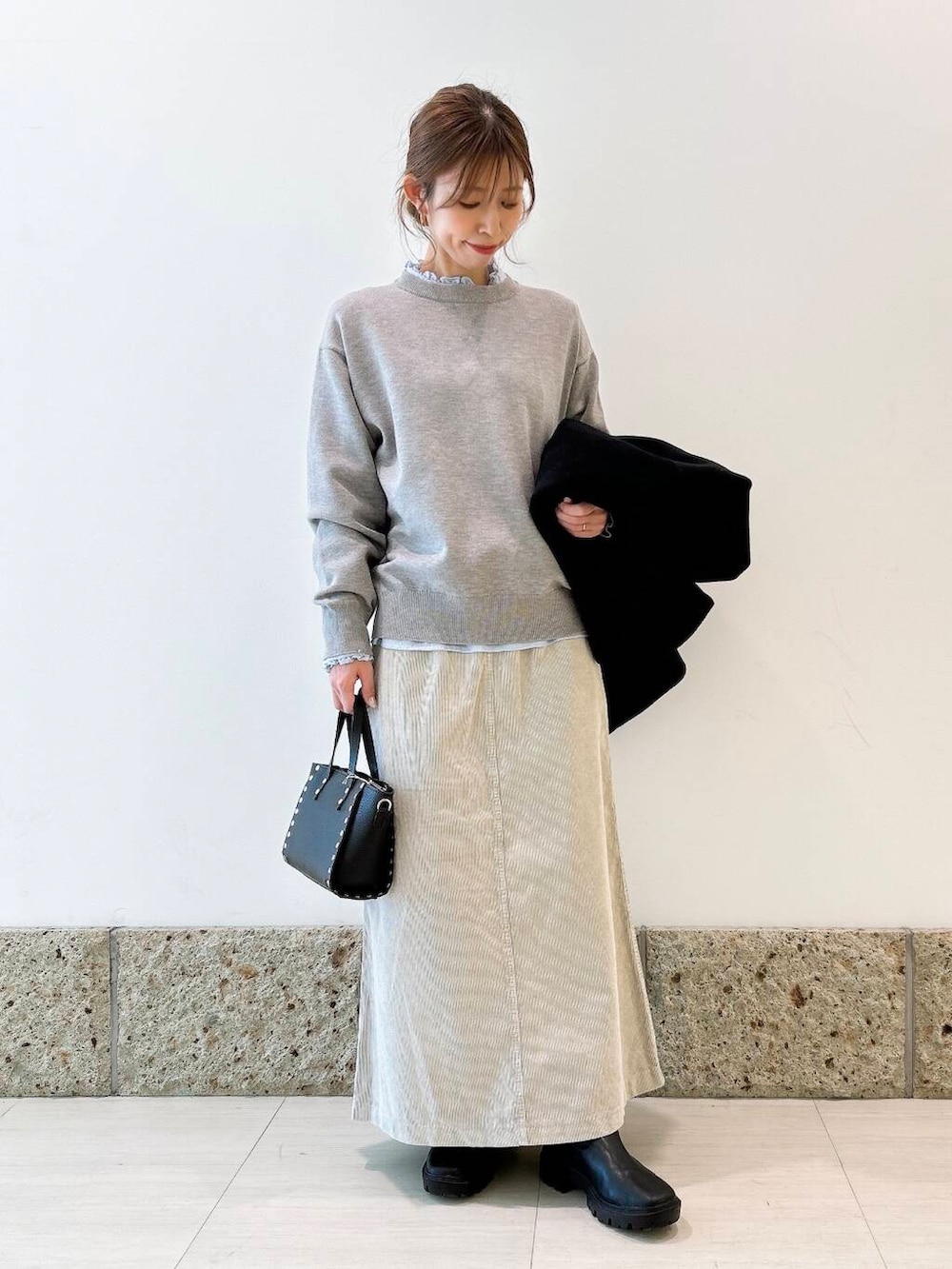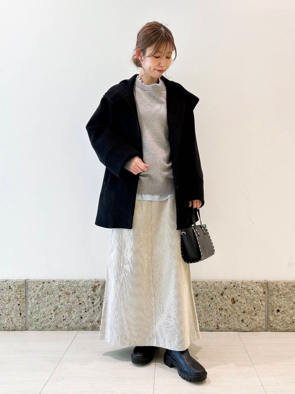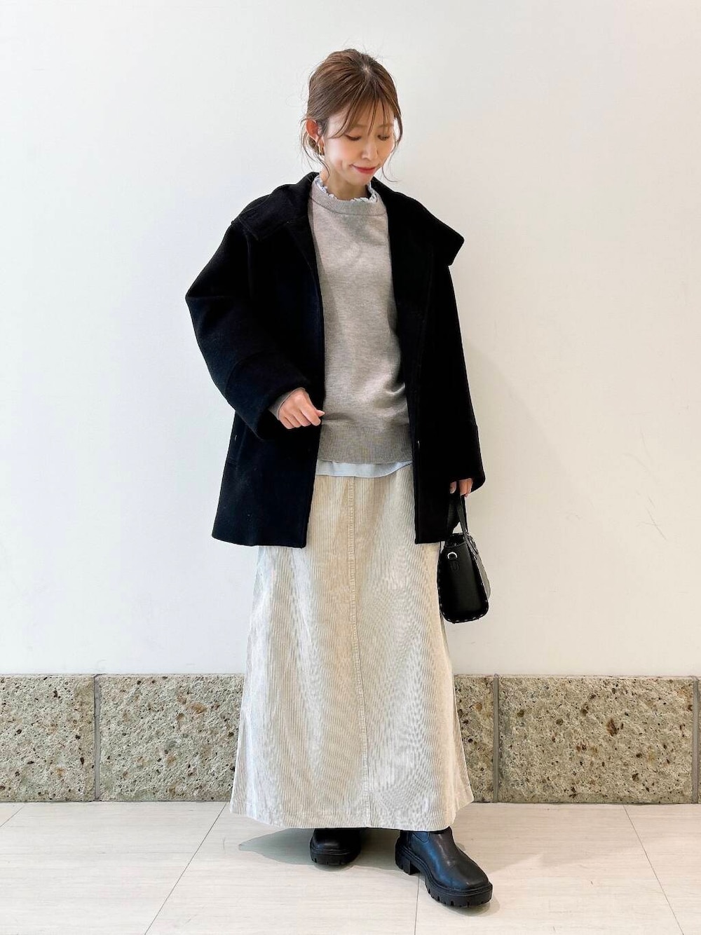 ボトムにはコーデュロイの質感が可愛いスカートを。