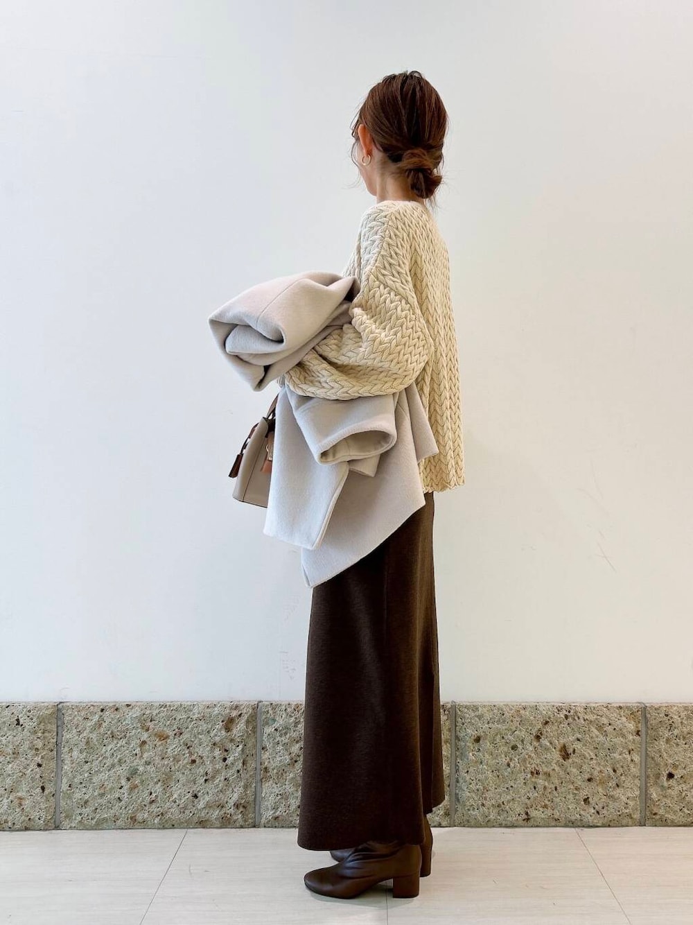 アウターはピンクみのあるECRUカラーがとっても可愛く