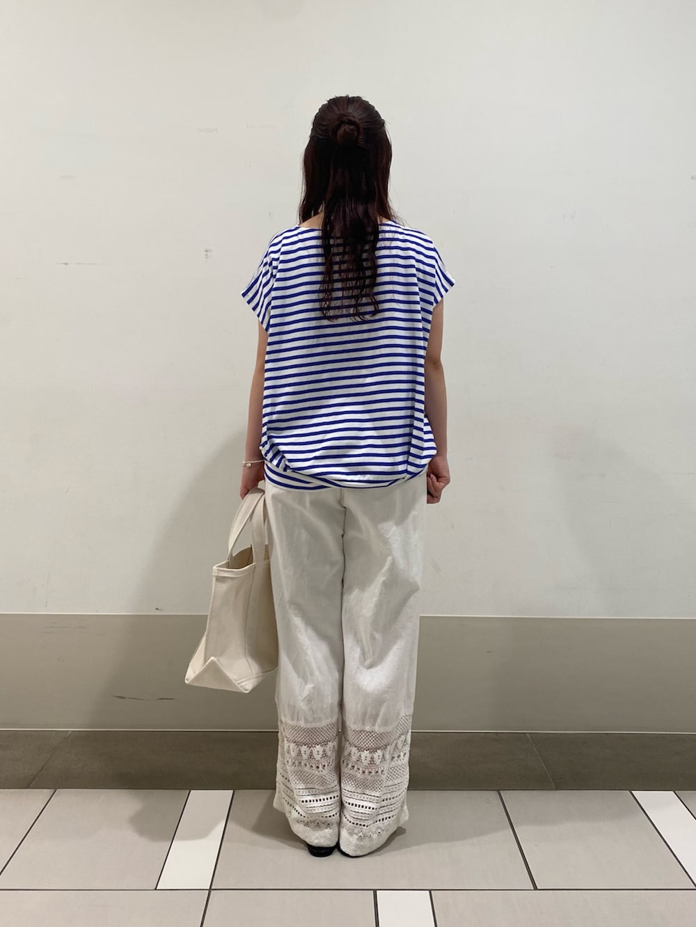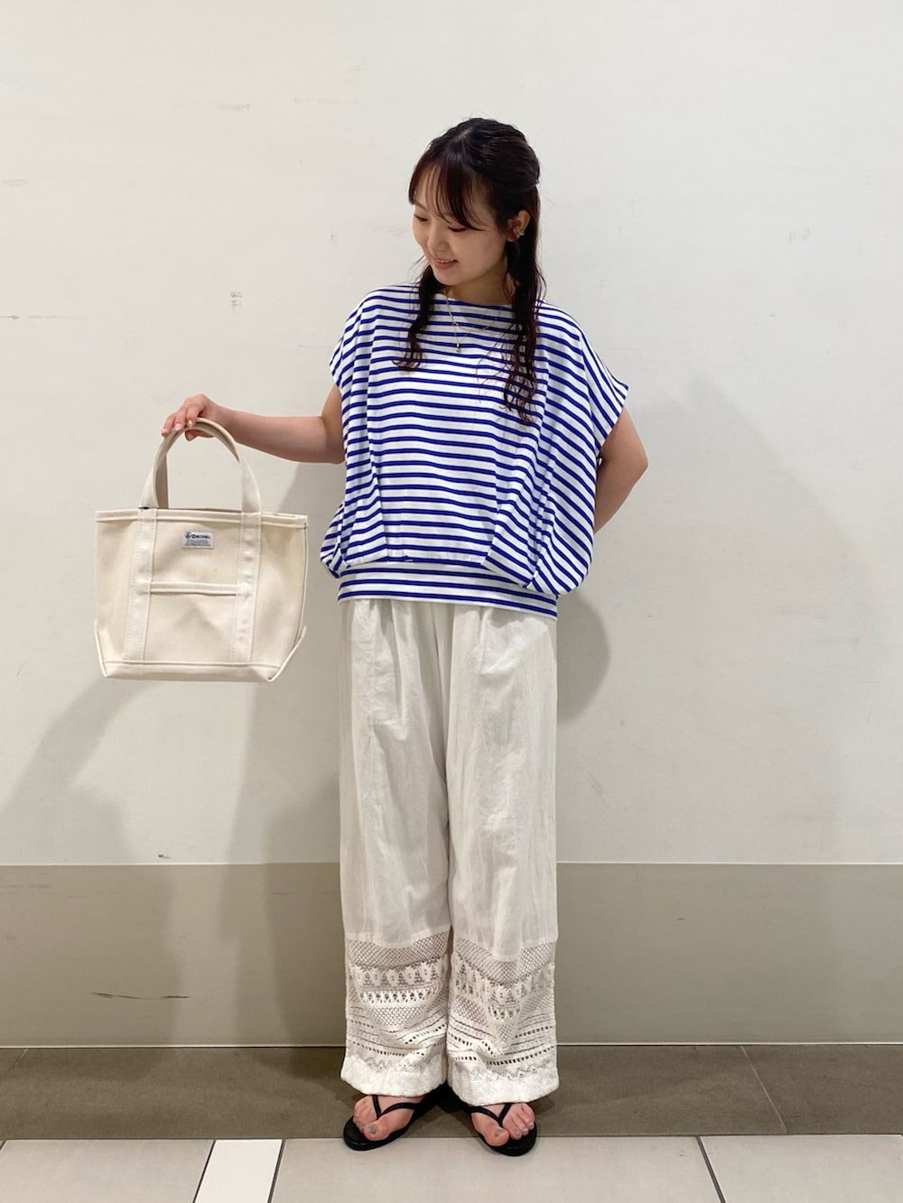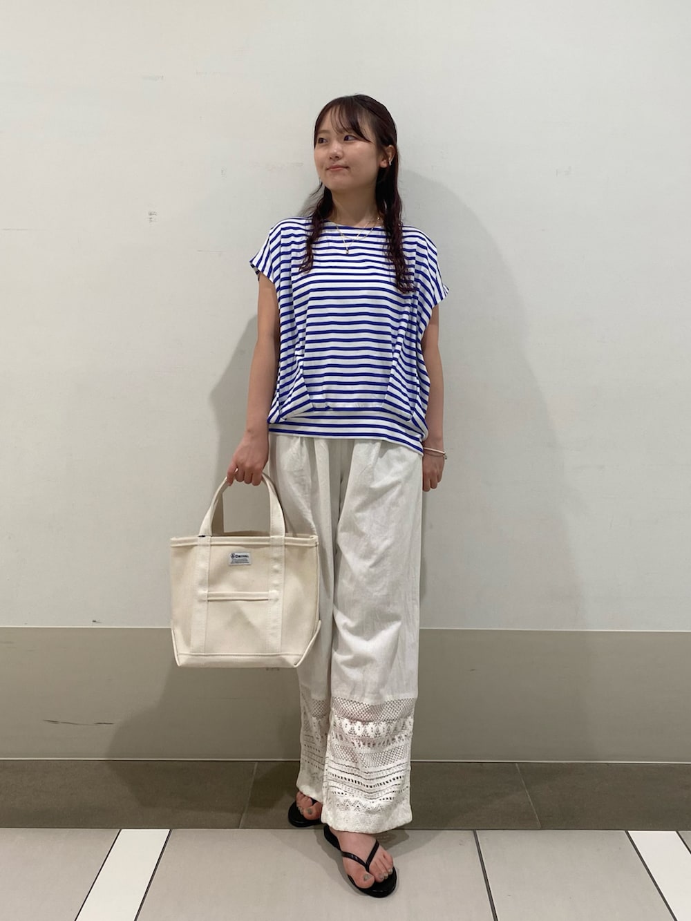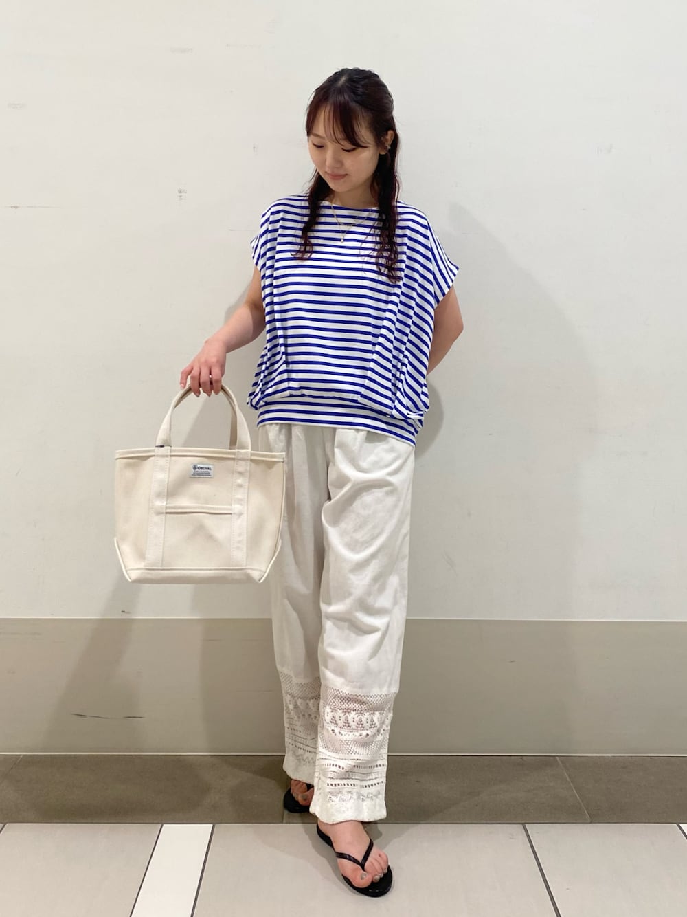青と白でまとめた爽やかコーデです🌿見た目も涼しく着ても涼しいので夏にぴったり✨