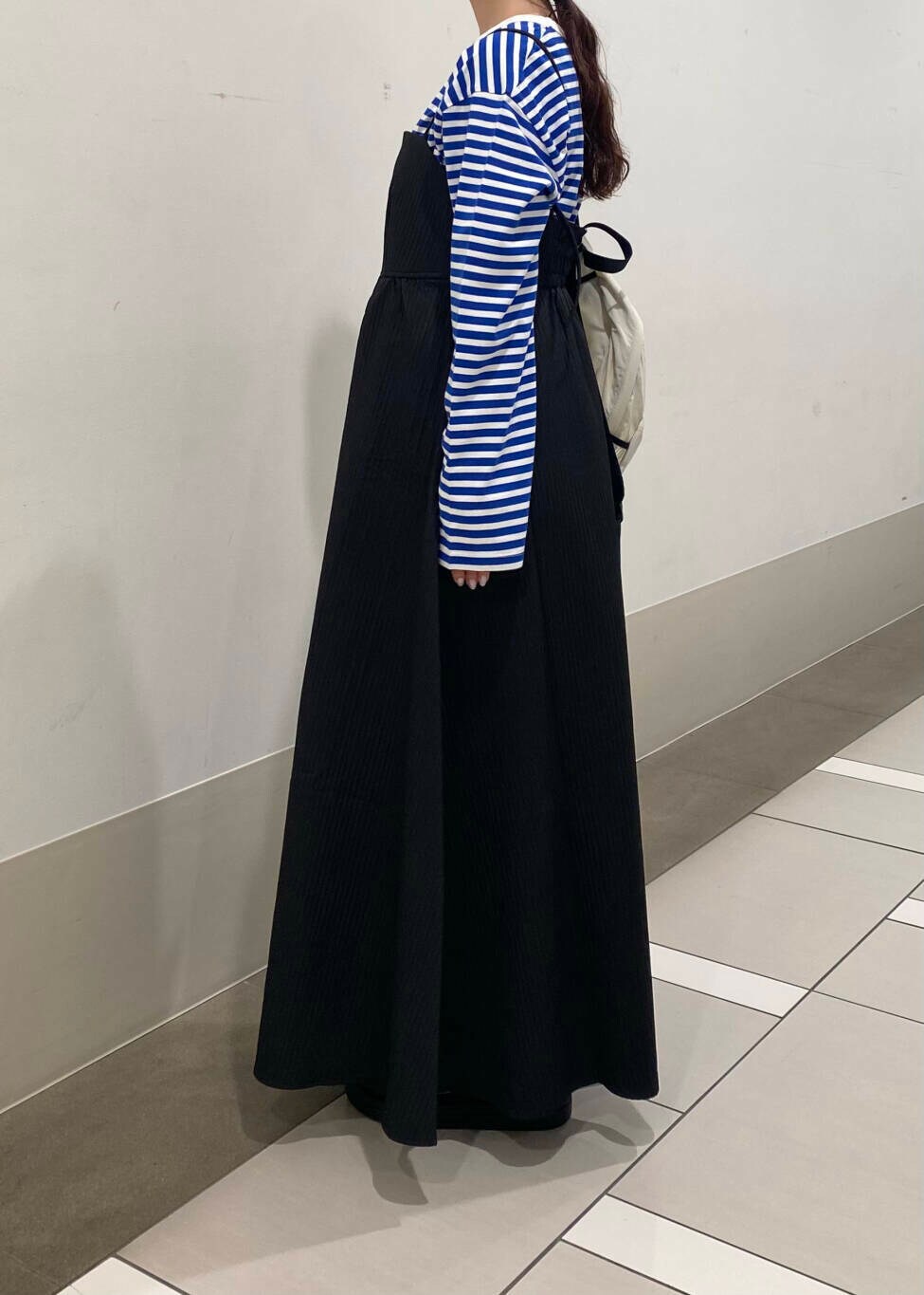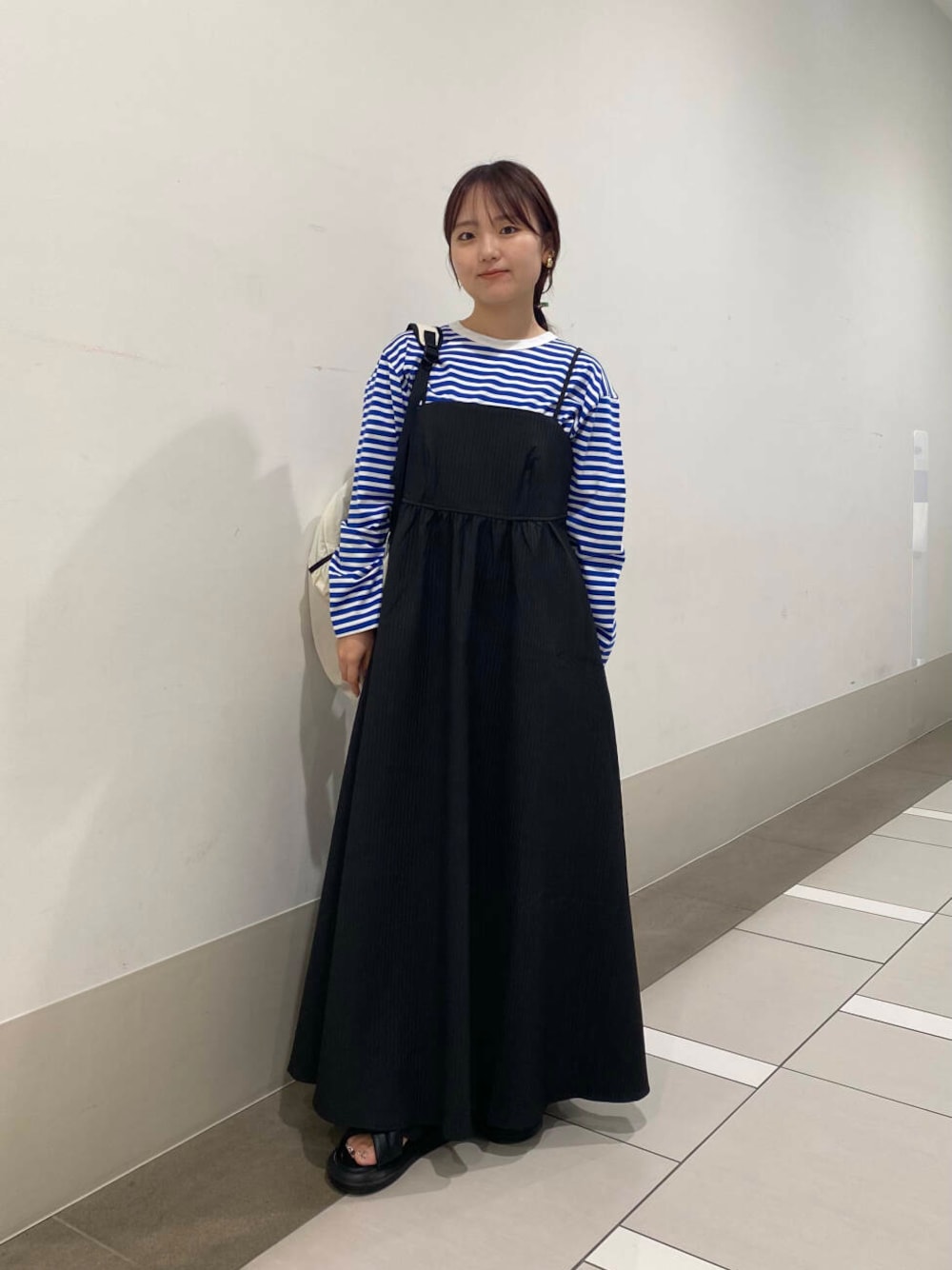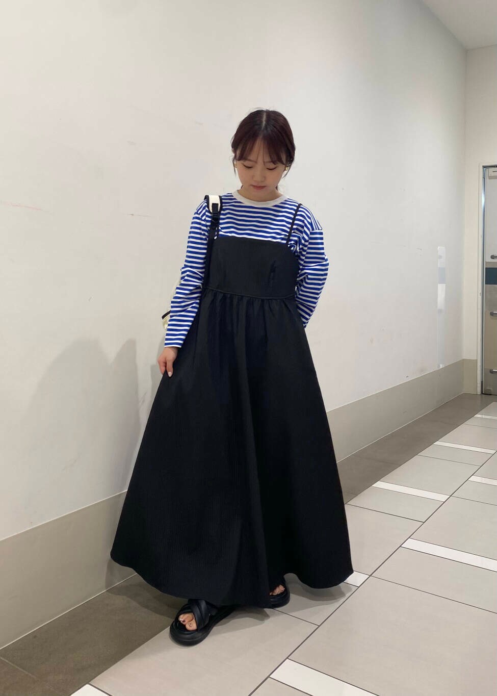 ふんわり感があるワンピースですが、青のボーダーと合わせることで、甘さとカジュアルのバランスがとっても可愛いです!!✨