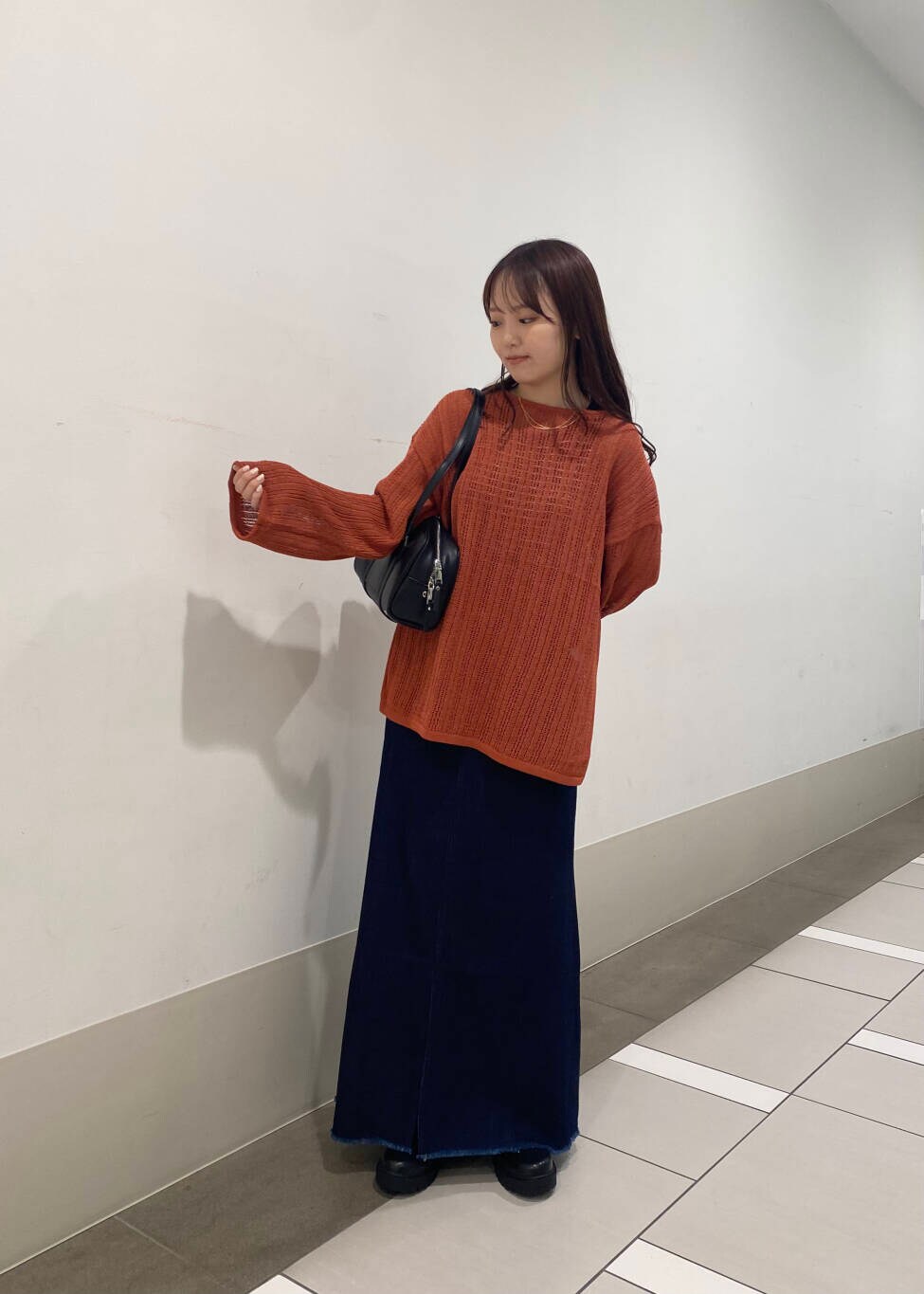 デニムスカートに入っているスリットで女性らしさをプラスしました〜