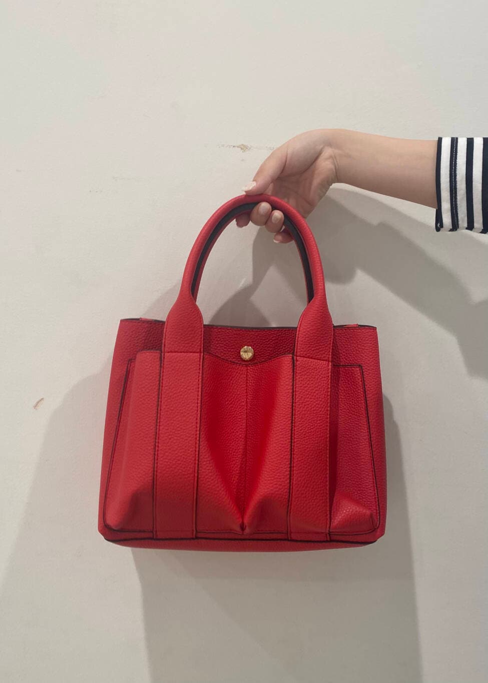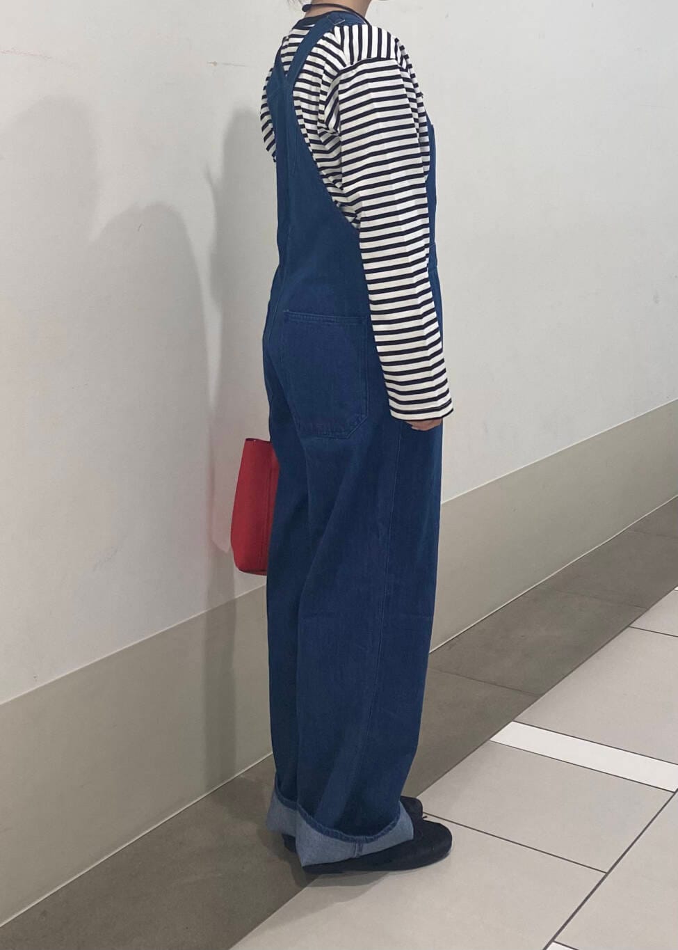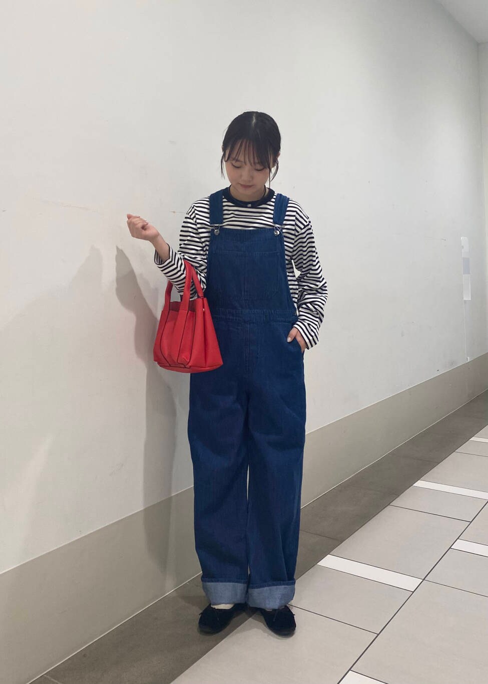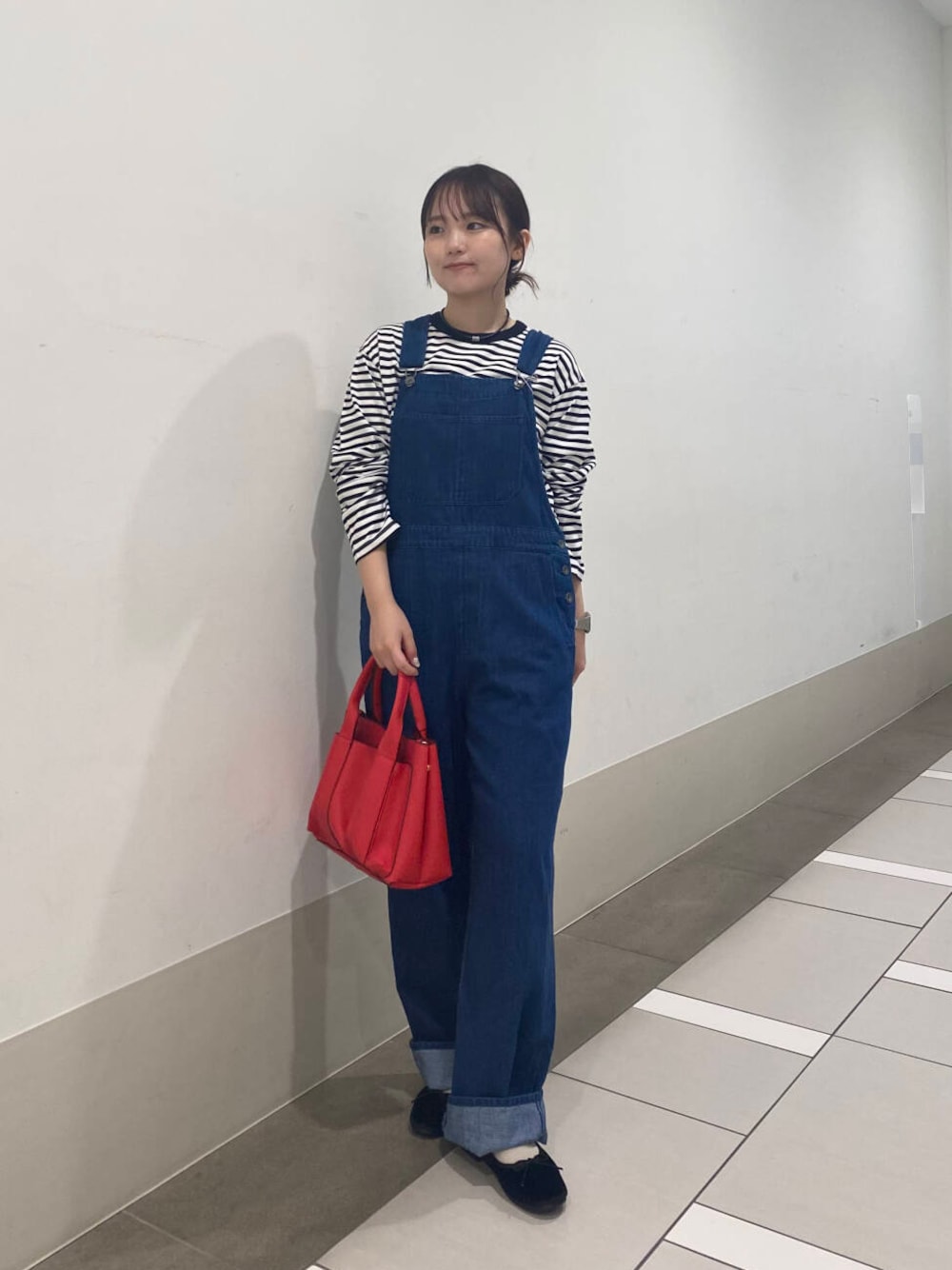 差し色に赤を入れて、パッと目を引くコーディネートにしました〜