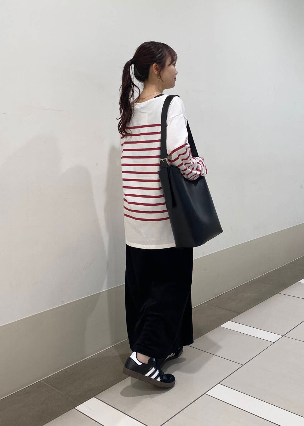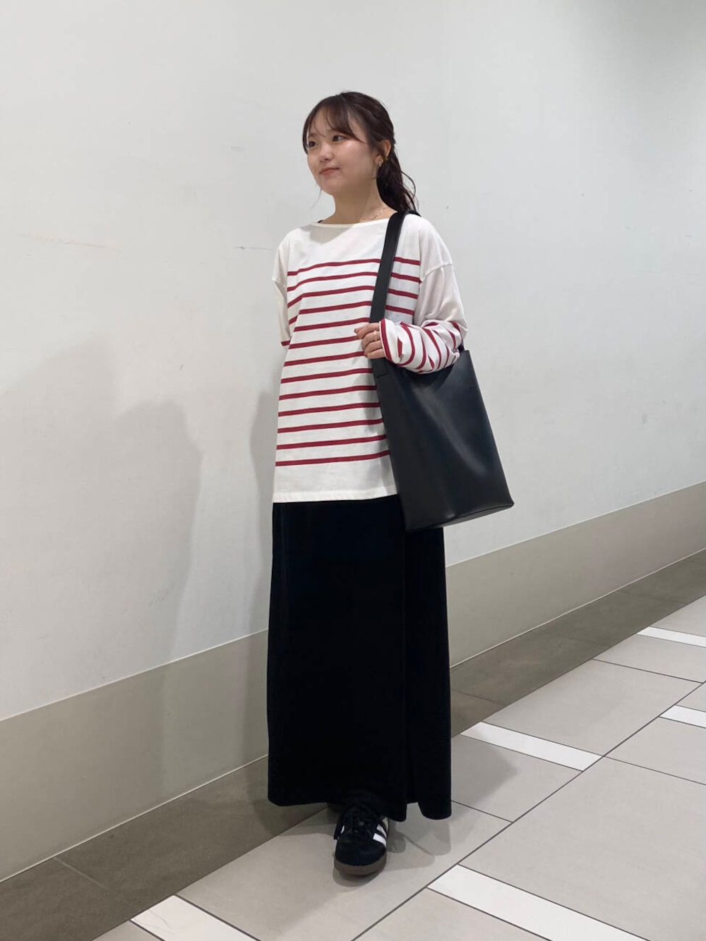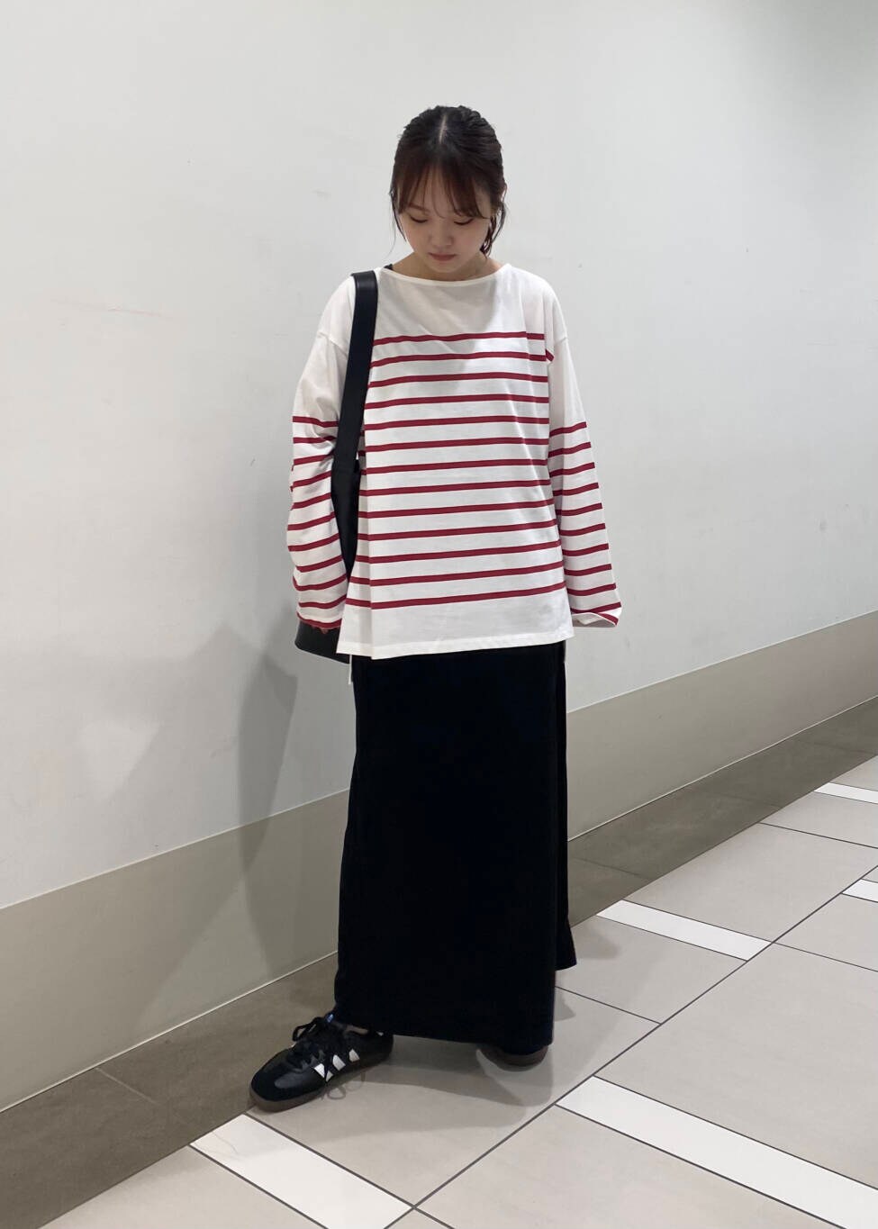 ゆったりとしたシルエットなので、スカートはストレートにしてすっきりと◎