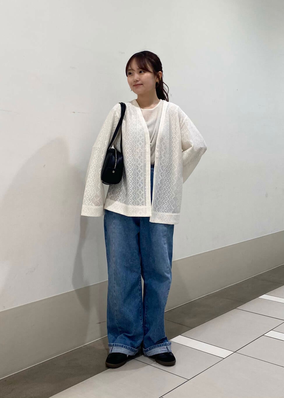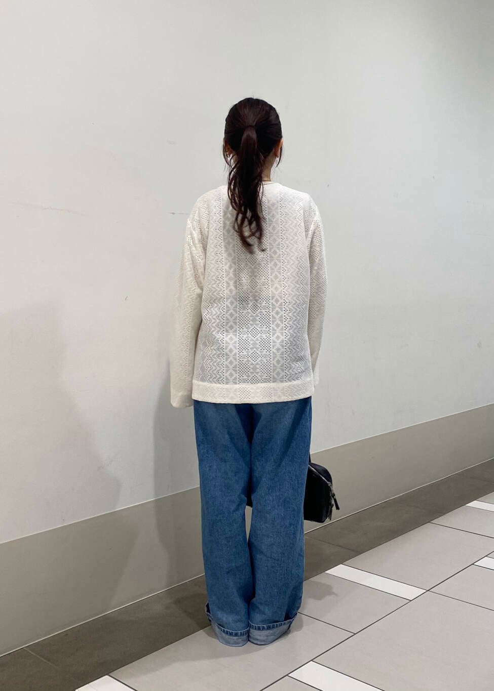 綺麗目なアイテムなので、デニムも合わせてカジュアルさをプラスしてみました~