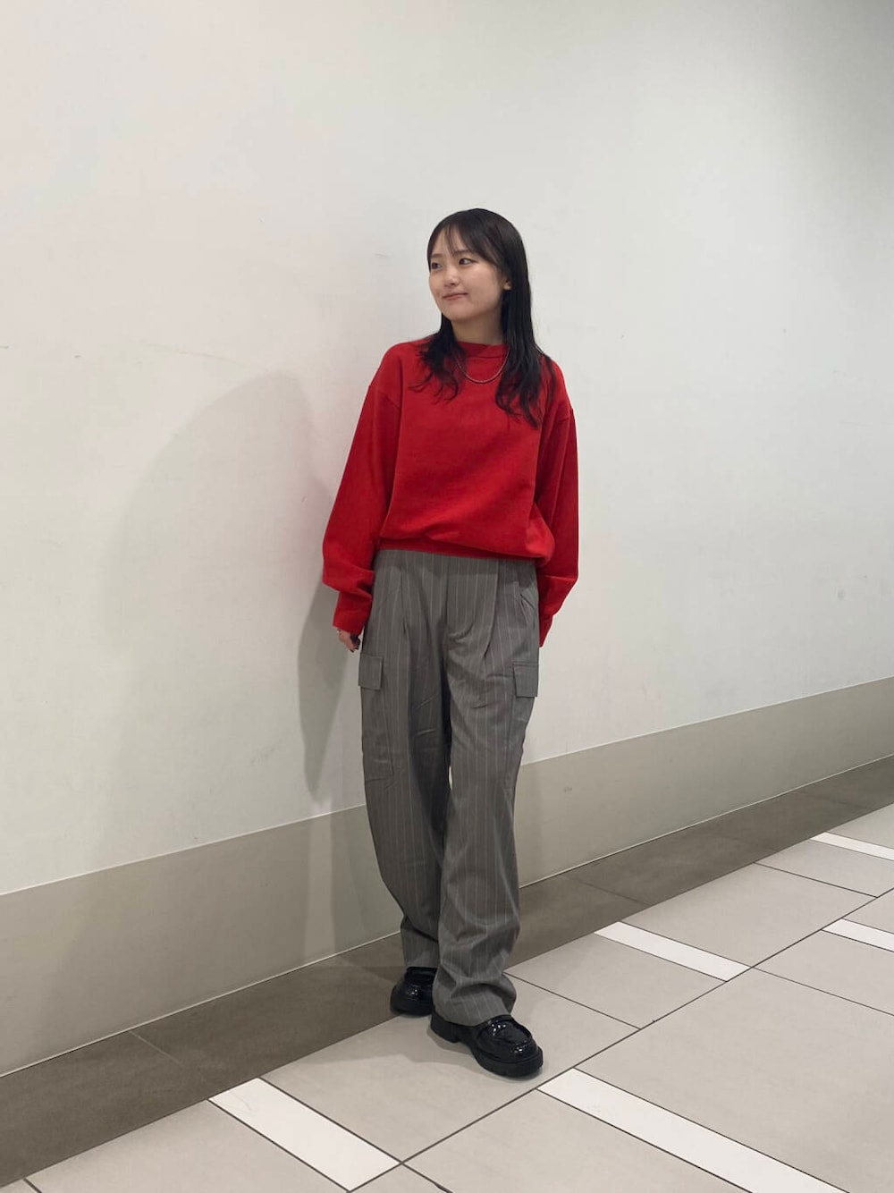 赤が可愛い200日ニットコーデです🧶