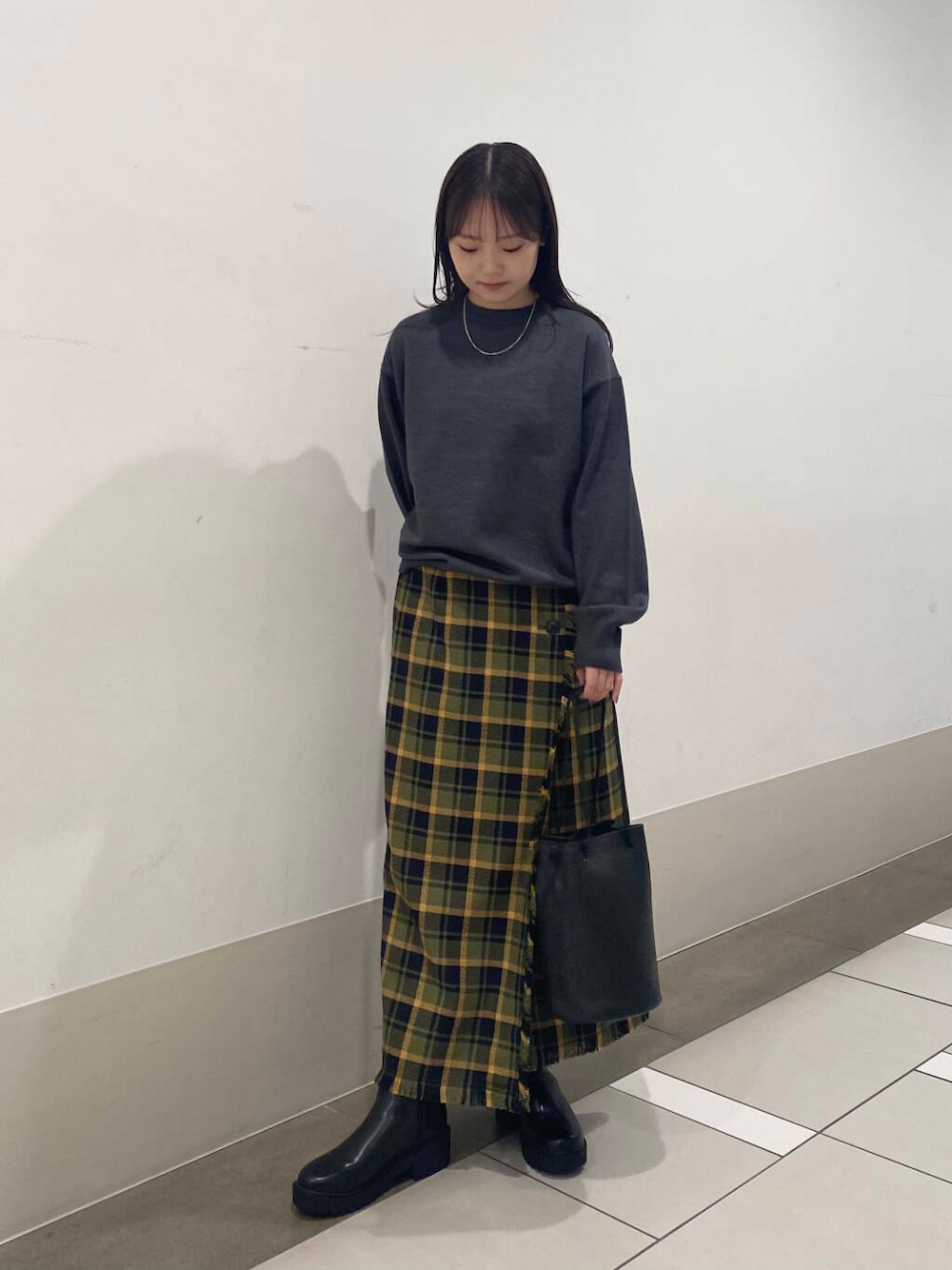 大きめのチェック柄がコーディネートをパッと華やかにしてくれます✨