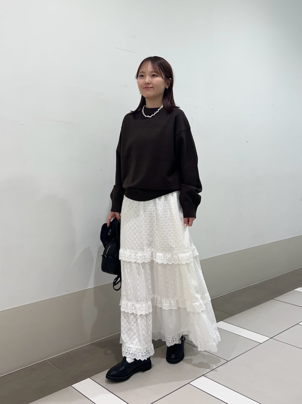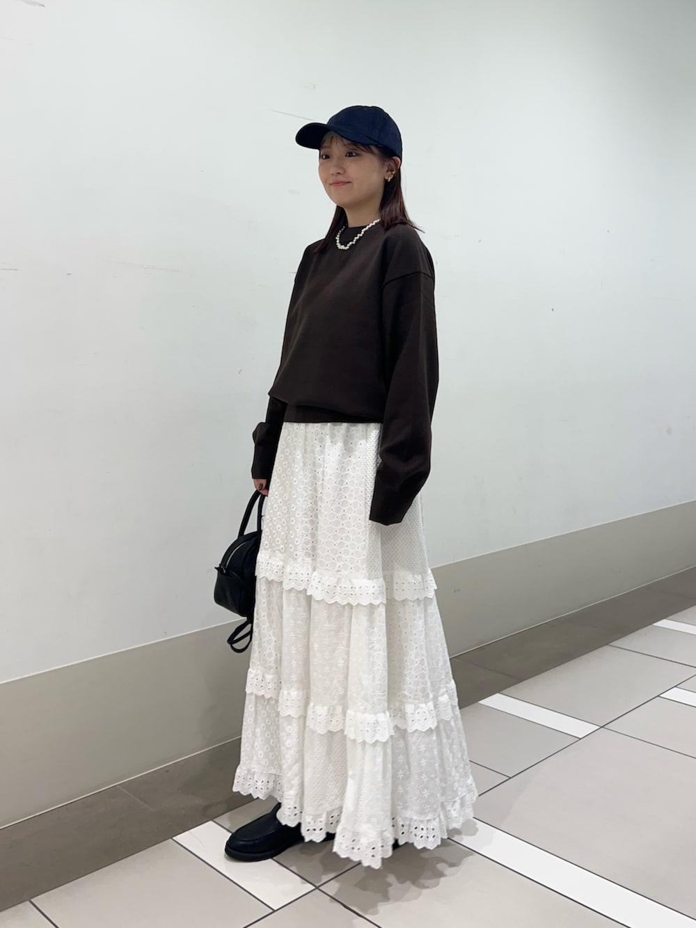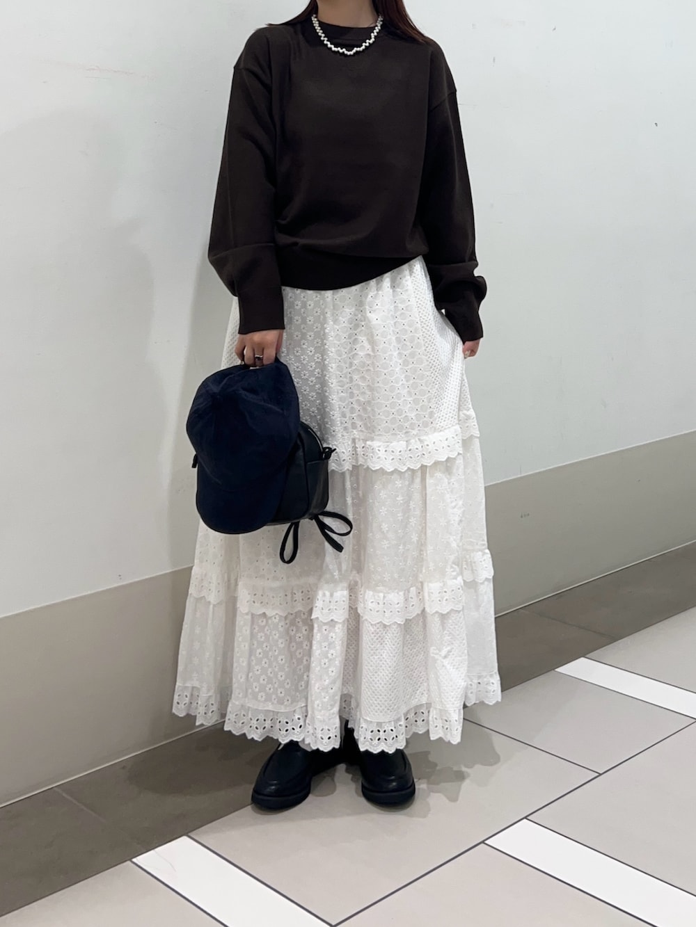 ガーリーなスカートと合わせて、大人可愛いコーデに♪