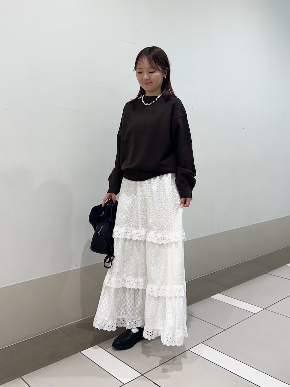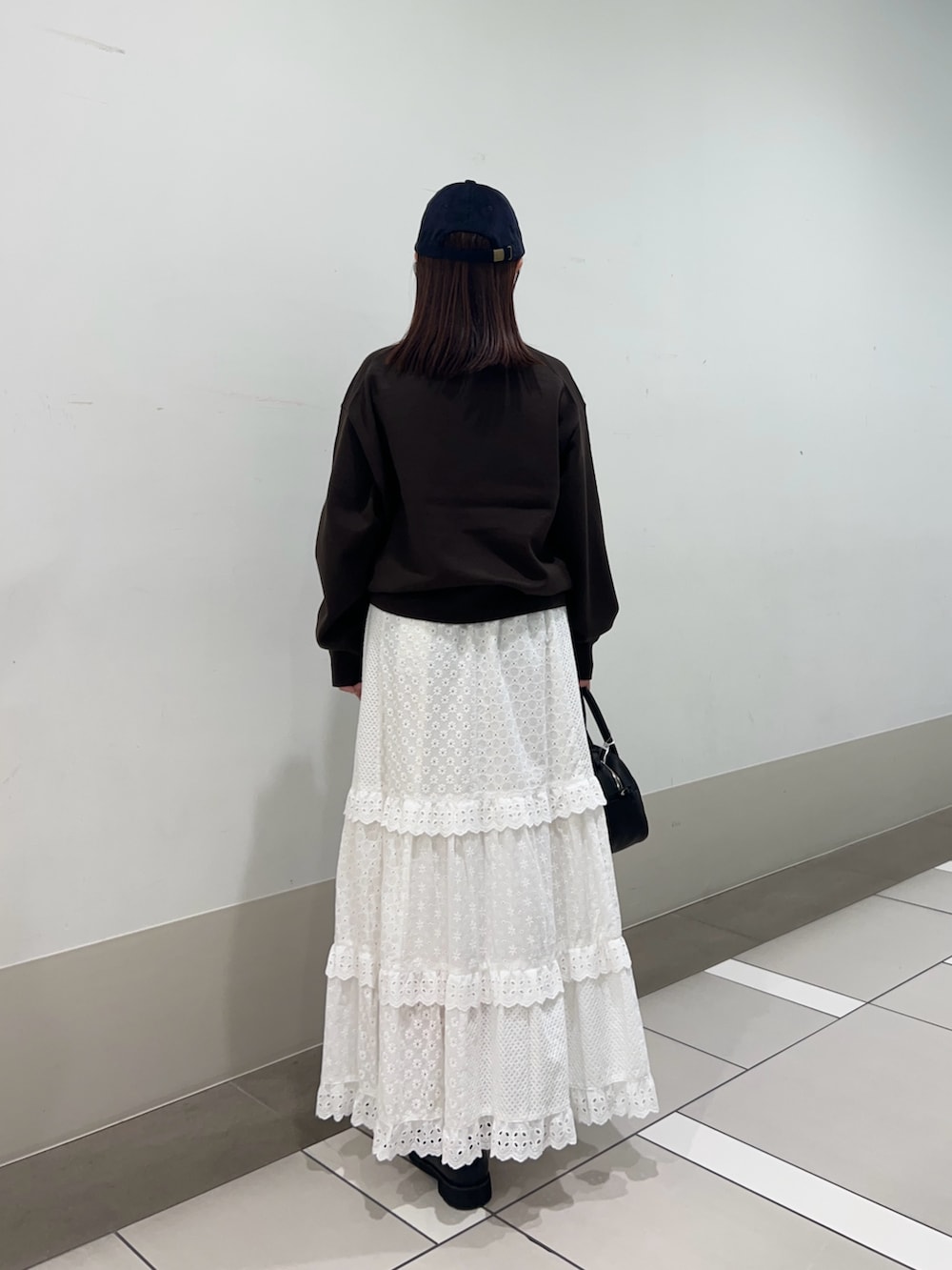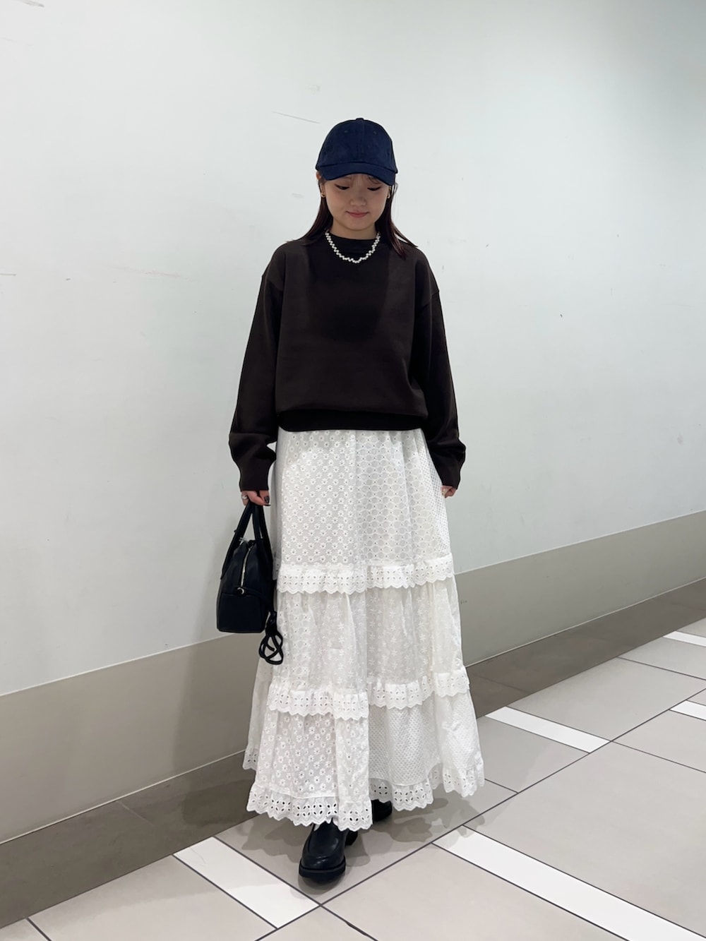 ガーリーなスカートと合わせて、大人可愛いコーデに♪