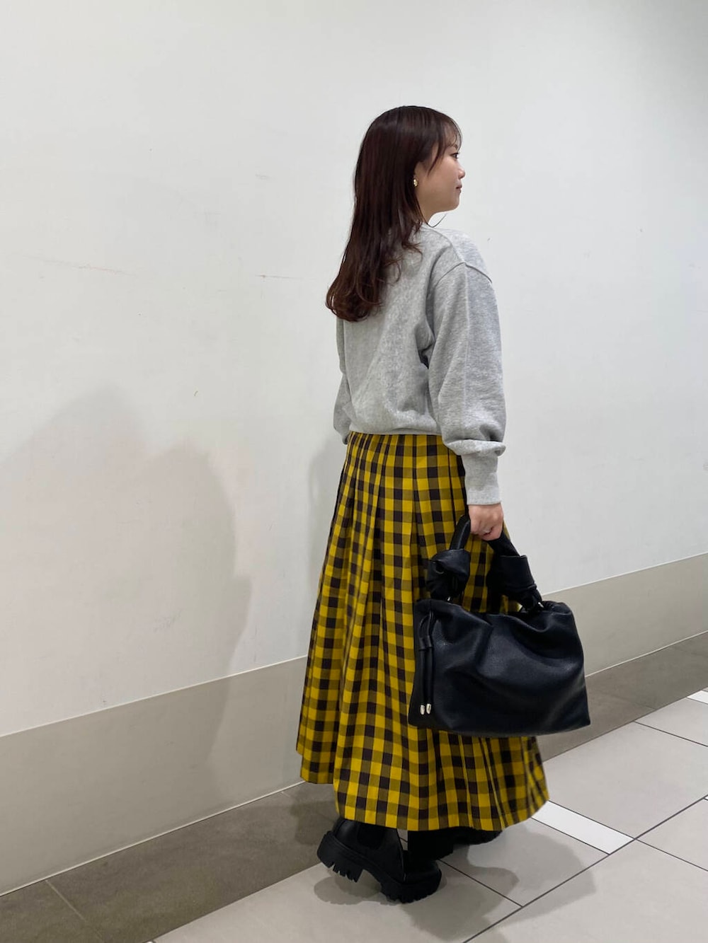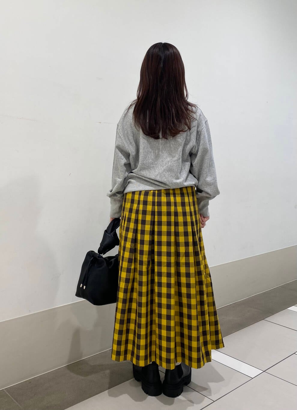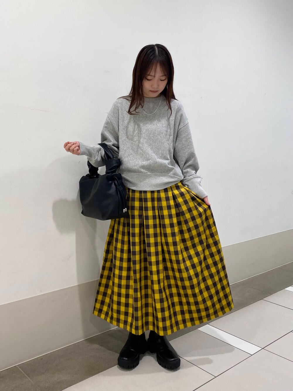 張り感があるというよりかは、ふわっと空気感のある生地なので、トップスをトレーナーにしてカジュアルダウンさせました🙆🏻♀️