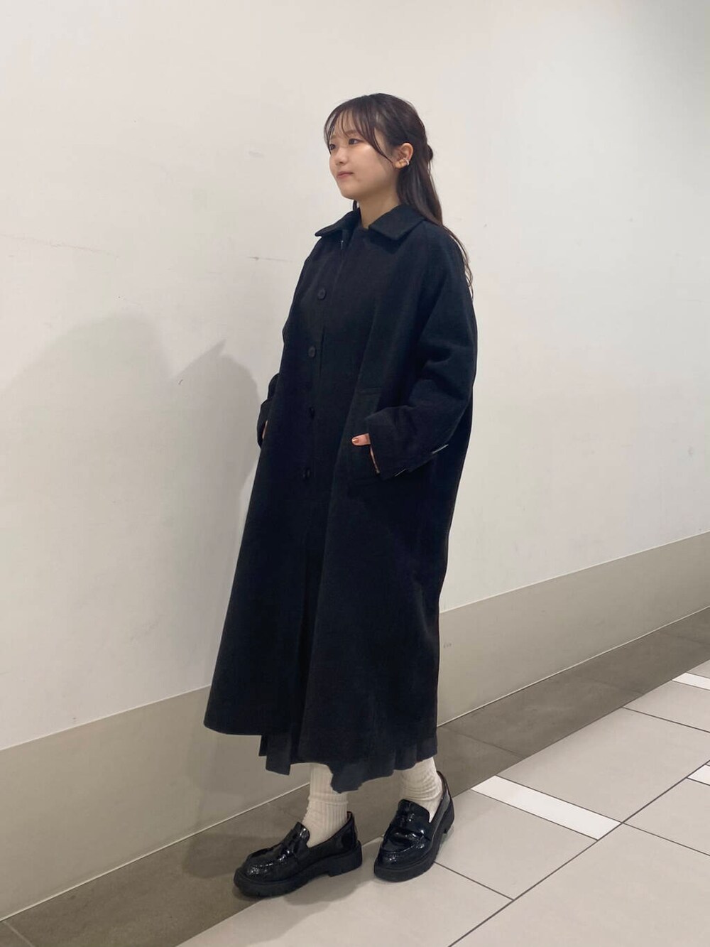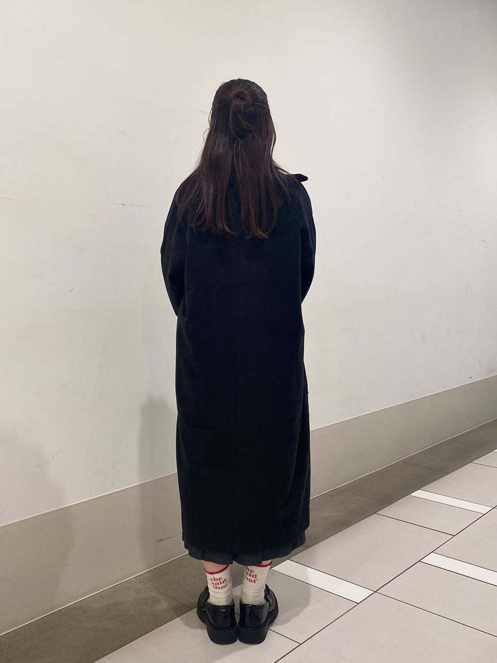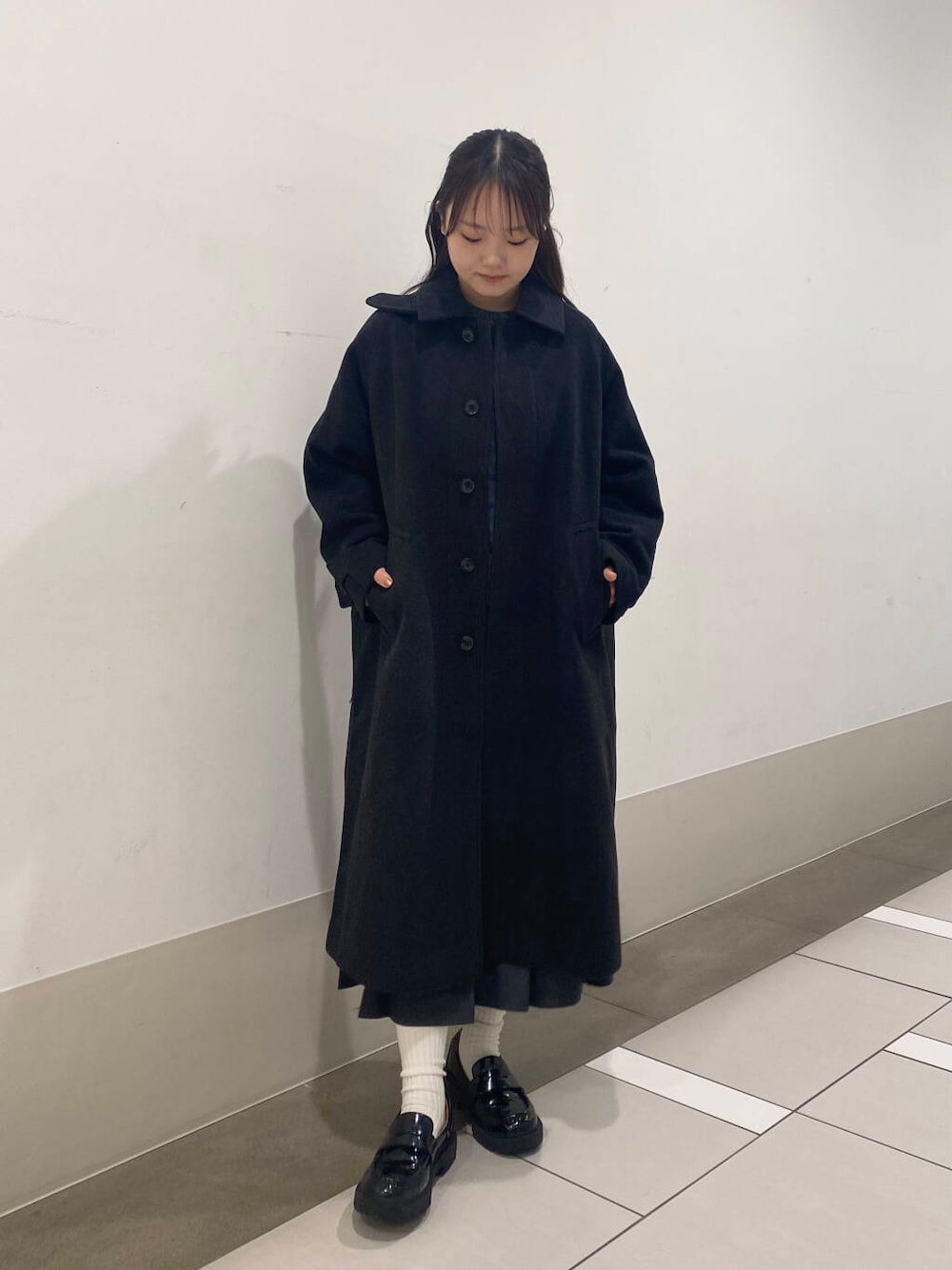 153cmの私でSサイズを着用をしていますが、ふくらはぎくらいの長さになり、スカートが下からチラッと見える丈です。長すぎないので足元が重くならないので、低身長の方におすすめのコートです!✨
