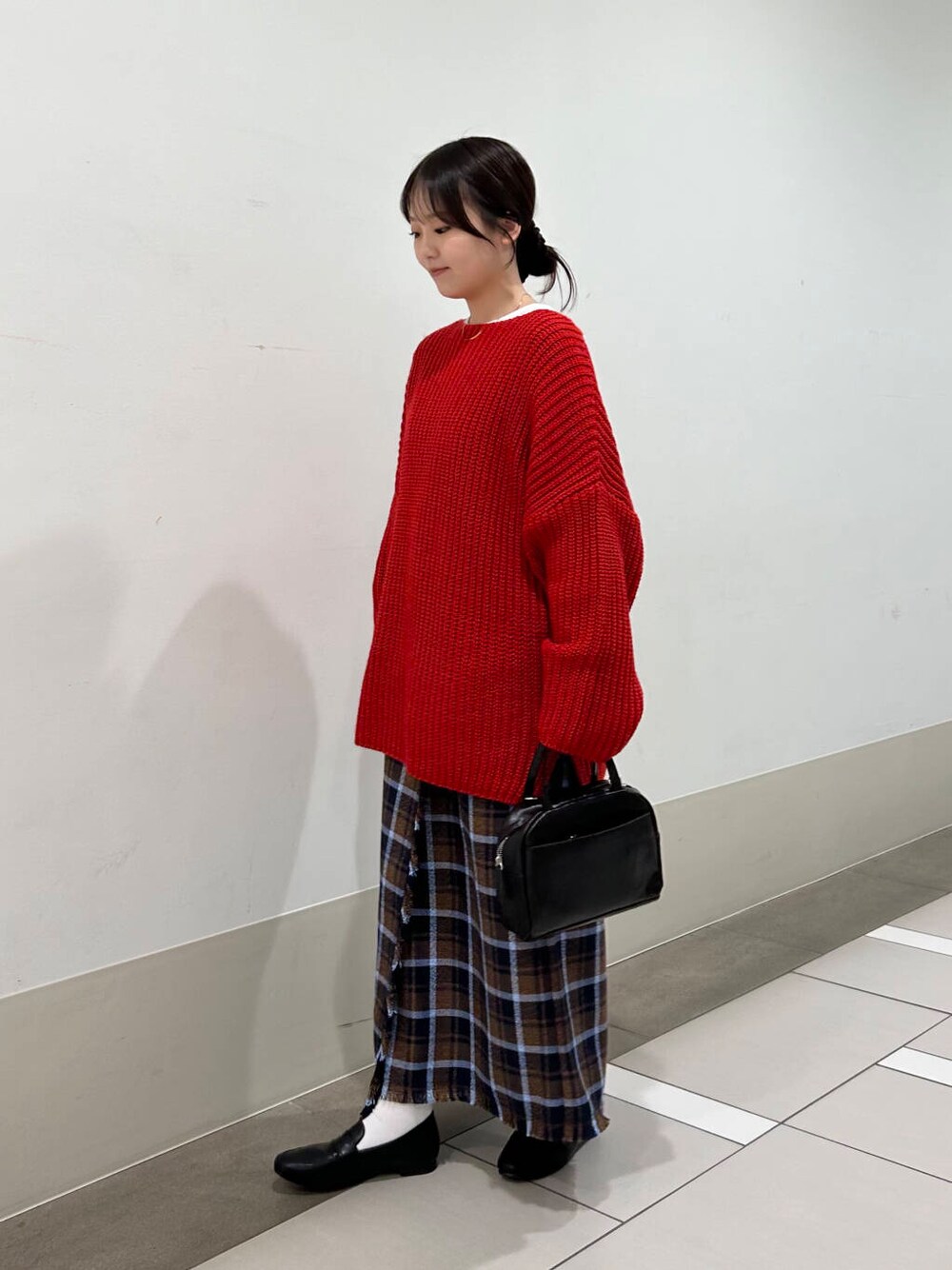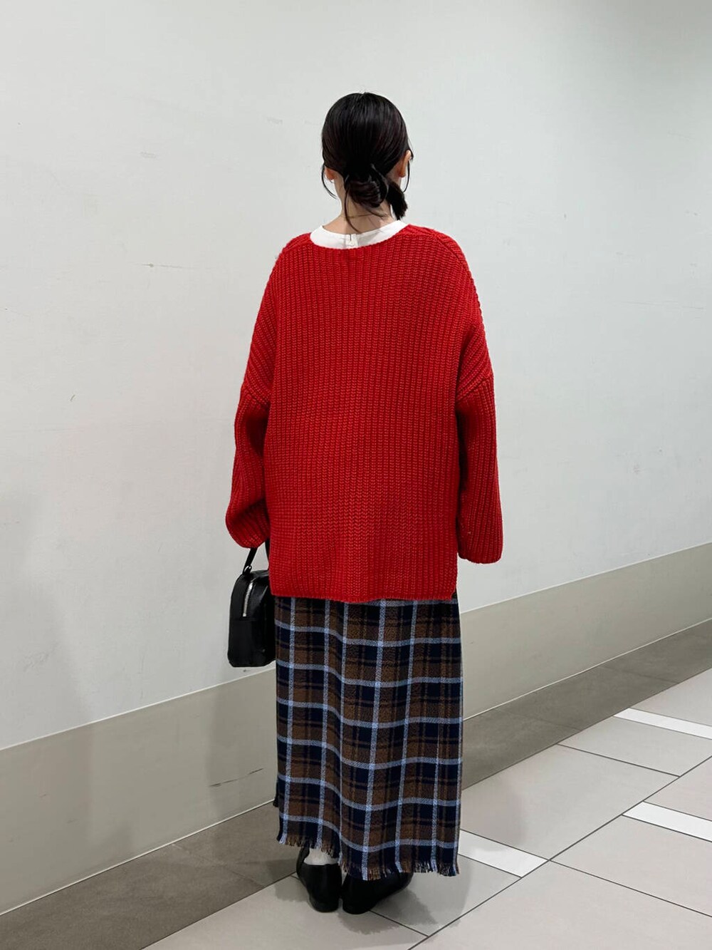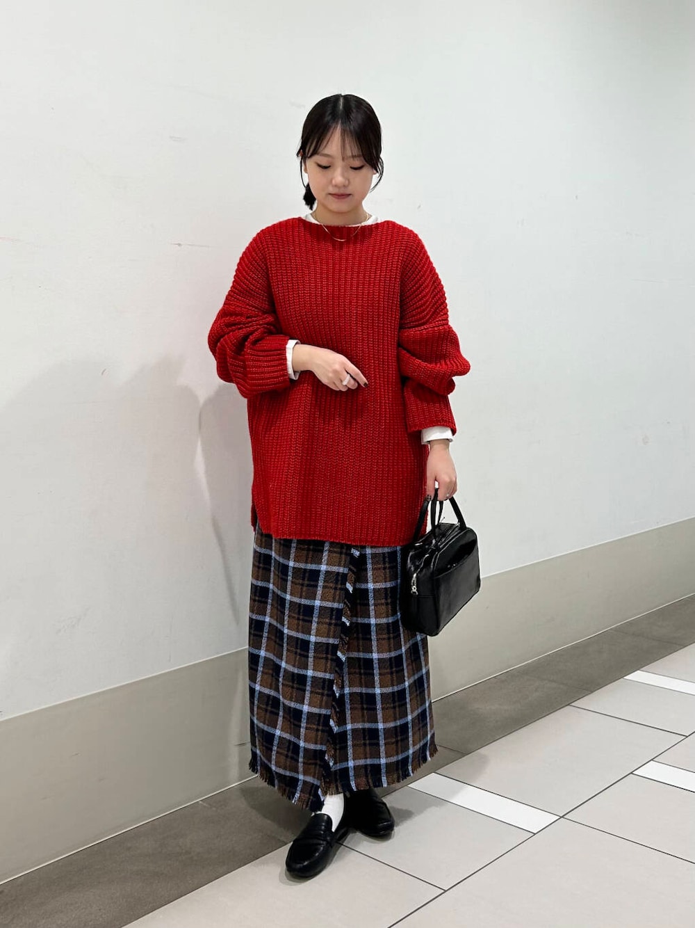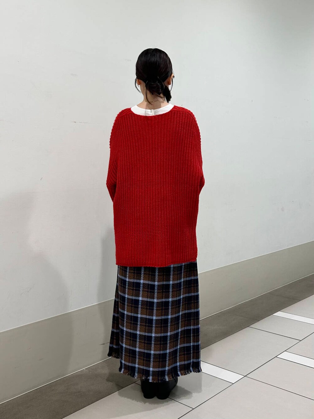 赤のニットは、全体の雰囲気がパッと明るくなるので、暗くなりがちな冬のコーデにオススメなアイテムです〜