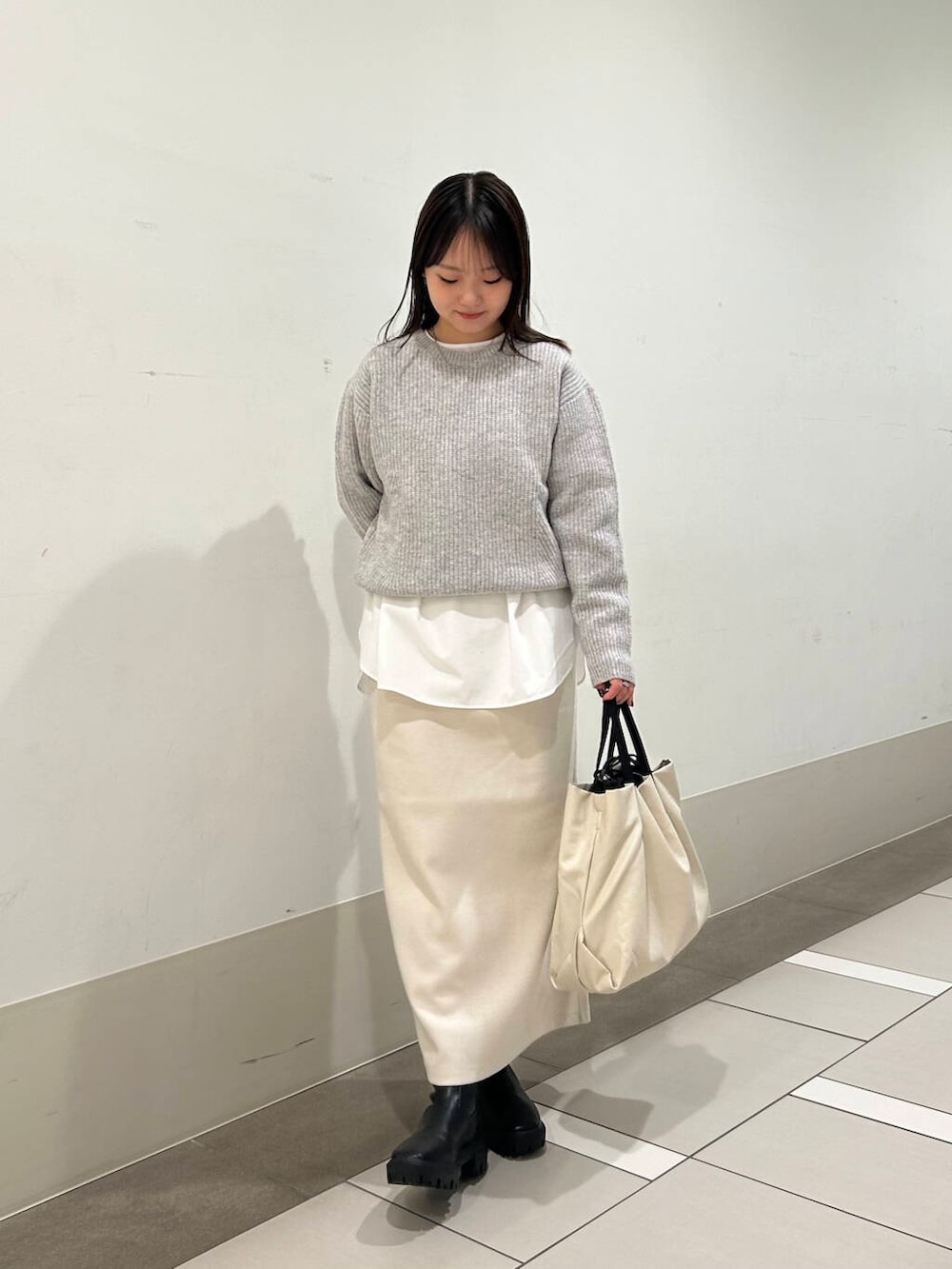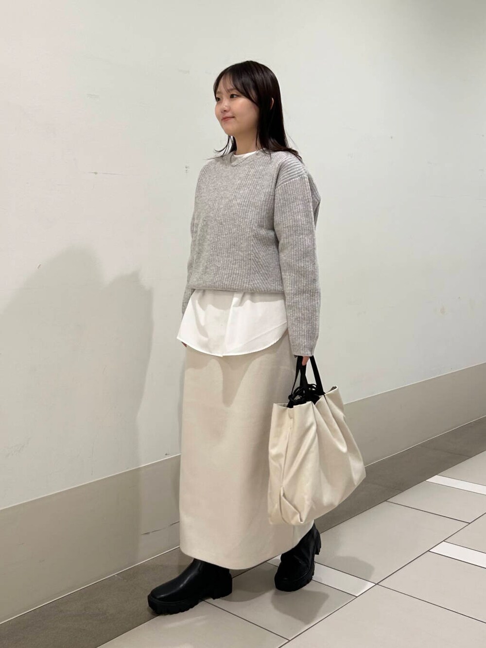 スカートのスリットは深すぎず、足元に抜け感が出ます🙆🏻‍♀️