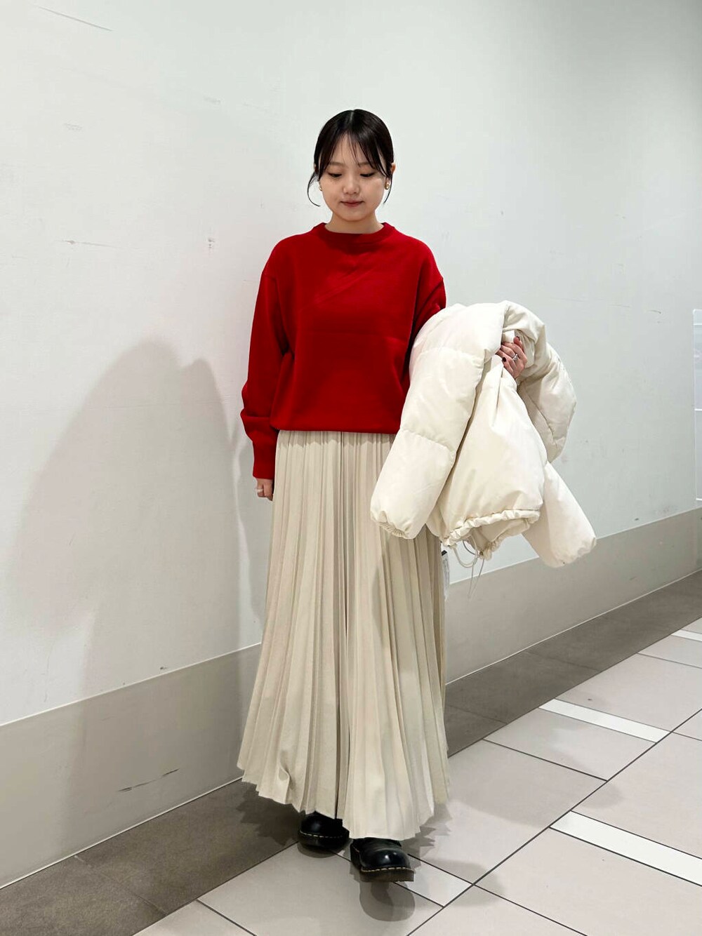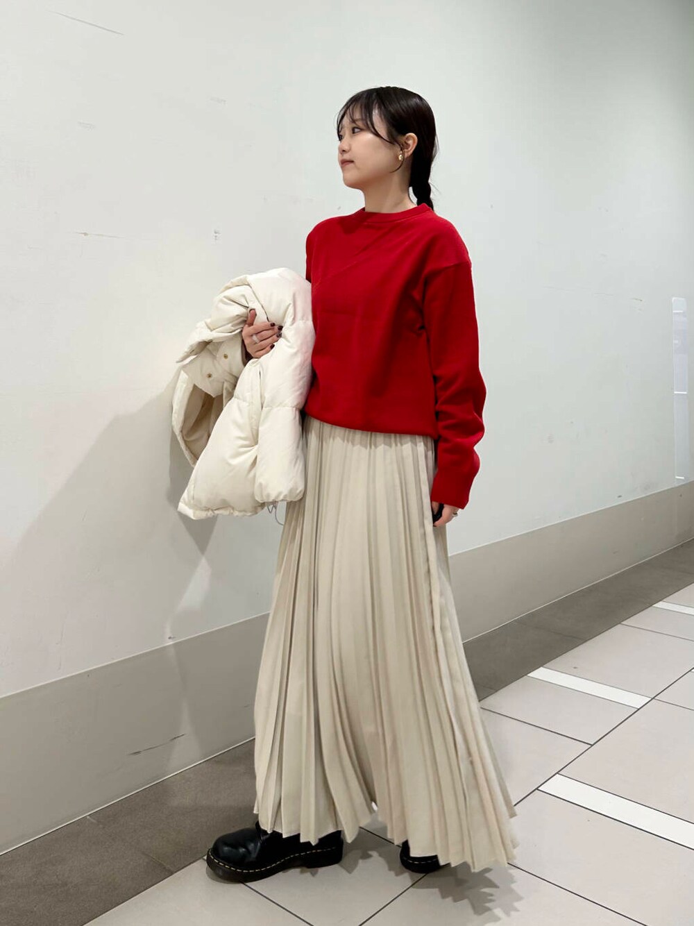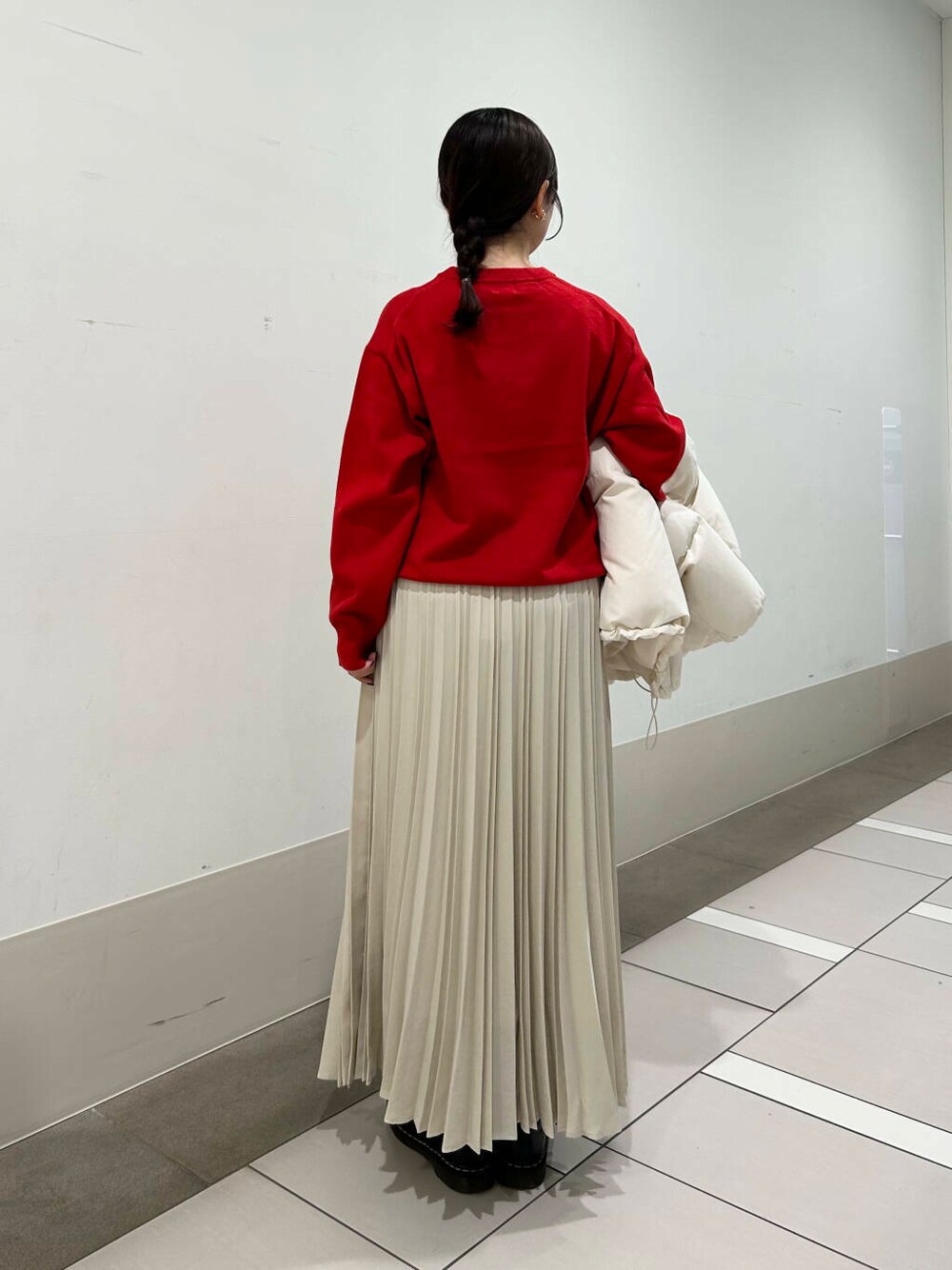 パッと目を引く赤色にニットは、シンプルなボトムスと合わせるだけでコーデの主役になります✨
