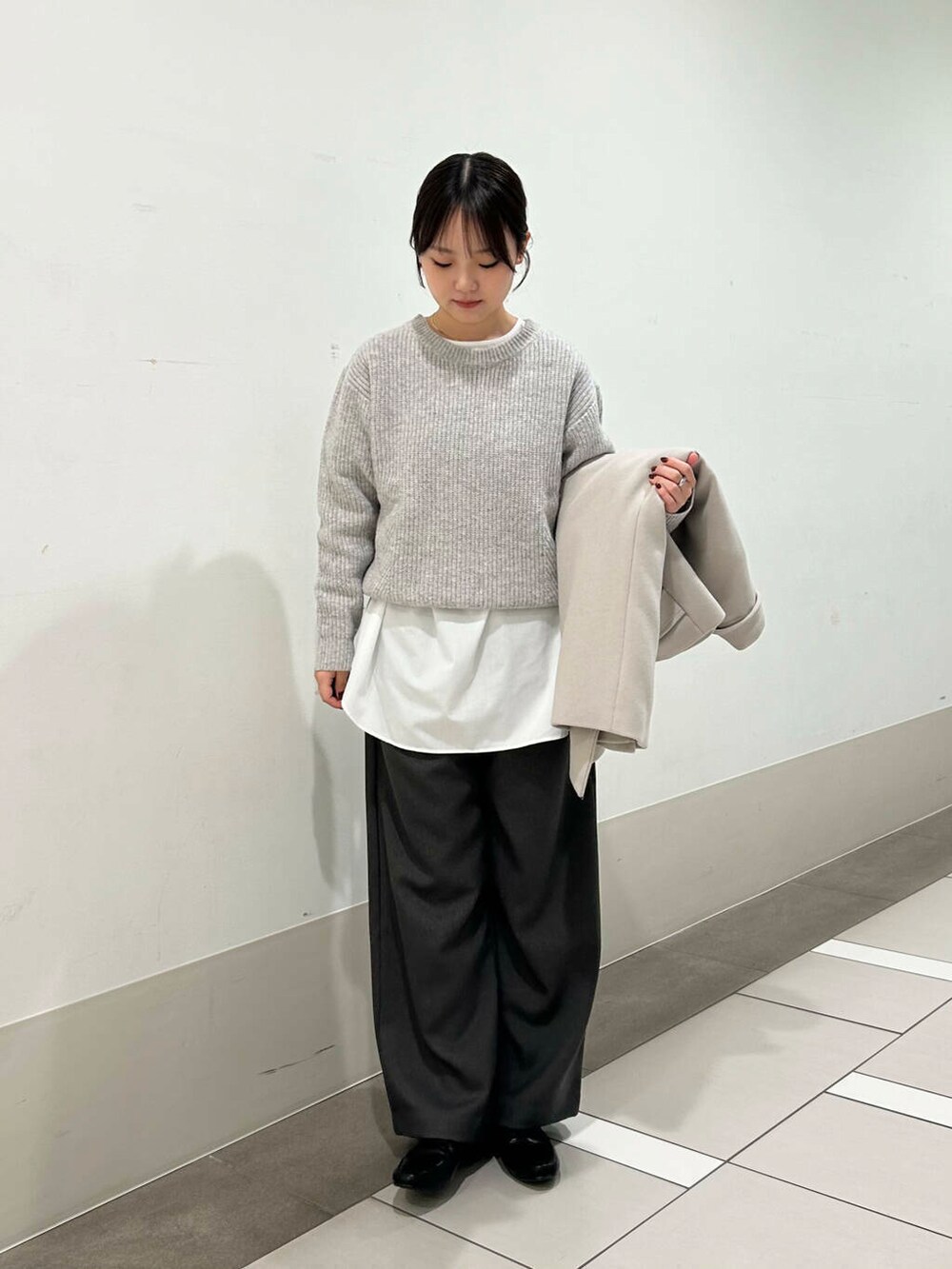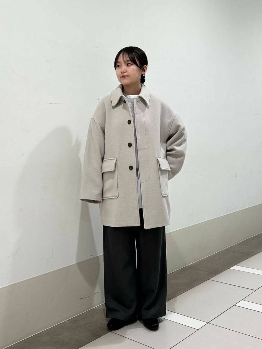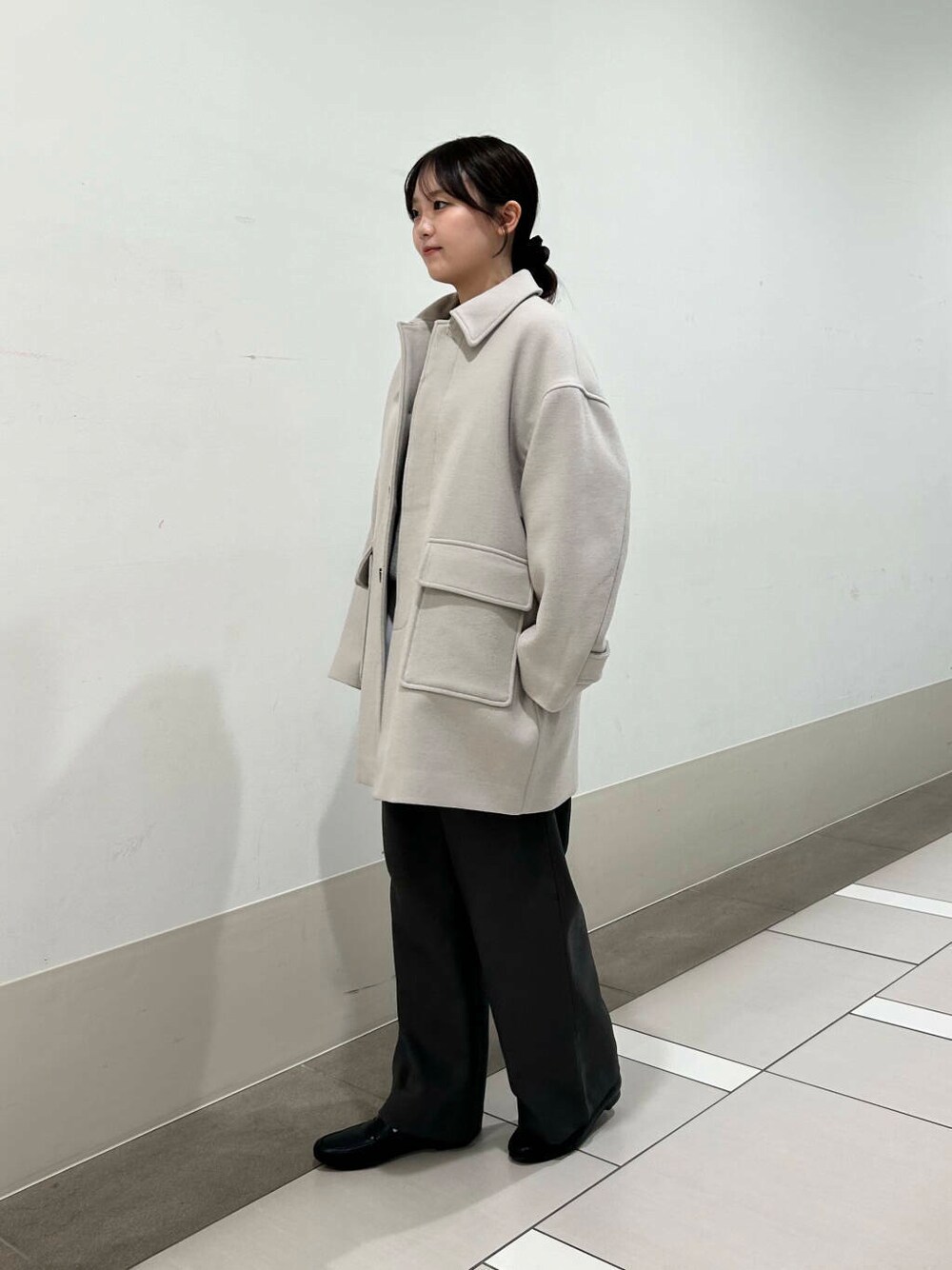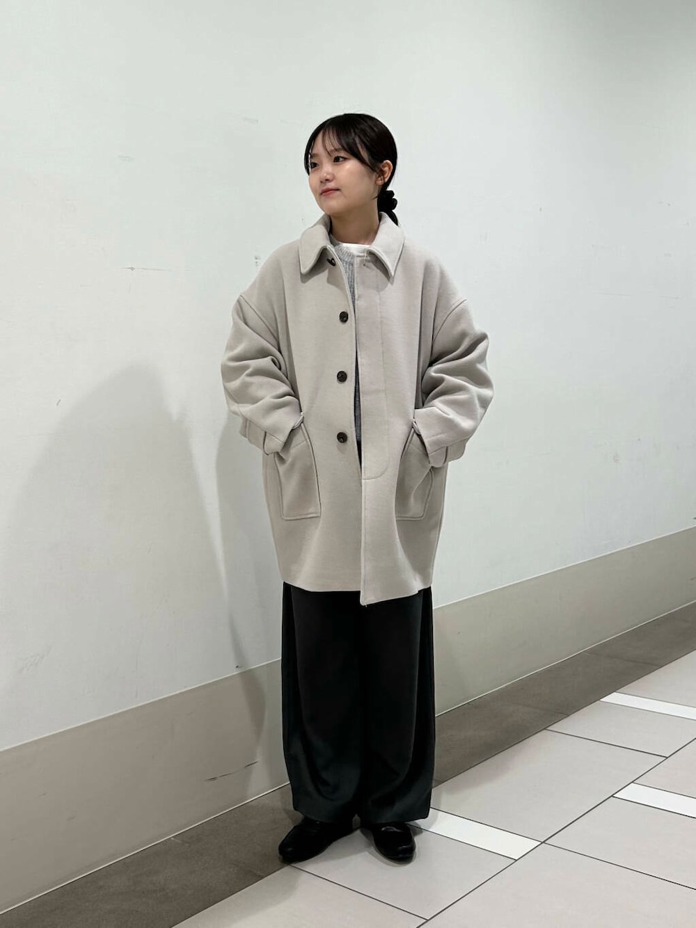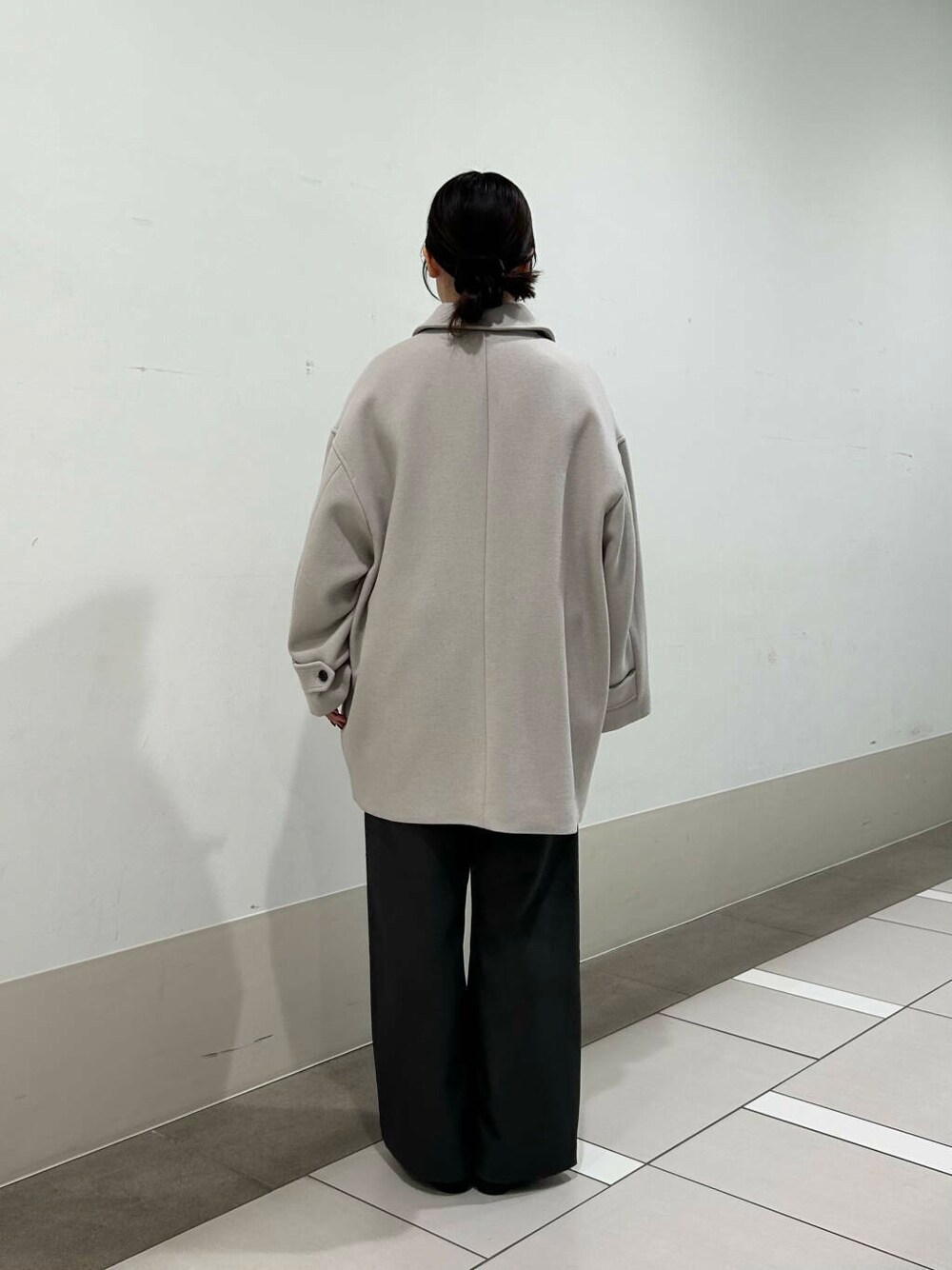 ゆったりシルエットですが、肉厚感はあまりなく、厚手のニットなどを合わせても着膨れしにくいコートです!