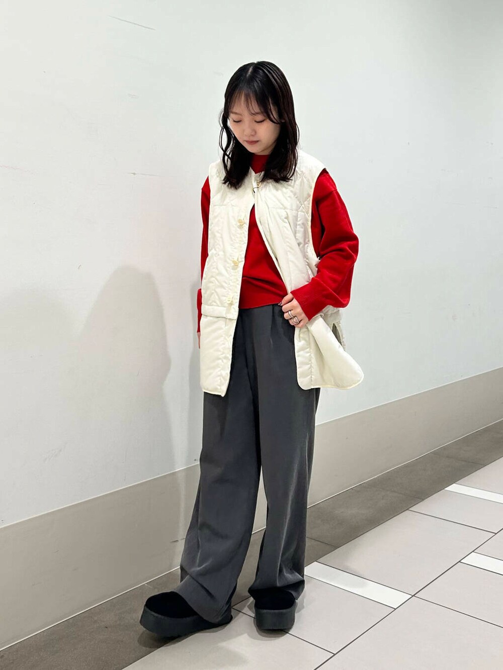脇のところは広めに空いているので、中に合わせるもの形は選ばずに着ていただけます✨