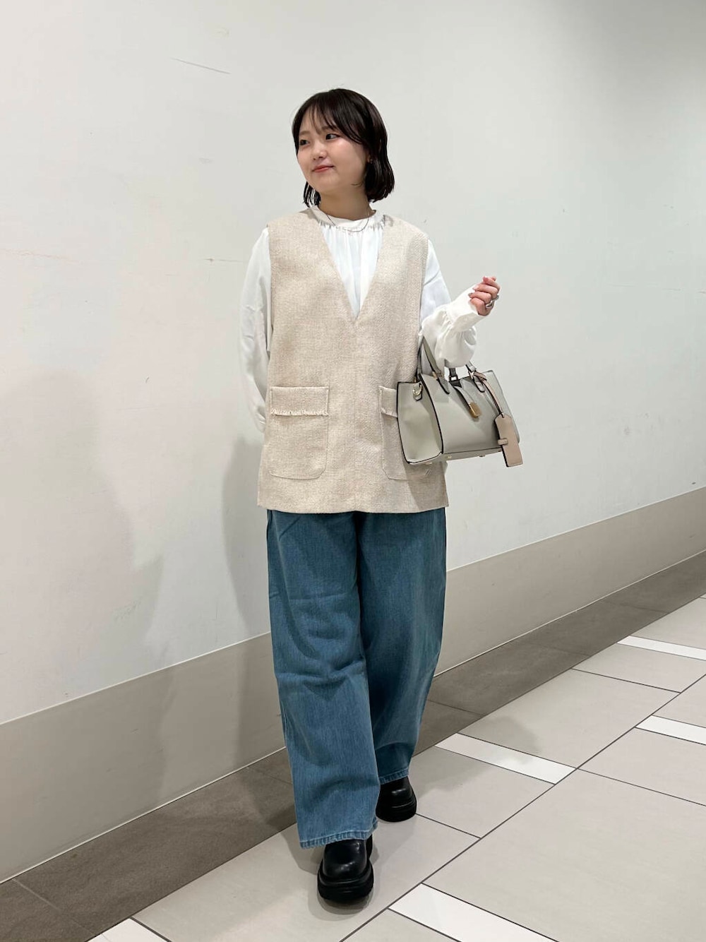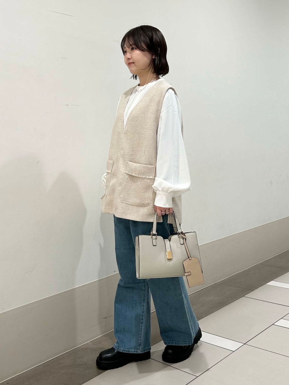 合わせるアイテムでガラッと印象が変わるので、オンオフどちらでも使っていただけるアイテムです!