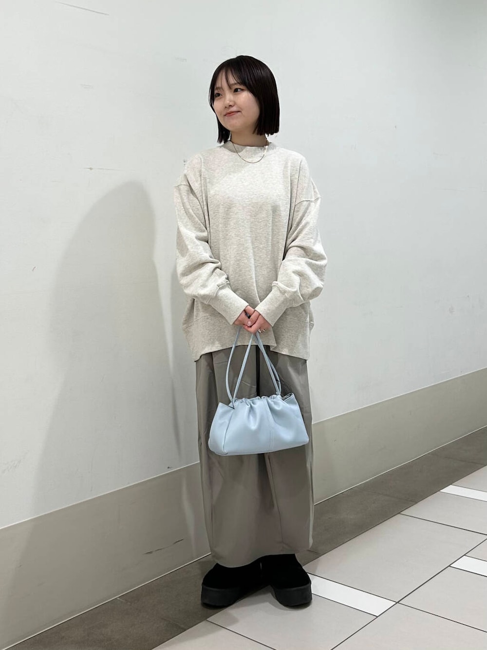 春らしいふわっとした空気感のあるコクーンスカートと合わせました。ナイロン生地でメリハリが出るアイテムです✨後ろのスリットで抜け感と女性らしさが🙆🏻‍♀️