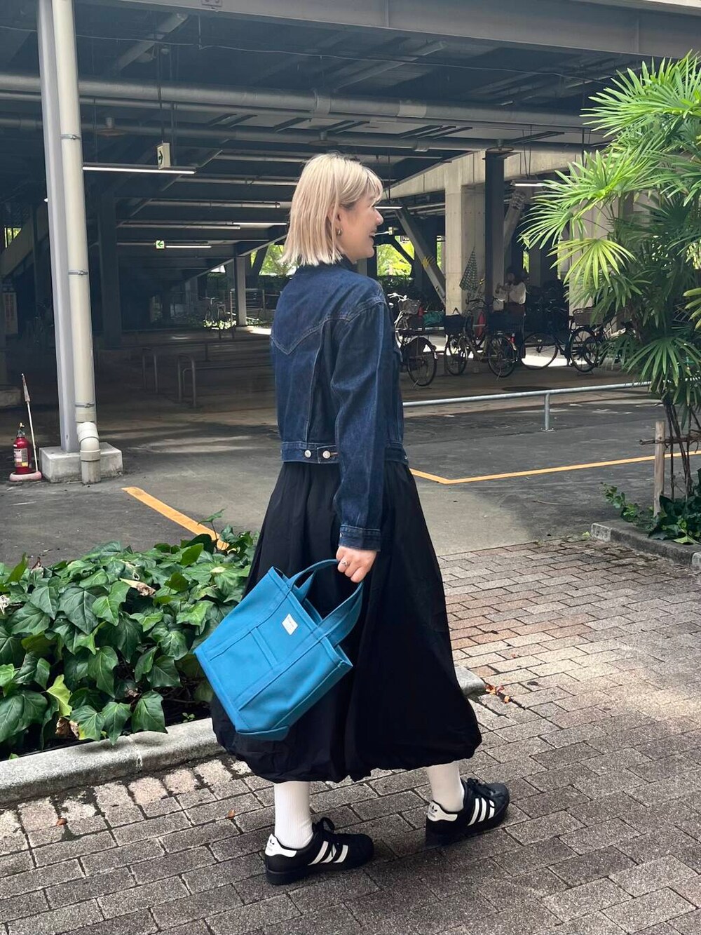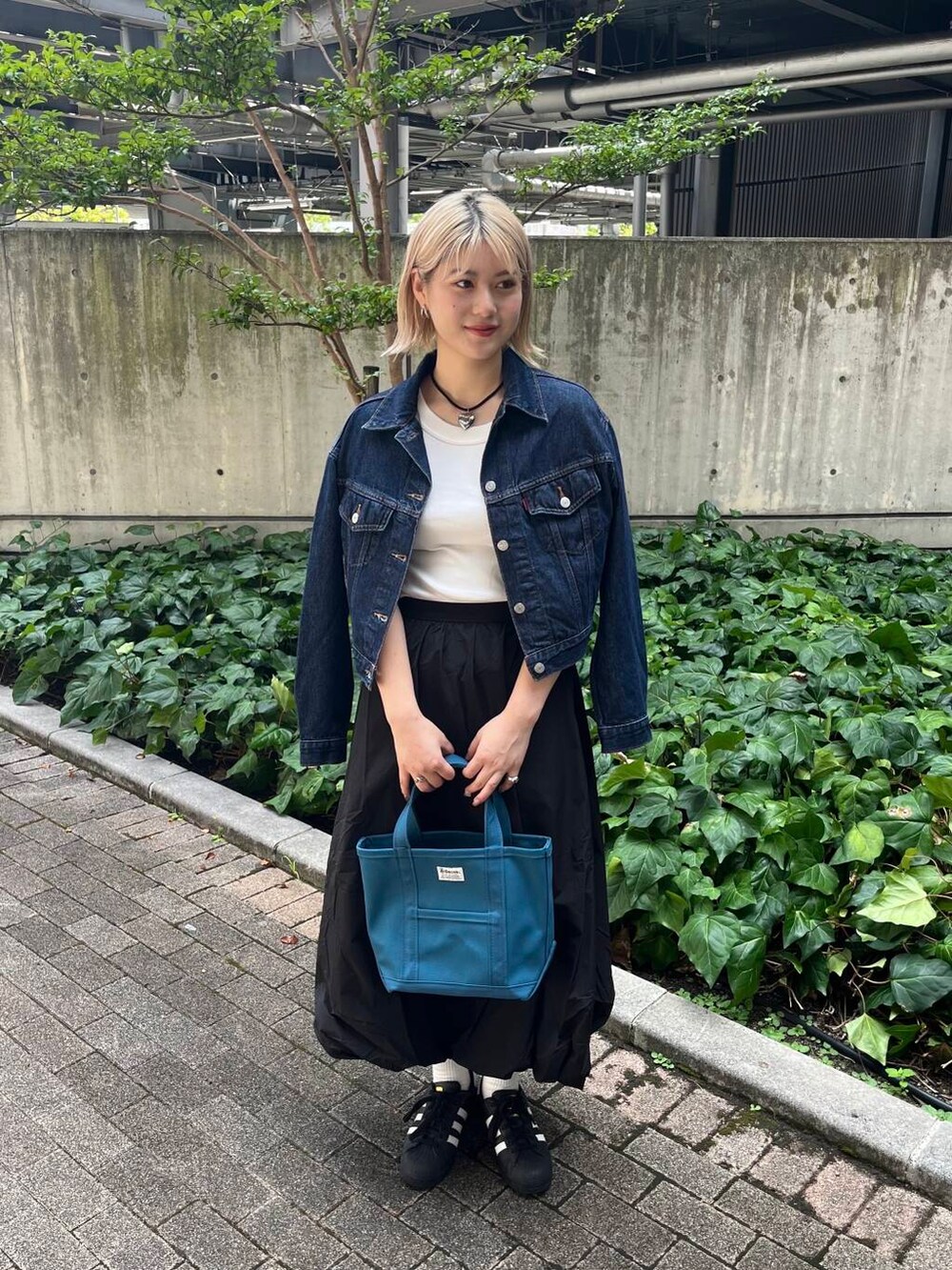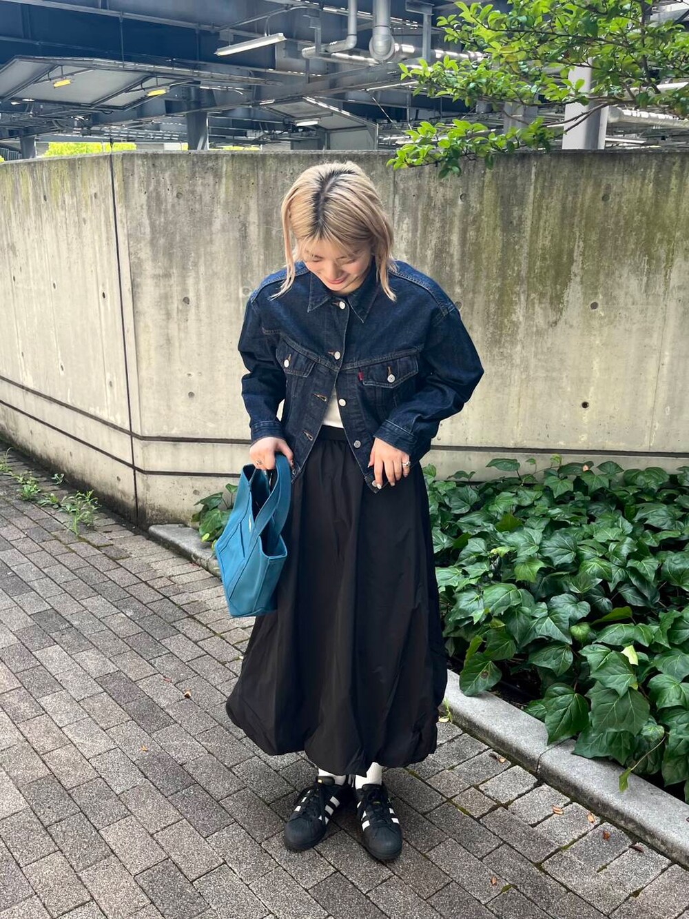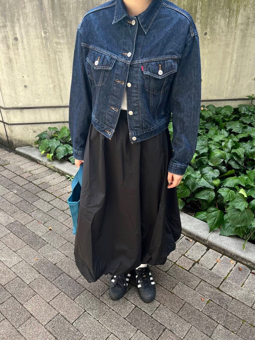 甘くなりすぎないようにデニムジャケットでバランスとりました!