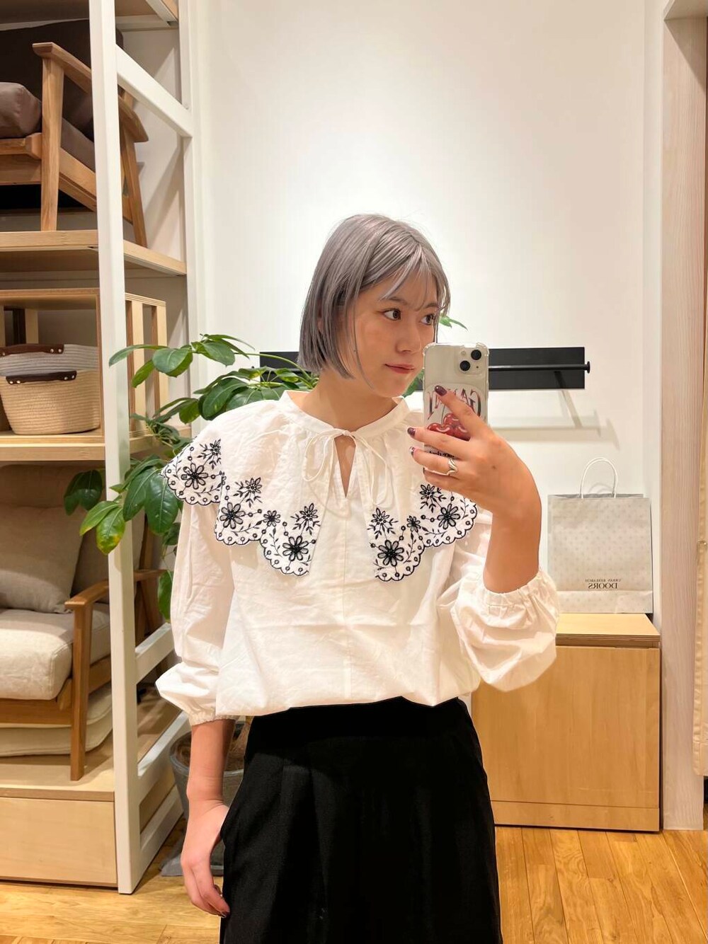 大きめの衿で可愛すぎる?って思いますが、刺繍のデザインやカラーが甘すぎないので、大人っぽく着ていただけます^_^♪