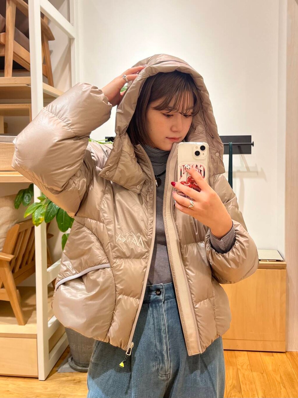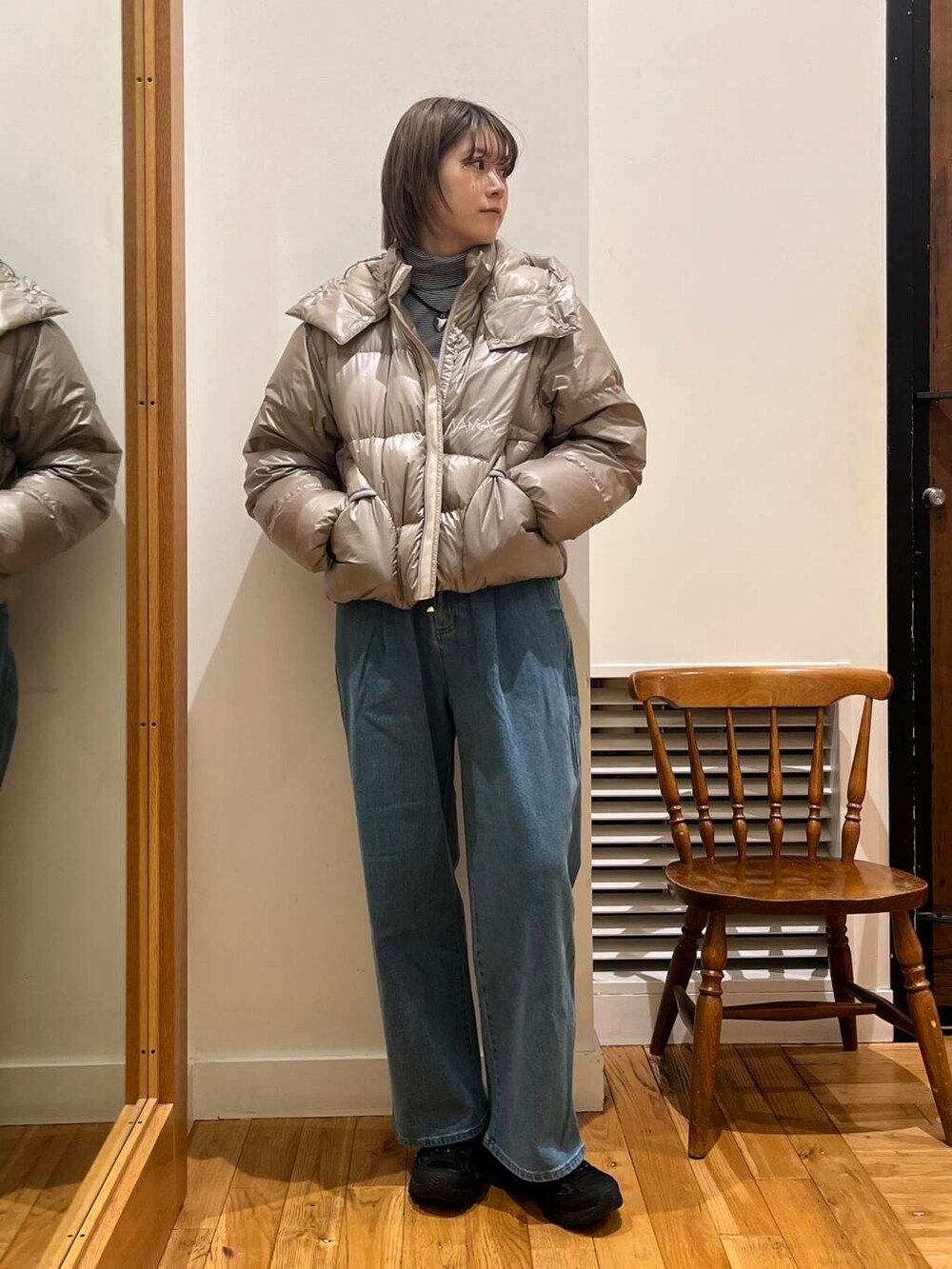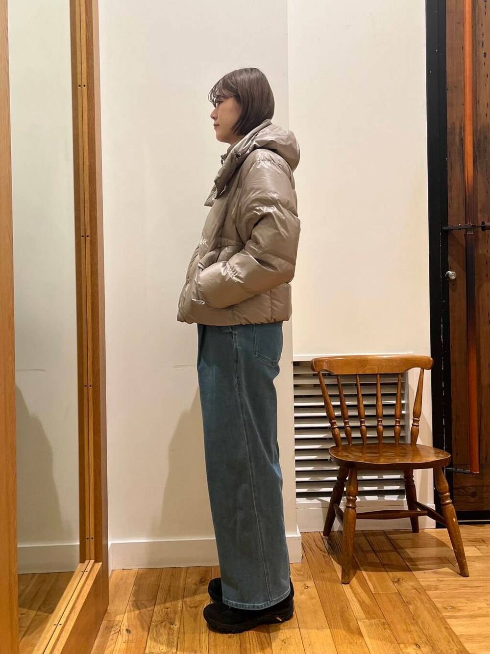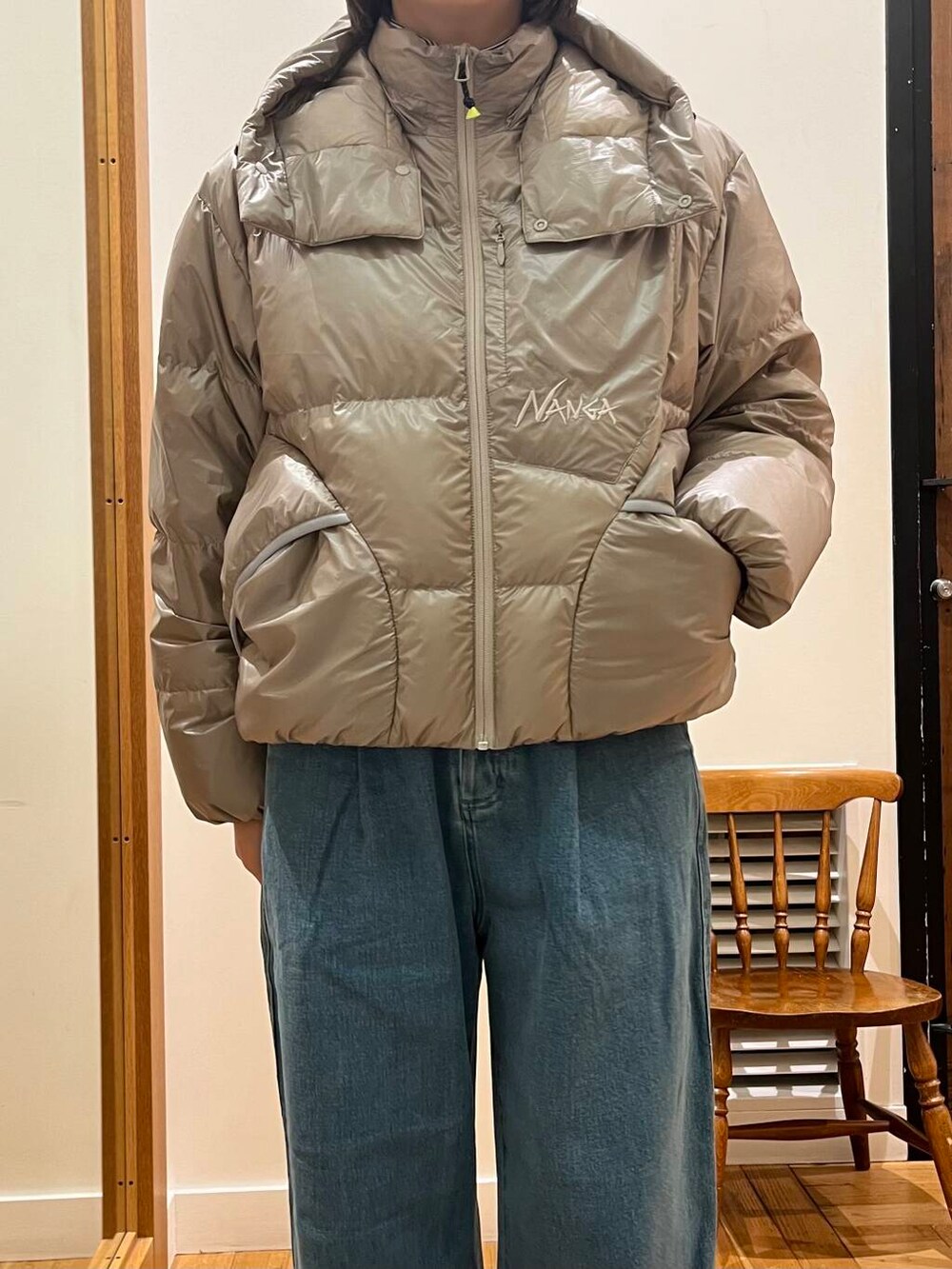 軽くて暖かいのが何よりも嬉しいポイントですし、ツヤ感ある生地感が他にはないオシャレなショートダウンです🤎