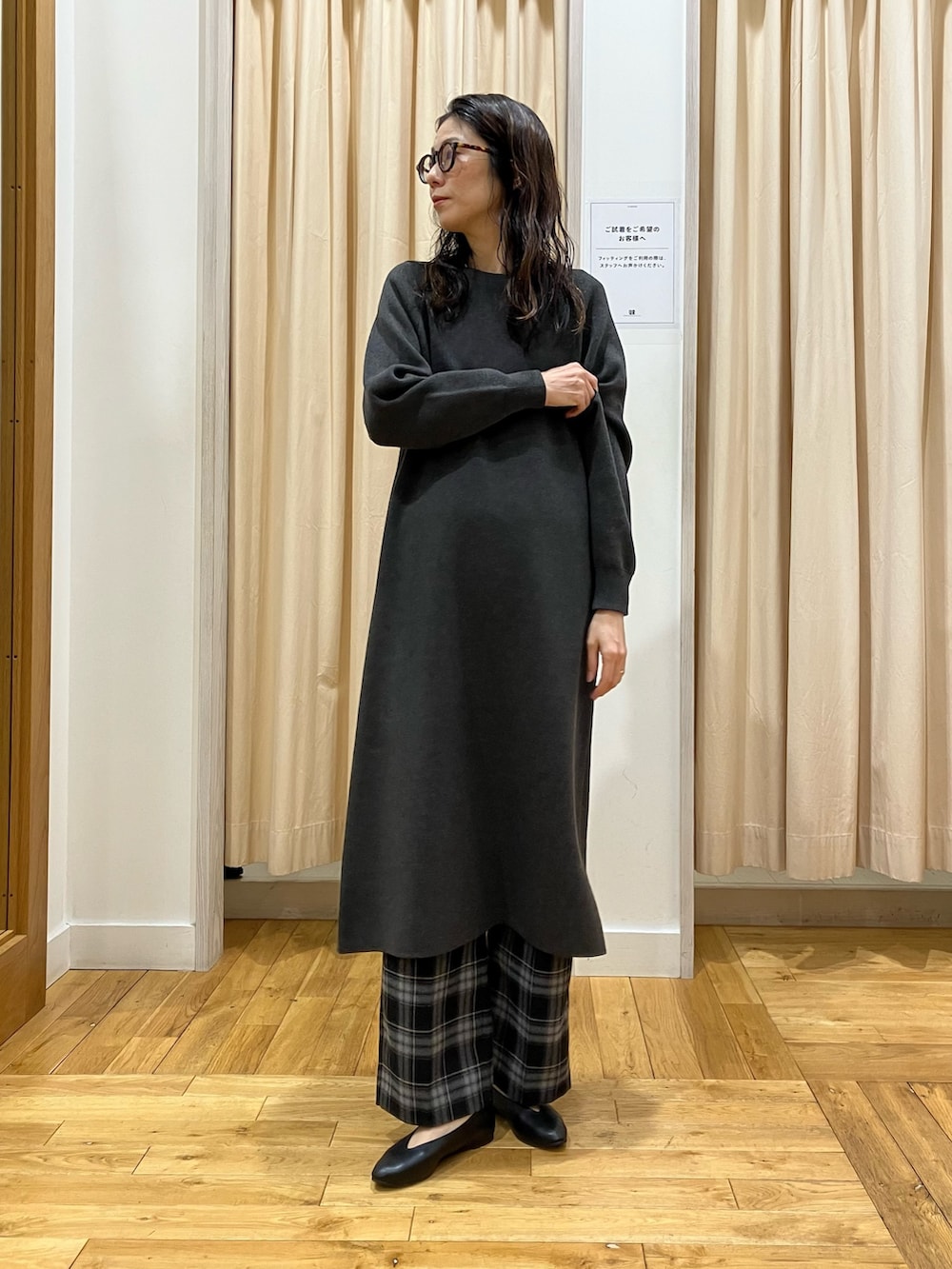 チェックパンツは総ゴムですっぽり楽に履けるイージーパンツ。太すぎないストレートシルエットで◎