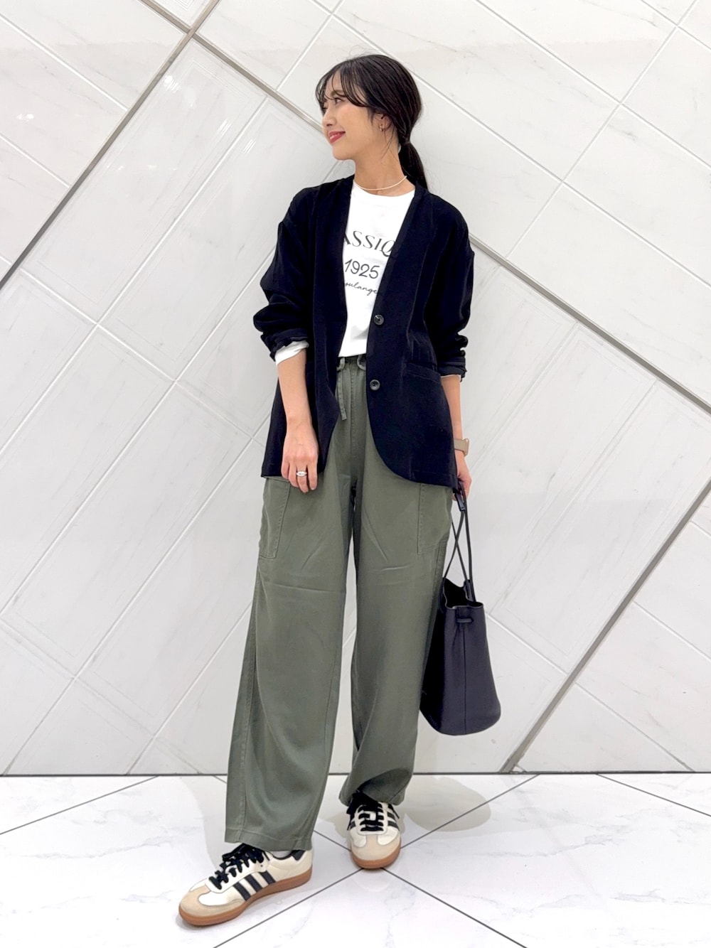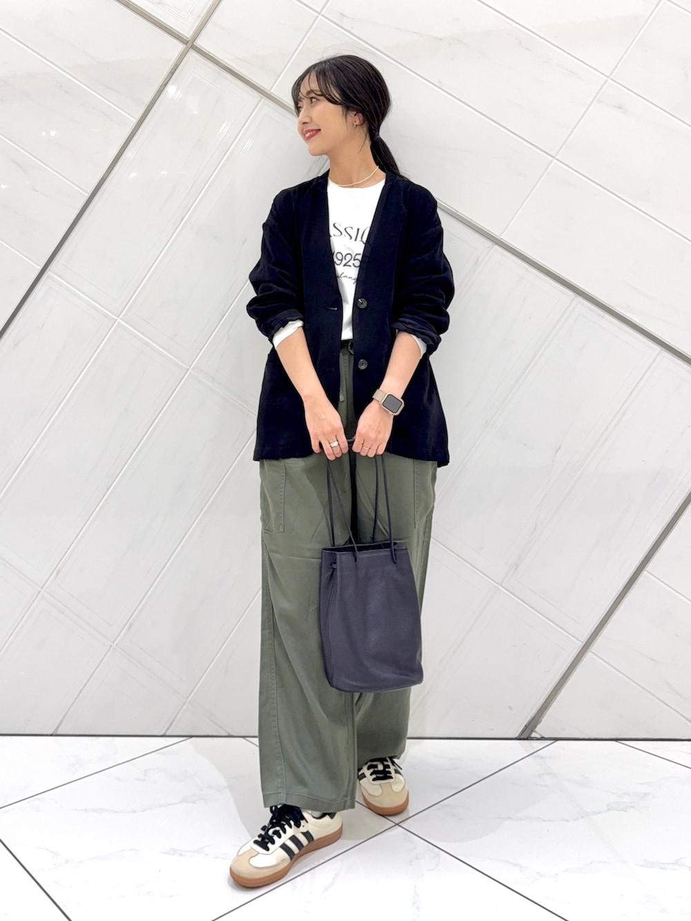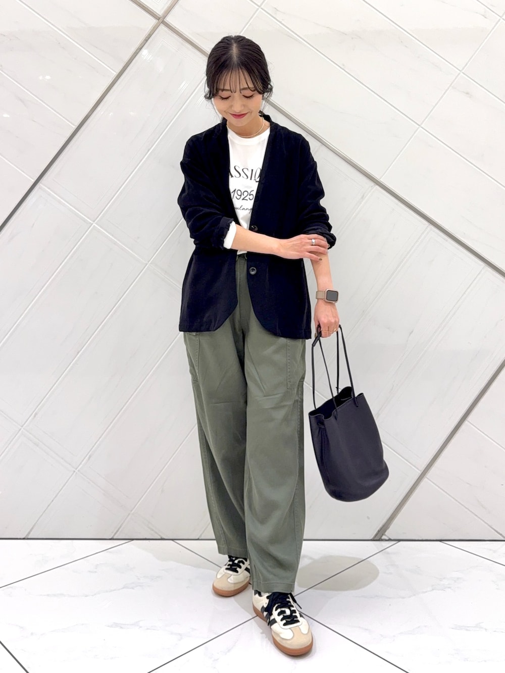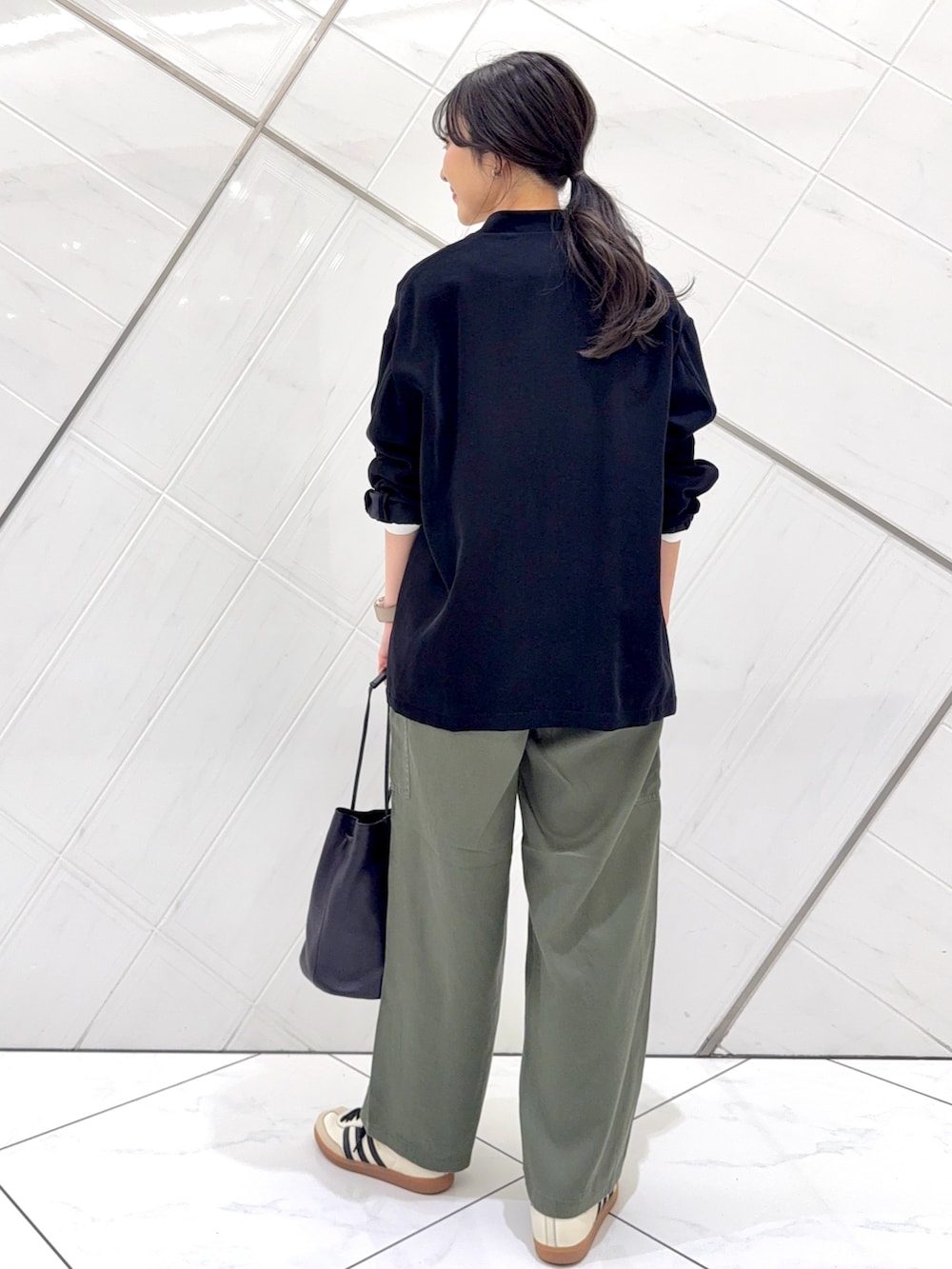 合わせるボトムや小物を変えるとキレイめからカジュアルまで幅広いスタイリングに活躍するのでおすすめです。