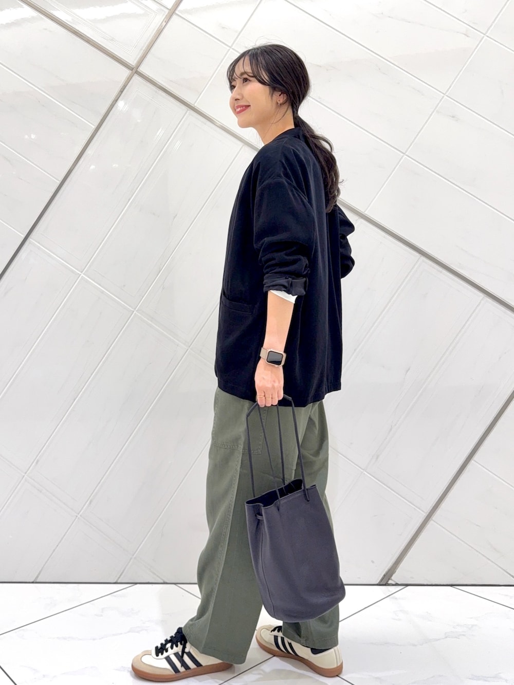 季節の変わり目に重宝するジャケットは薄手で落ち感のあるシルエットでカーディガン感覚で楽に羽織れます。