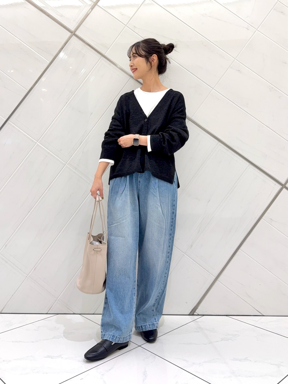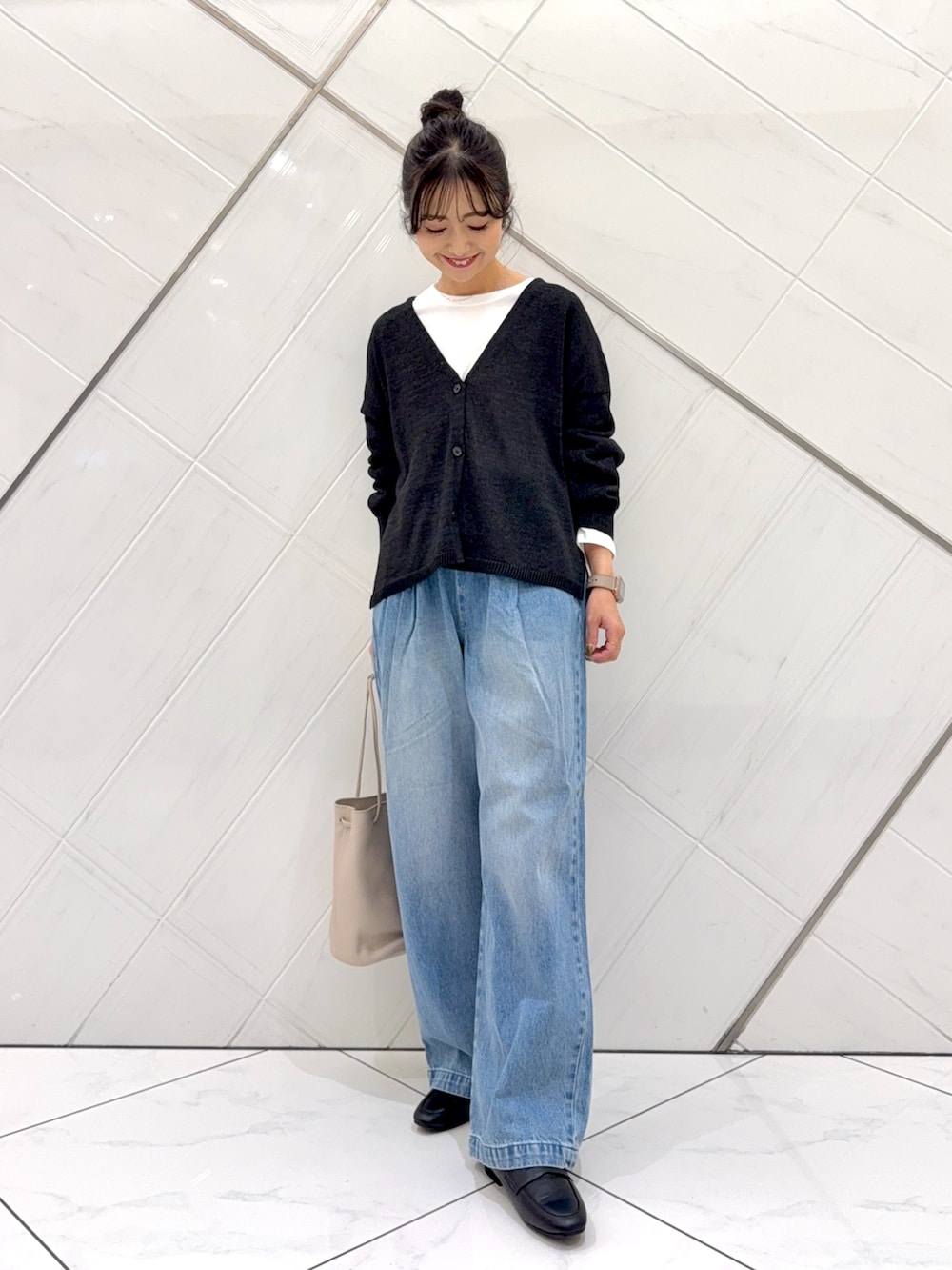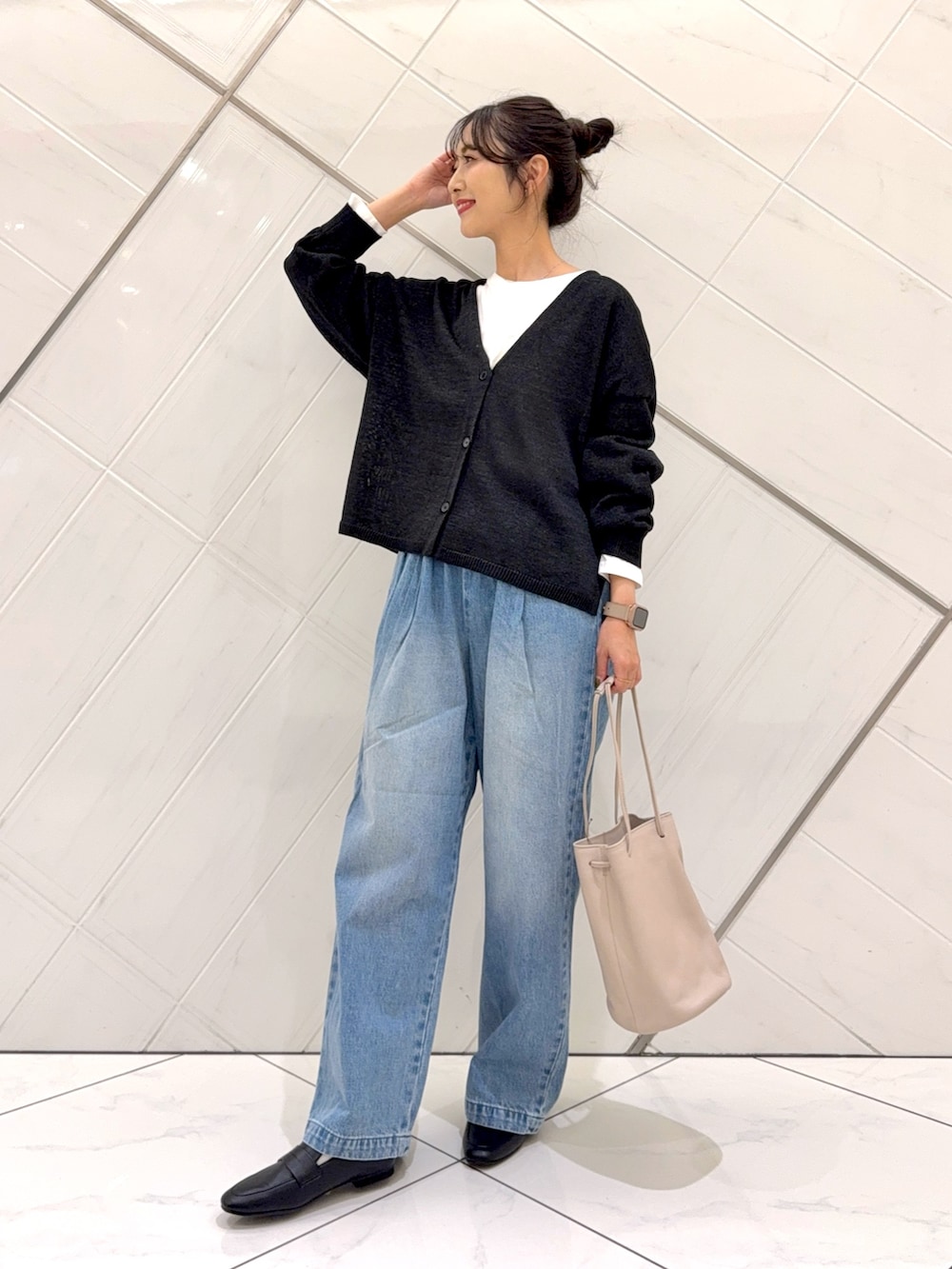 カーディガンはドライタッチな肌触りで着心地も良く季節の変わり目に重宝します。