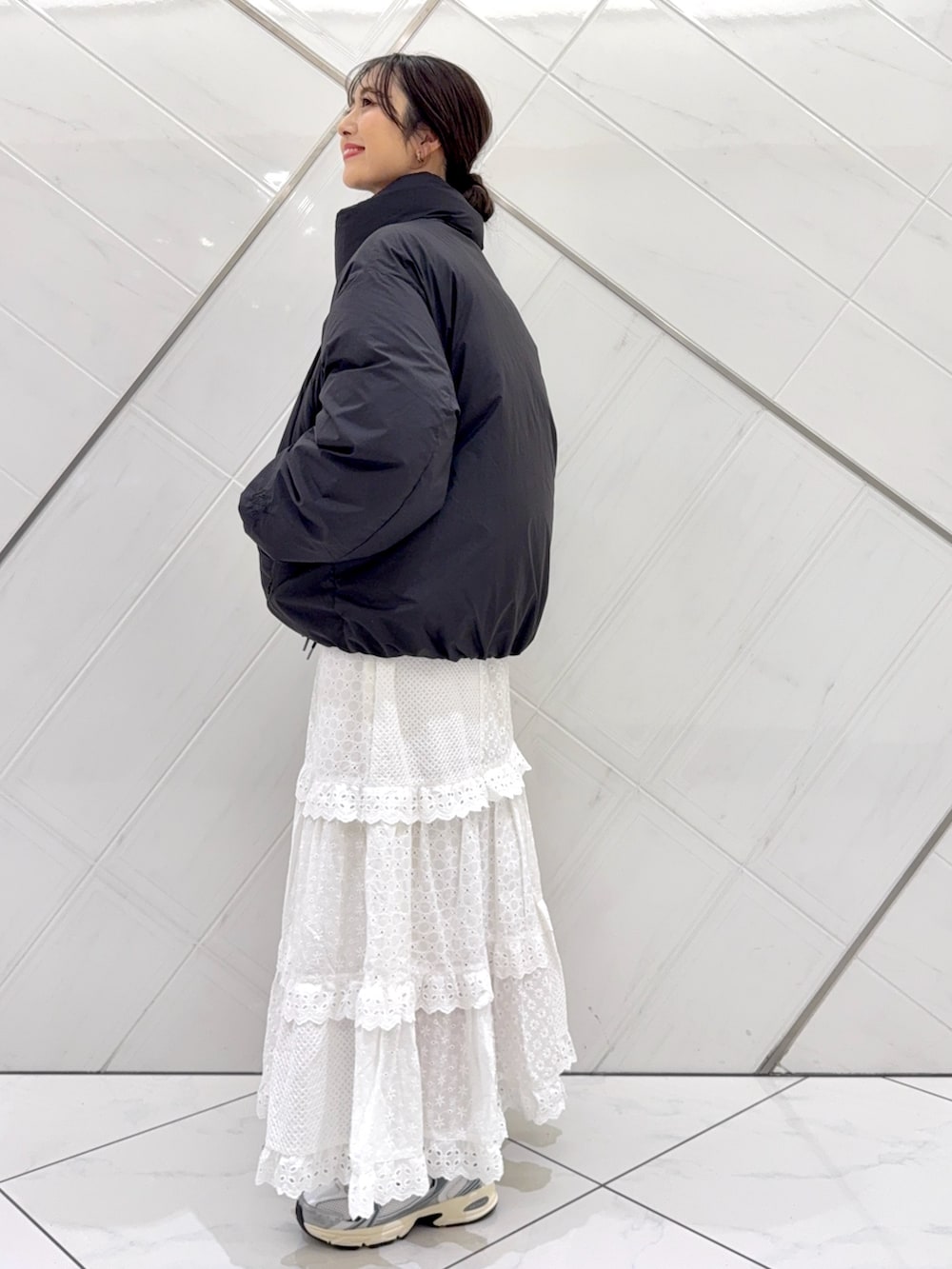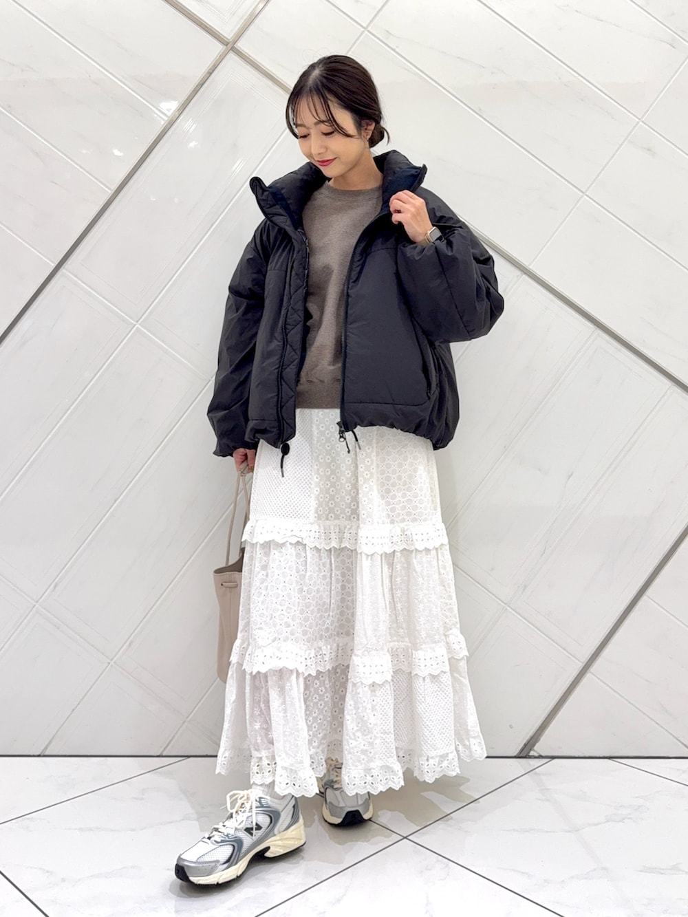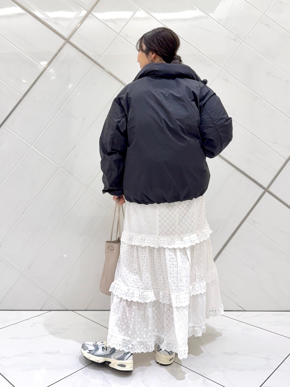 ヒップにかかるくらいのショート丈で前後差があり、小柄な方にも着ていただきやすいシルエットです。