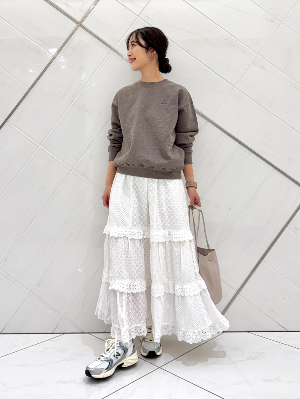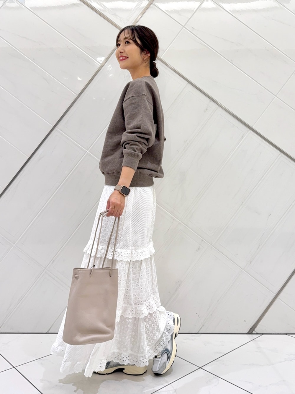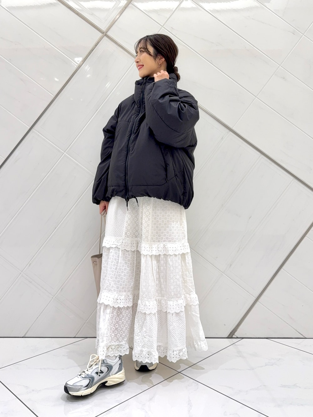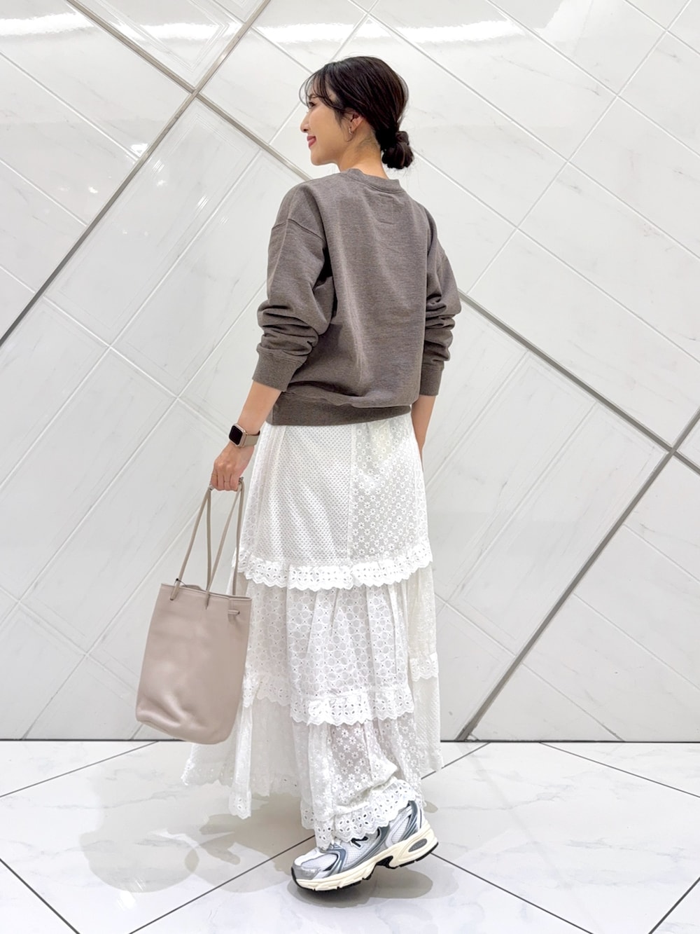 ヒップにかかるくらいのショート丈で前後差があり、小柄な方にも着ていただきやすいシルエットです。